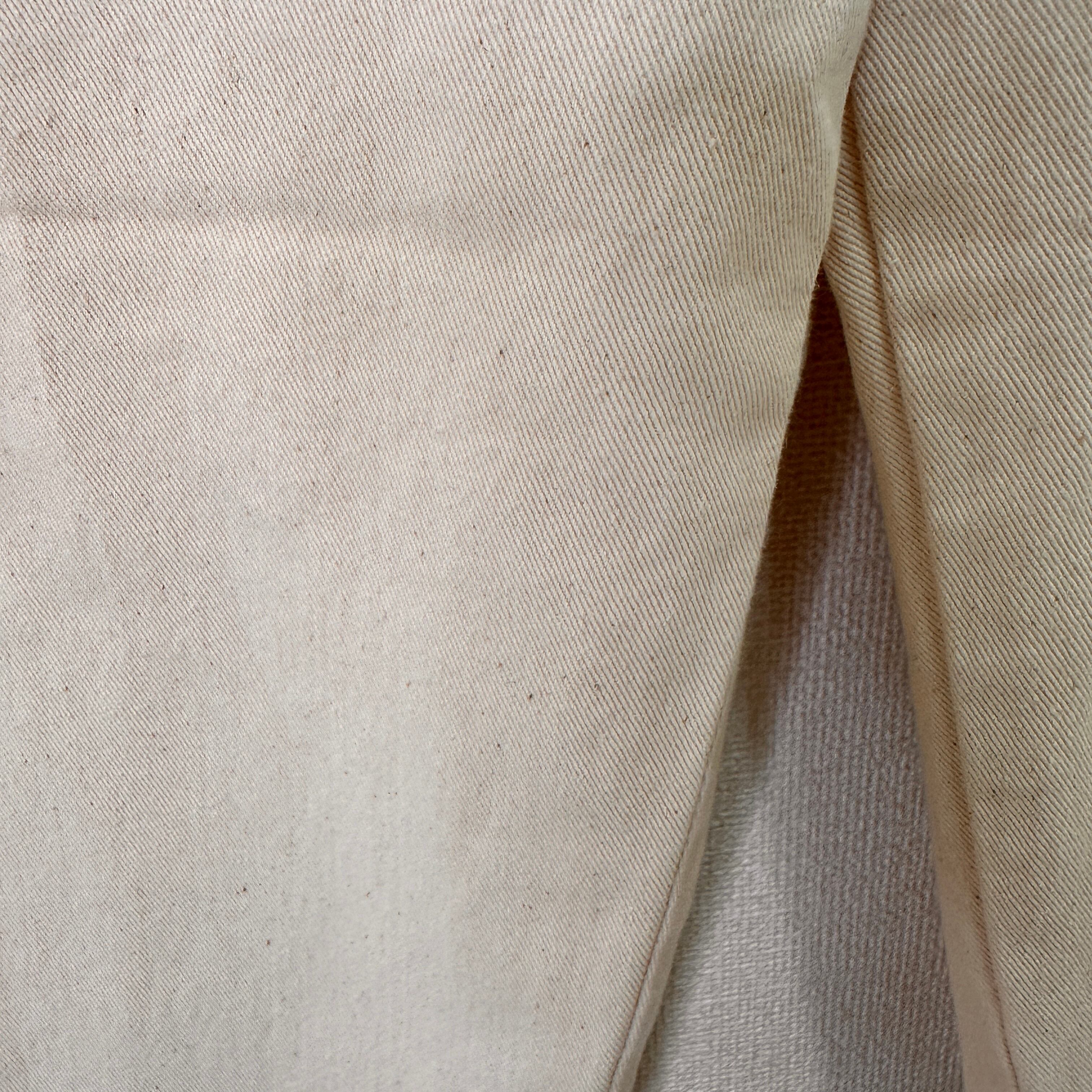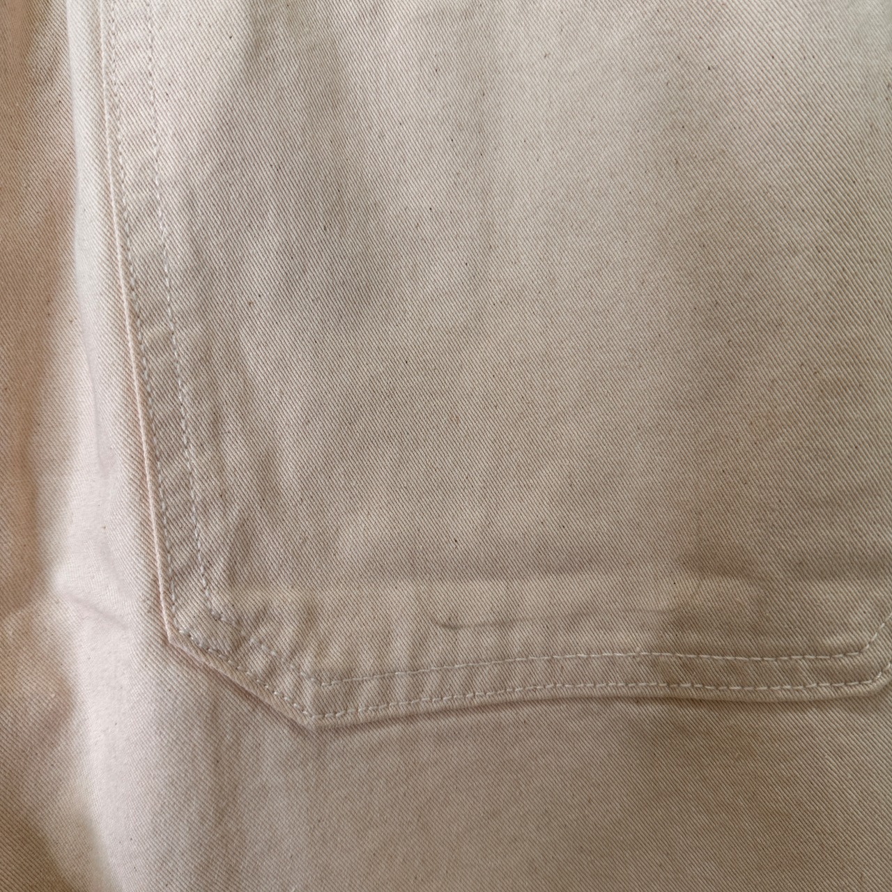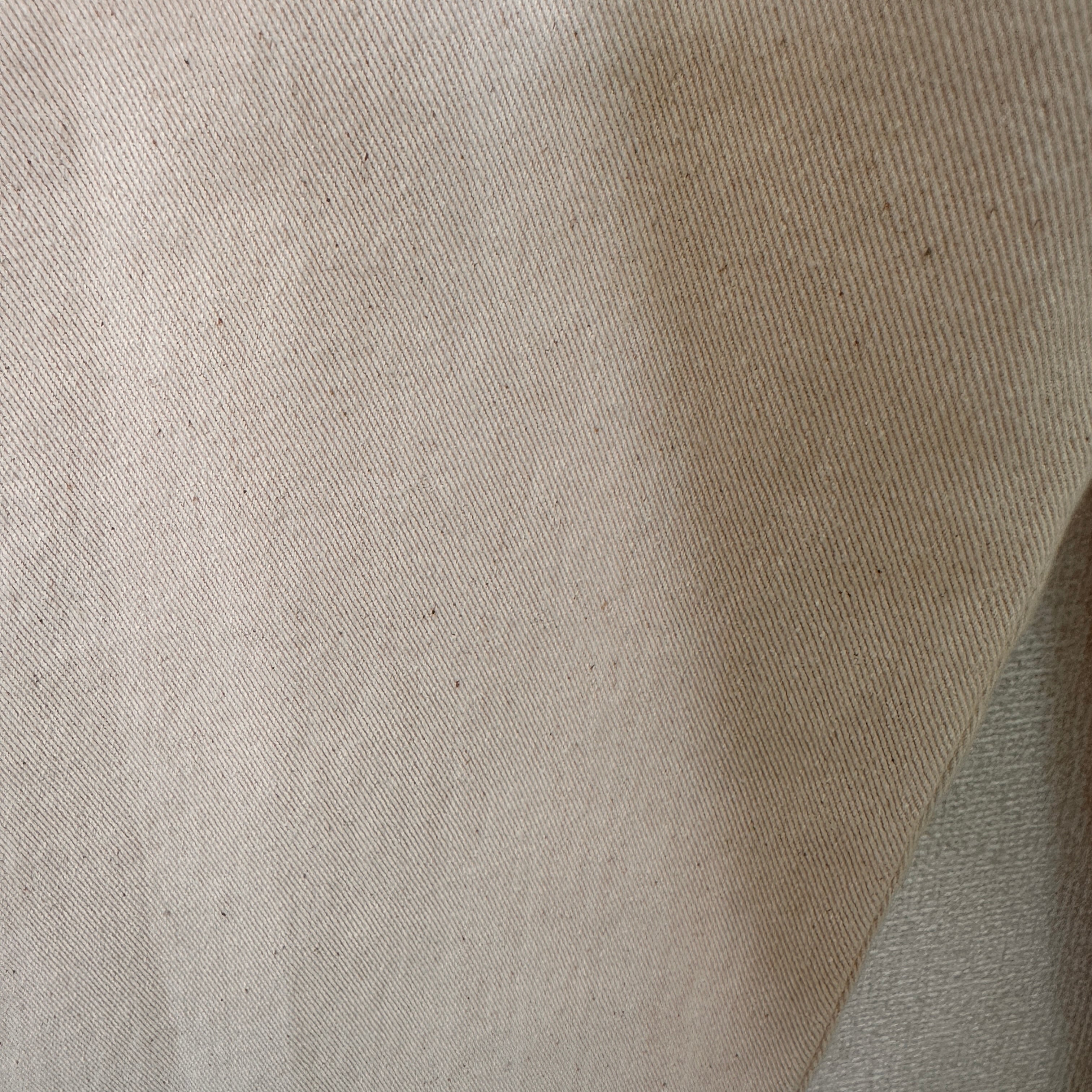 明るいベージュまたは生成り色で、どんなトップスにも合わせやすいです。