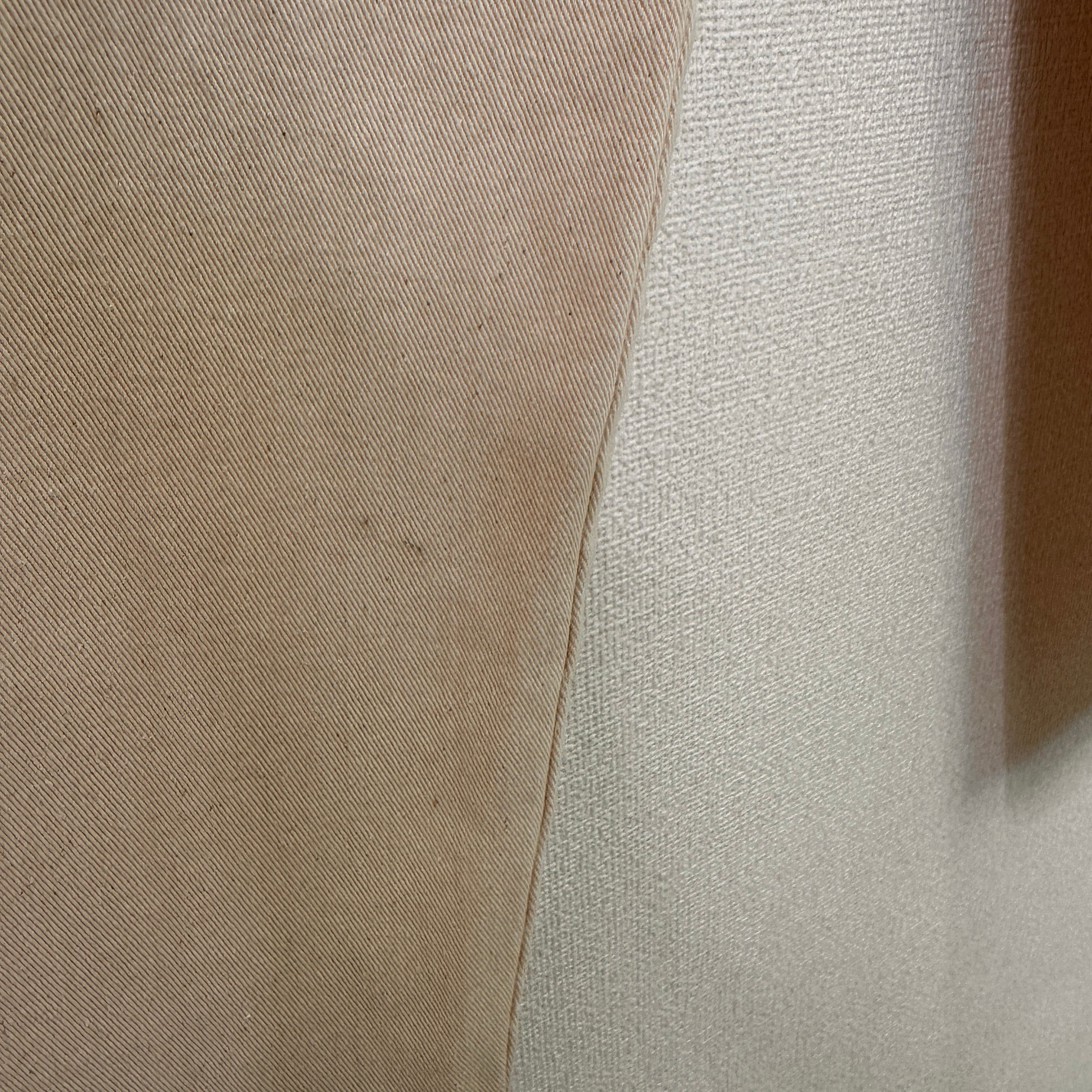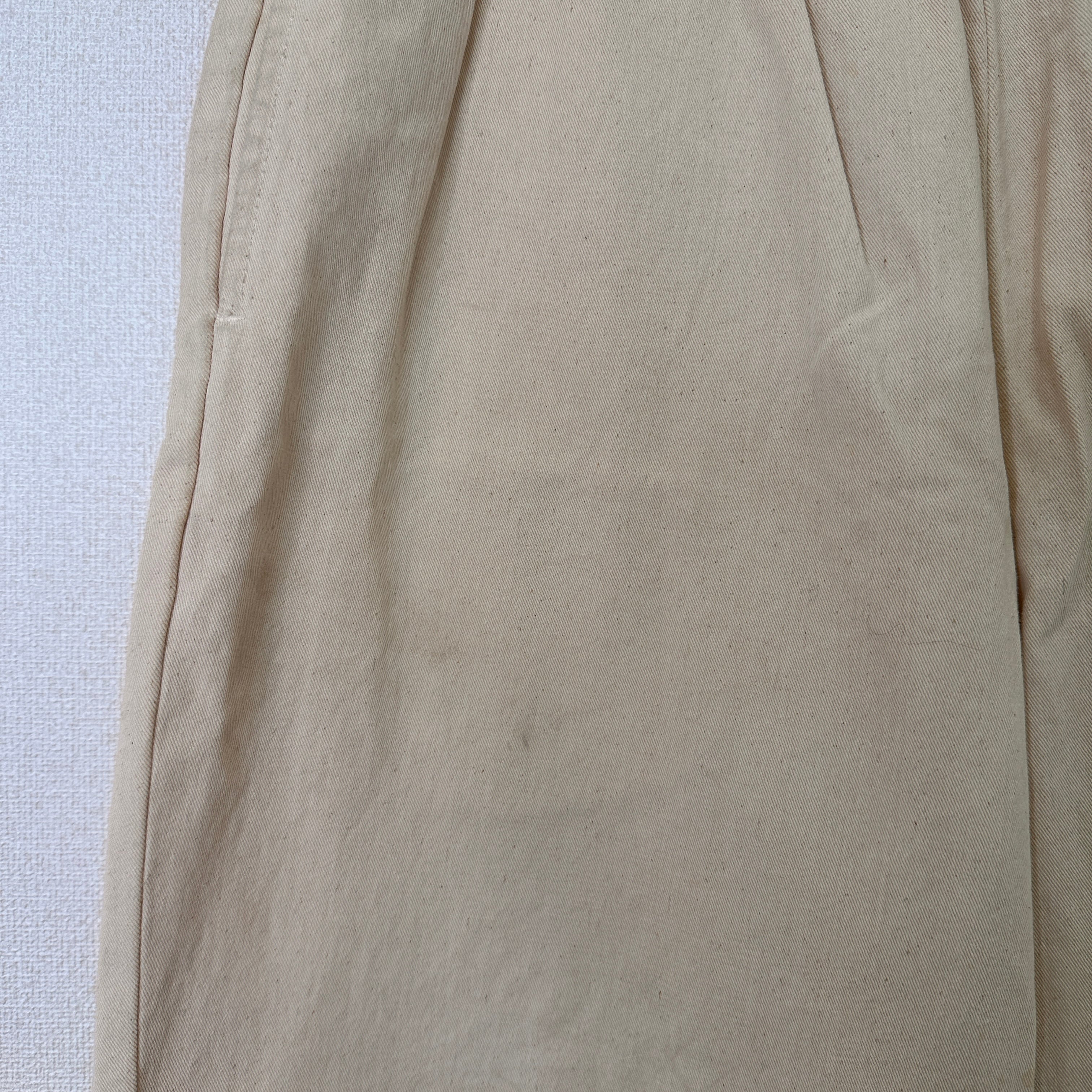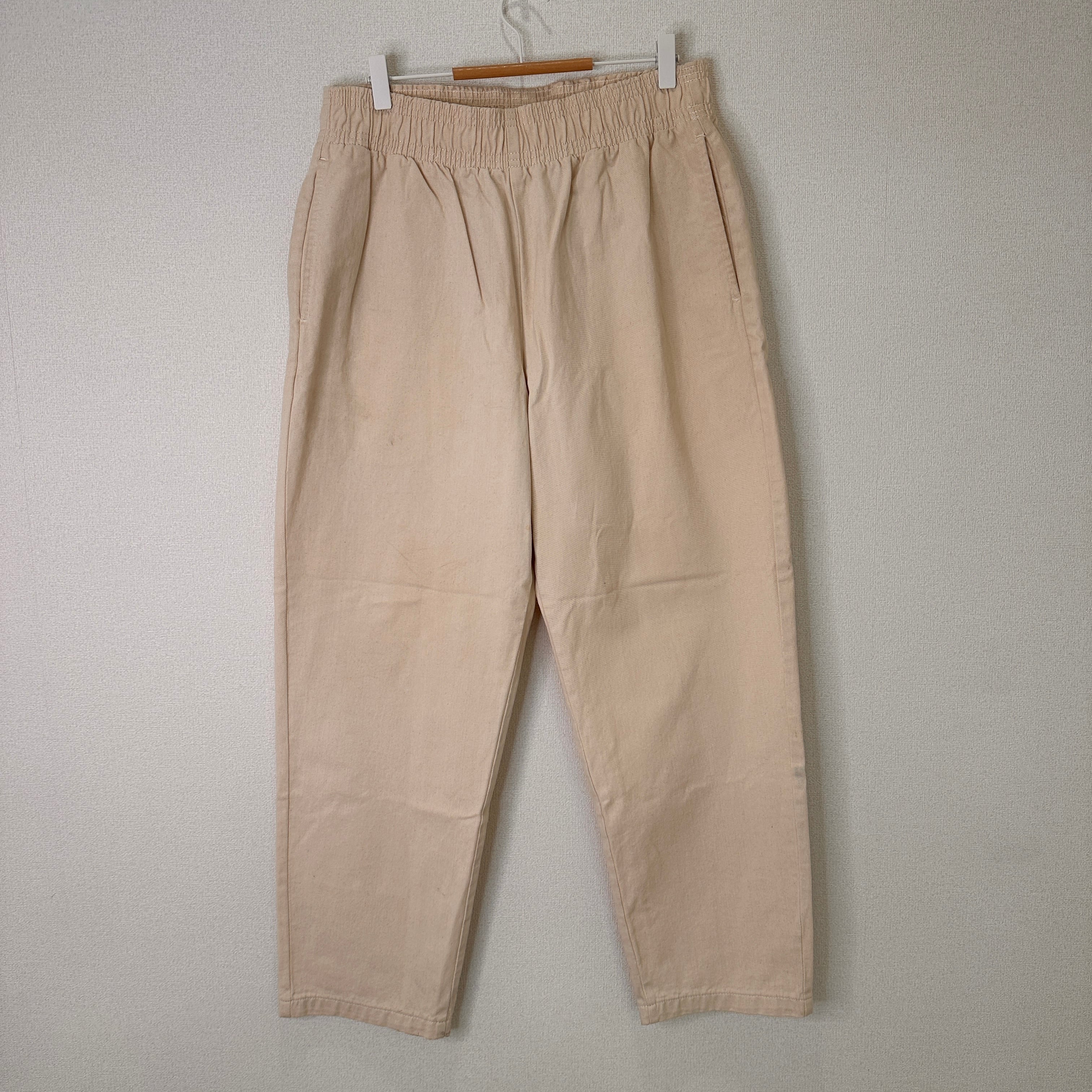 シミ/汚れがあることをご理解いただける方のみご購入をお願いいたします。ベージュのイージーパンツ、ゴムウエストとサイドポケット付き。