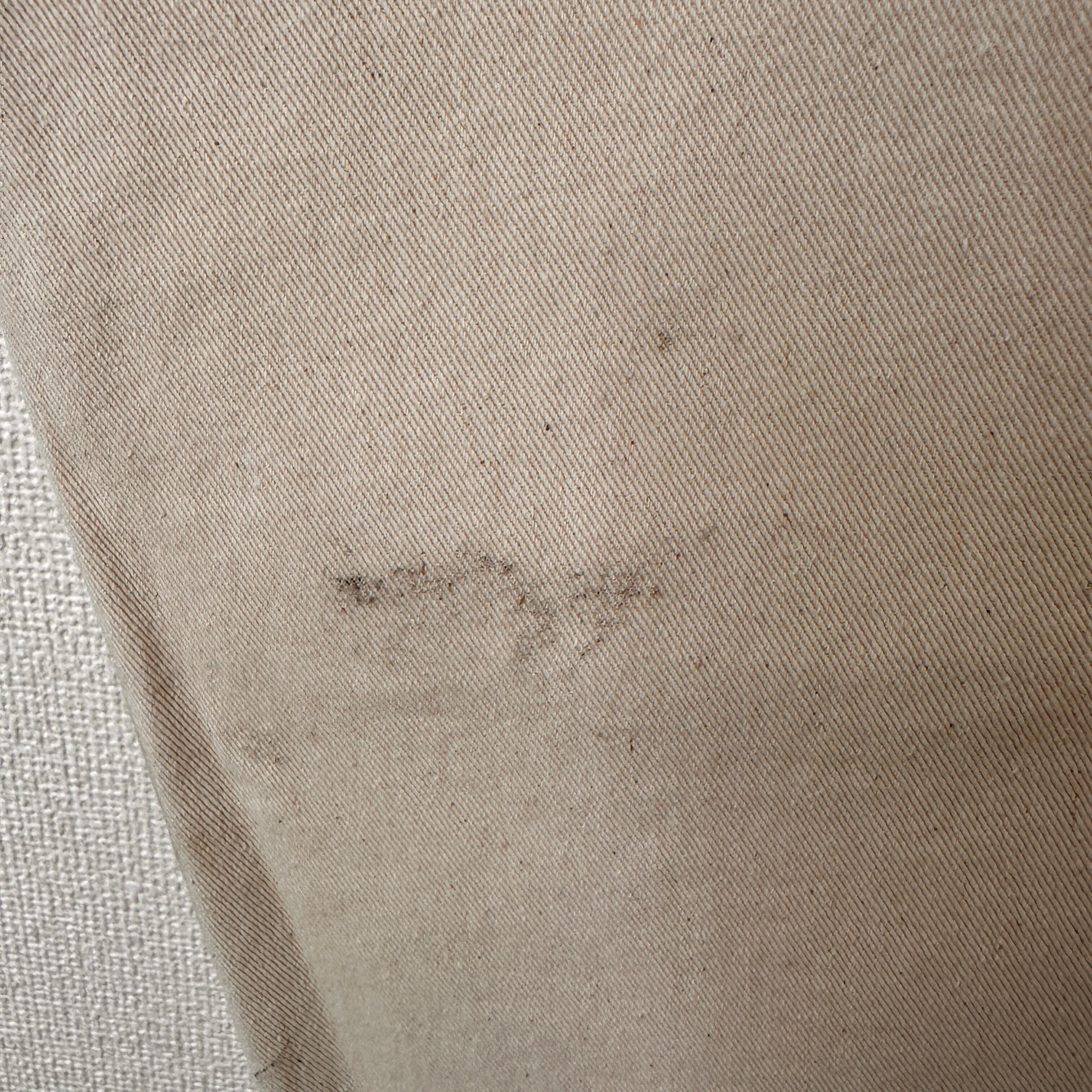 シミ/汚れ: あり (右裾シミ、裏側右にシミ、右ポケット裏地にシミ)