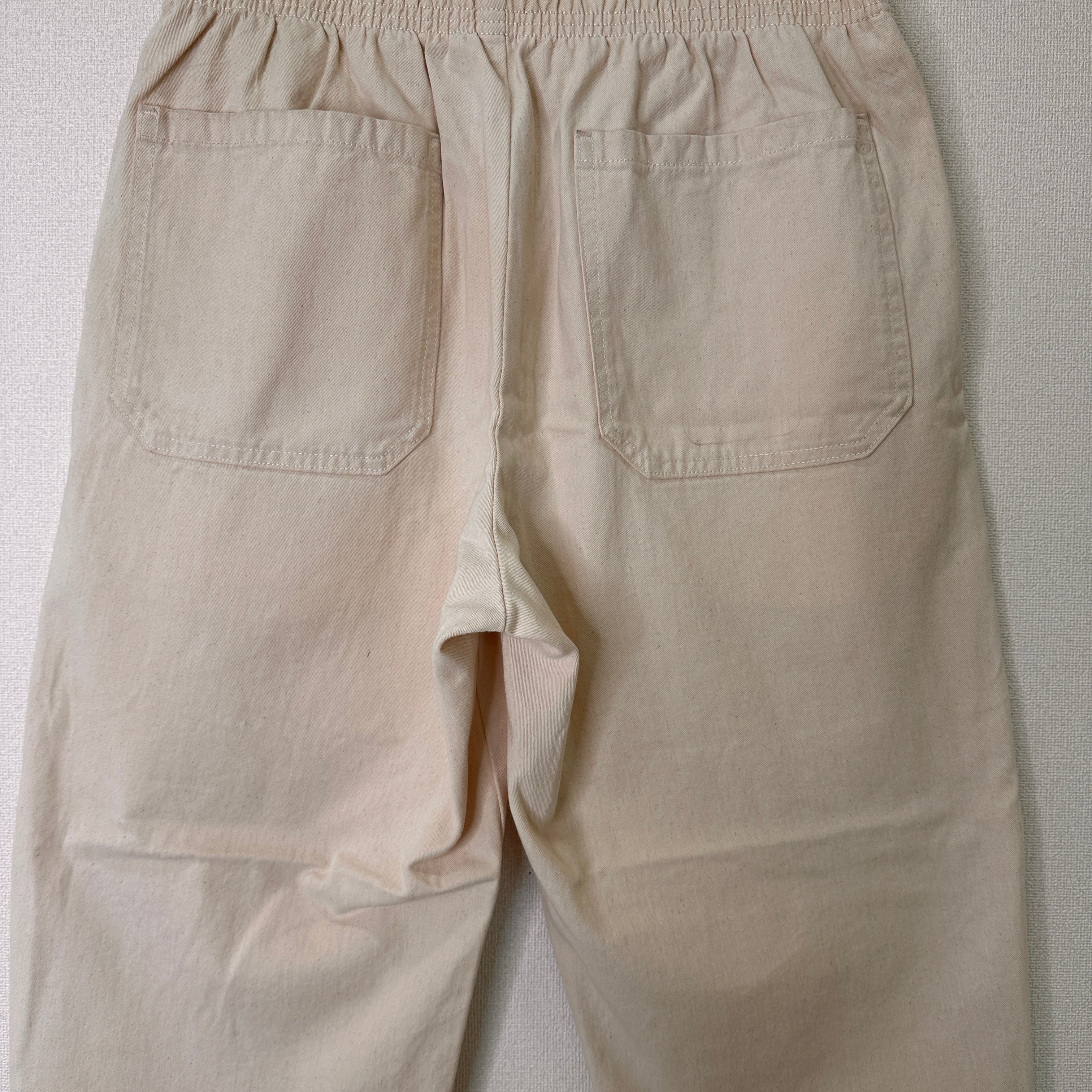 コットン100%でしっかりとした生地感で、ウエストはゴム仕様のためリラックスして着用いただけます。