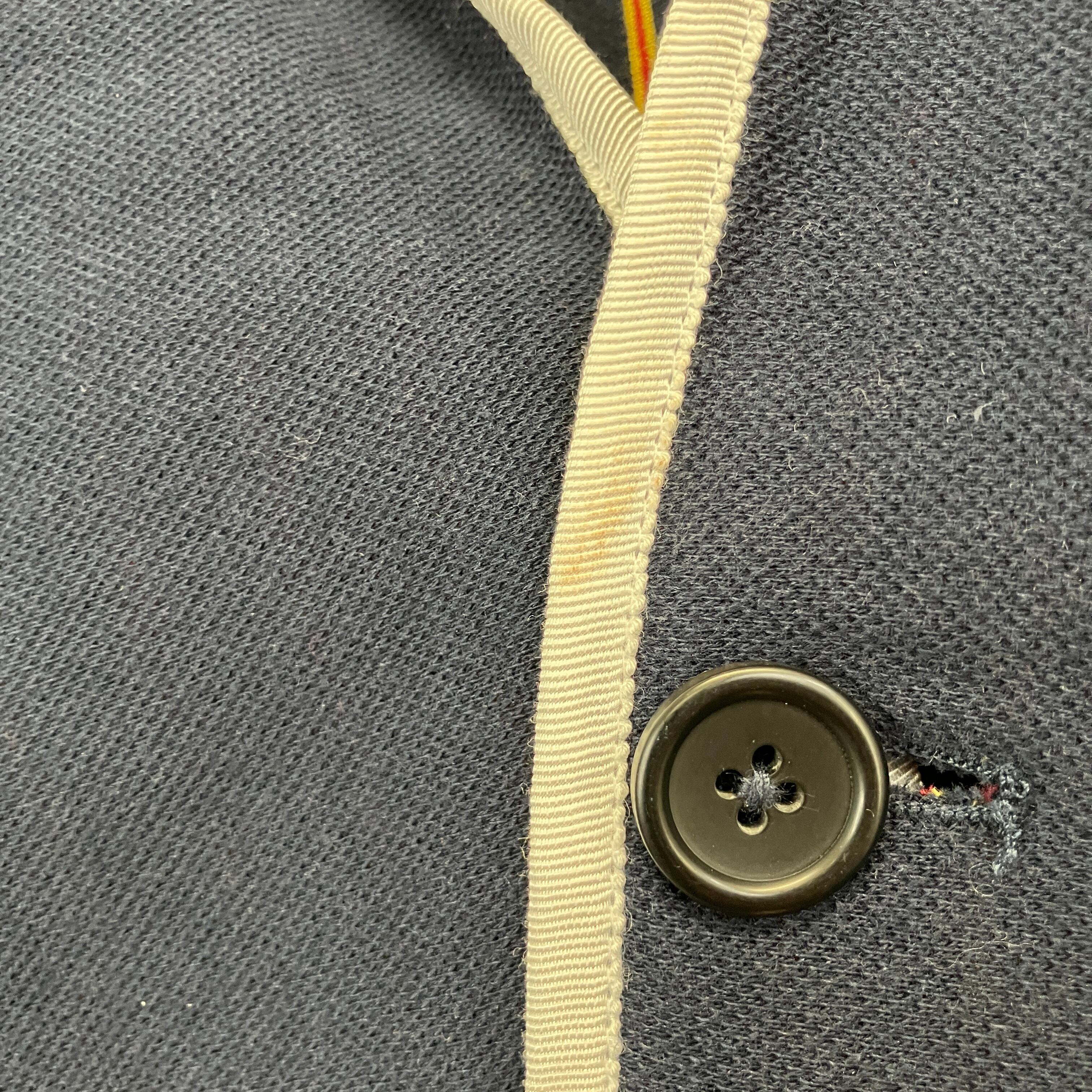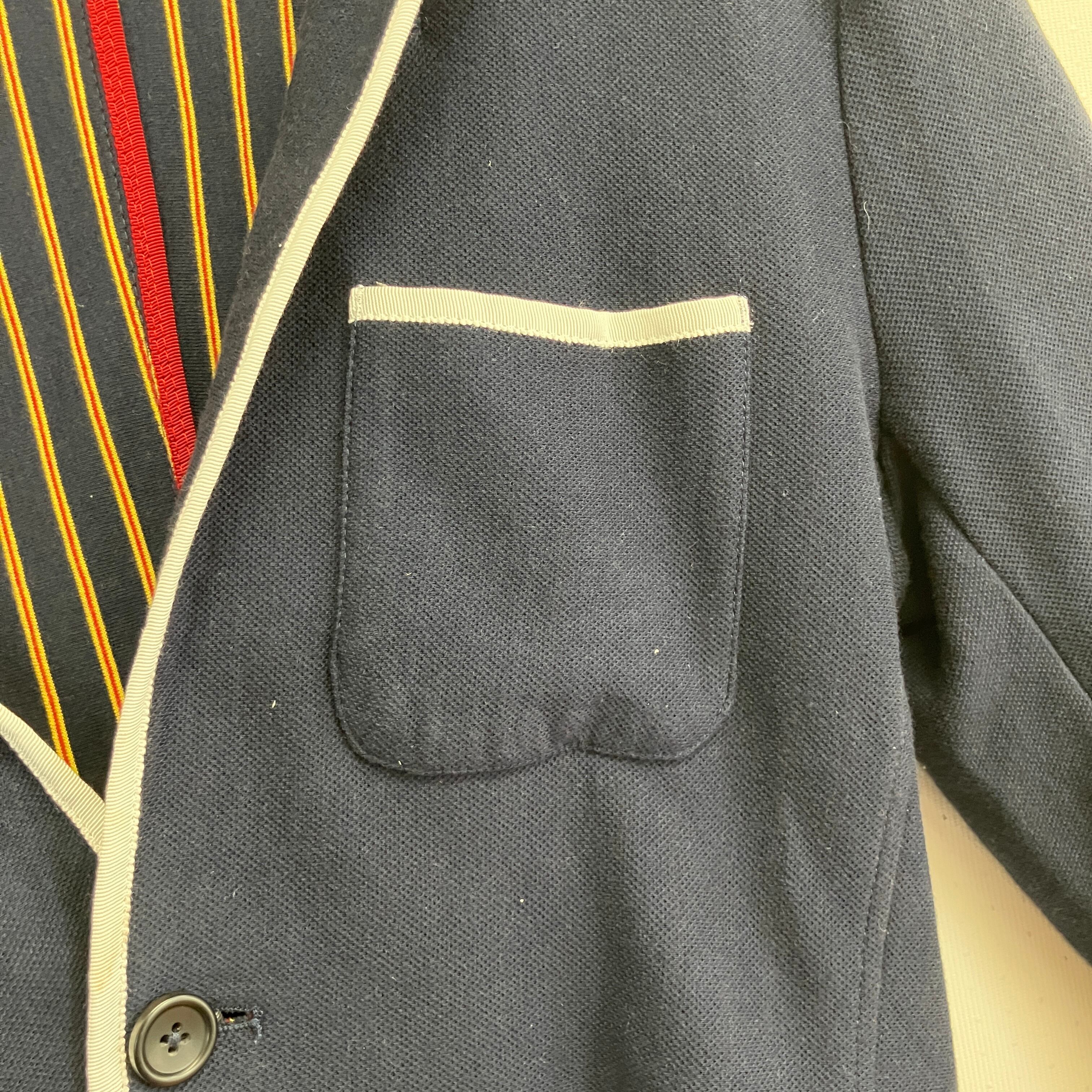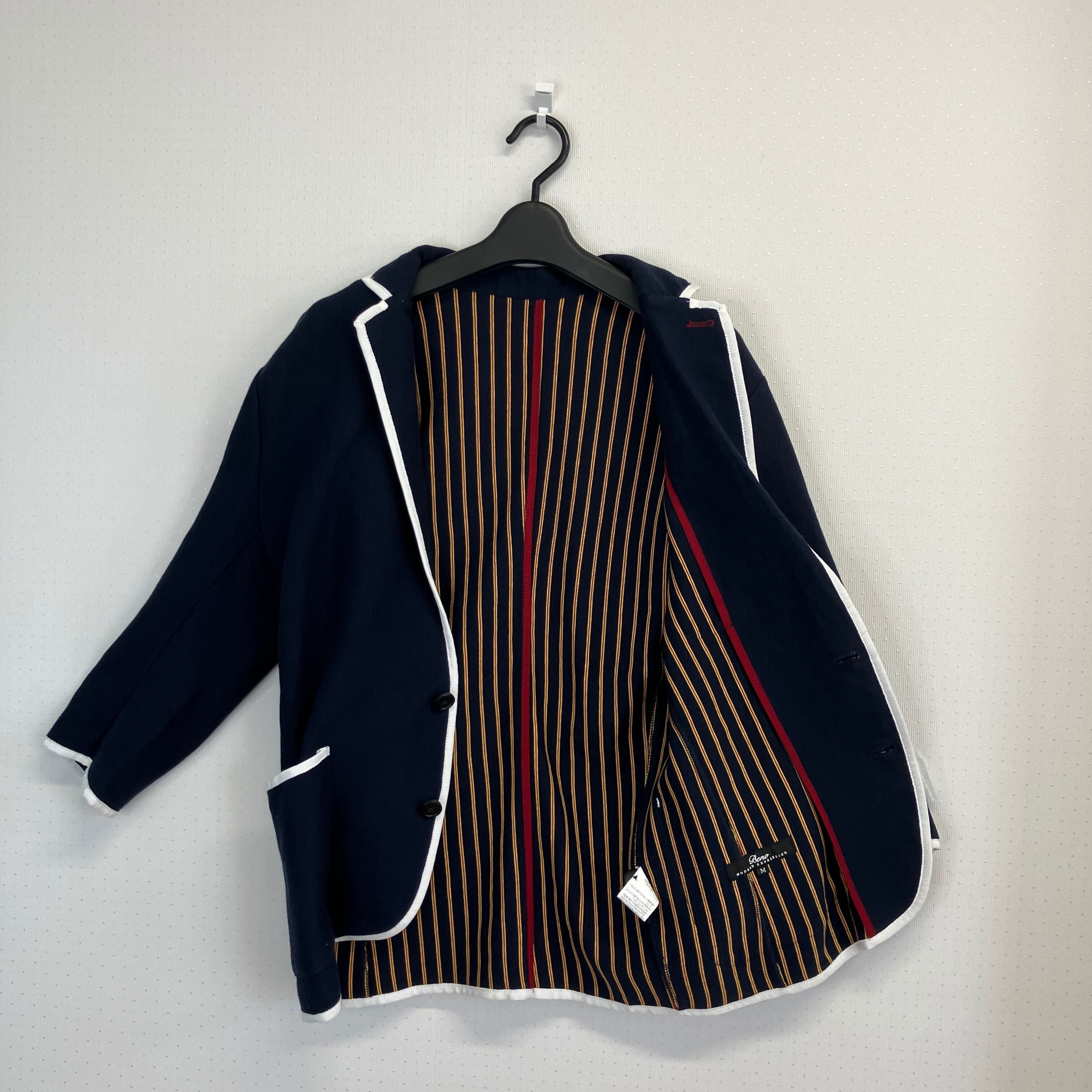 ※状態は写真にてご判断ください。ネイビーのジャケット、ストライプの裏地とホワイトパイピングが特徴。