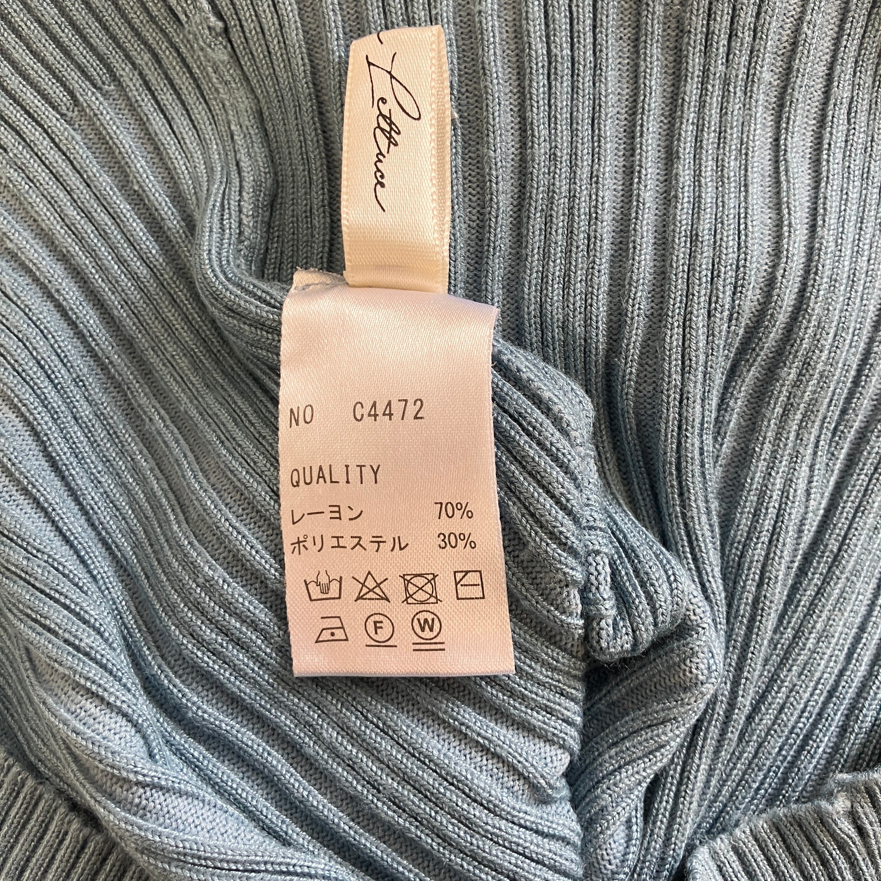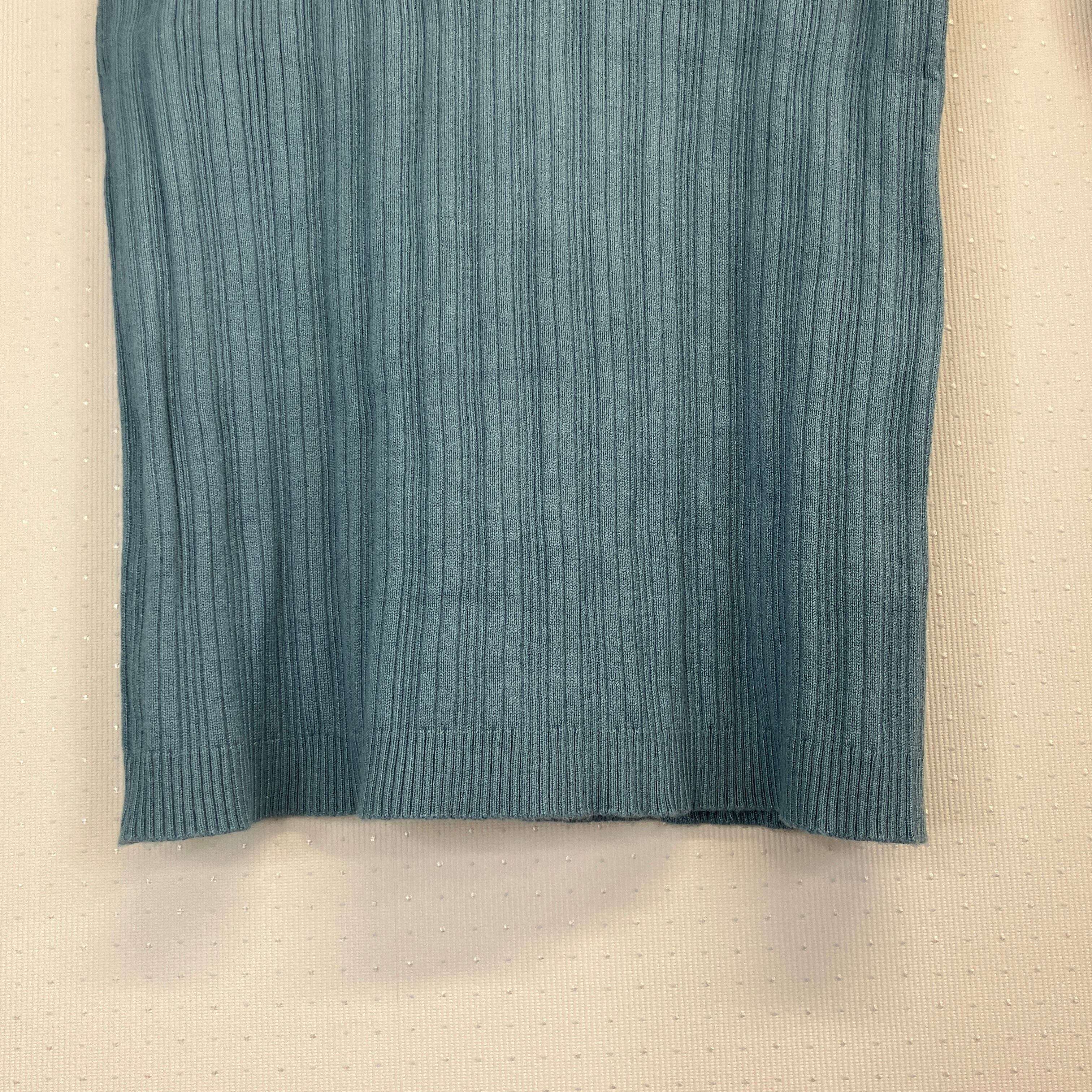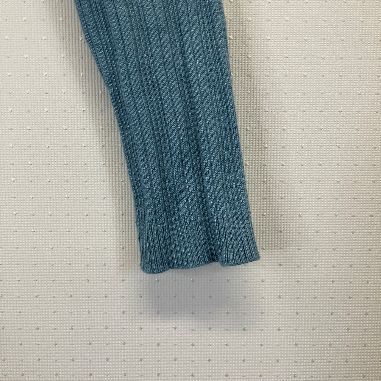 ※状態は写真を見てご判断ください。リブ編みデザインの水色長袖トップス、スクエアネック仕様。