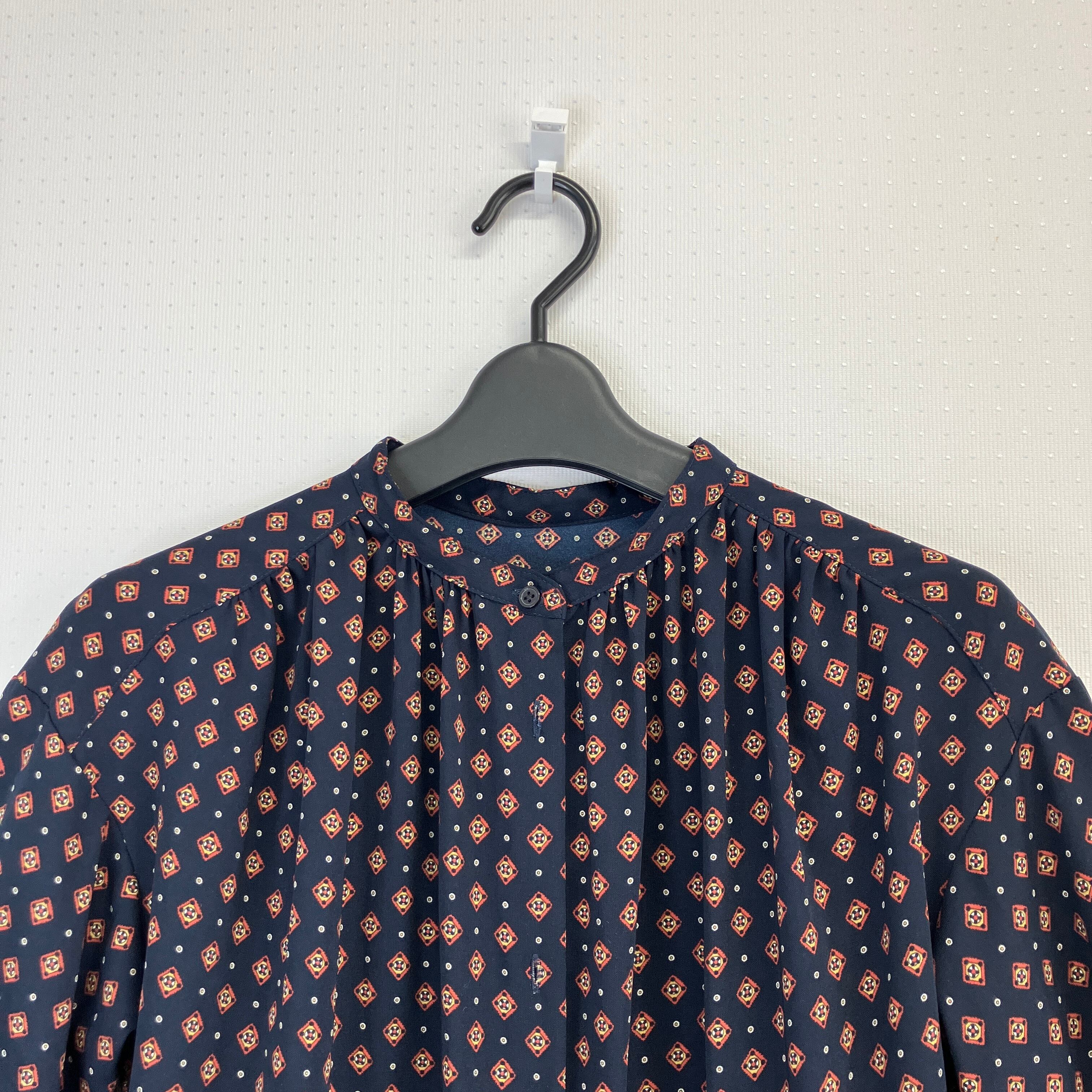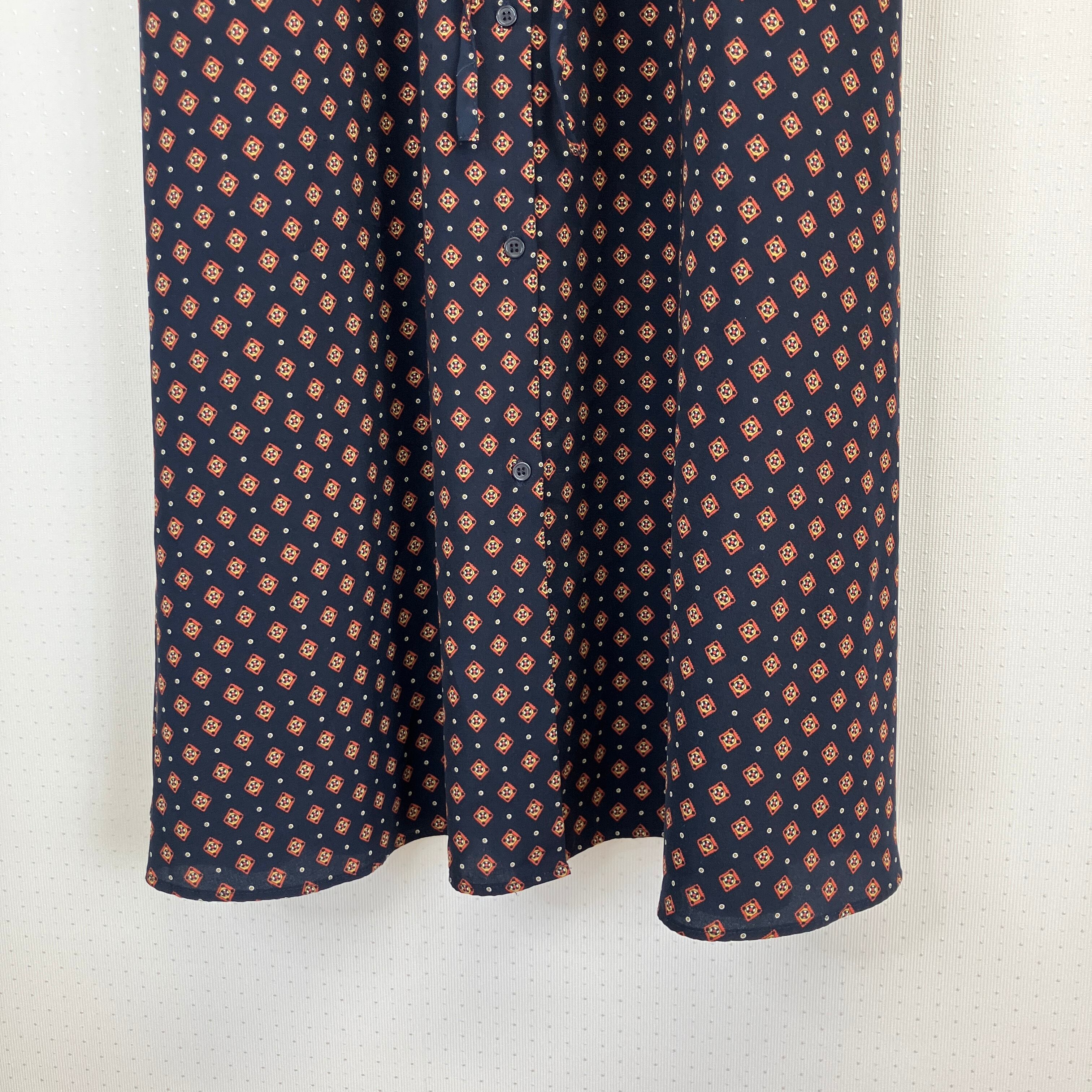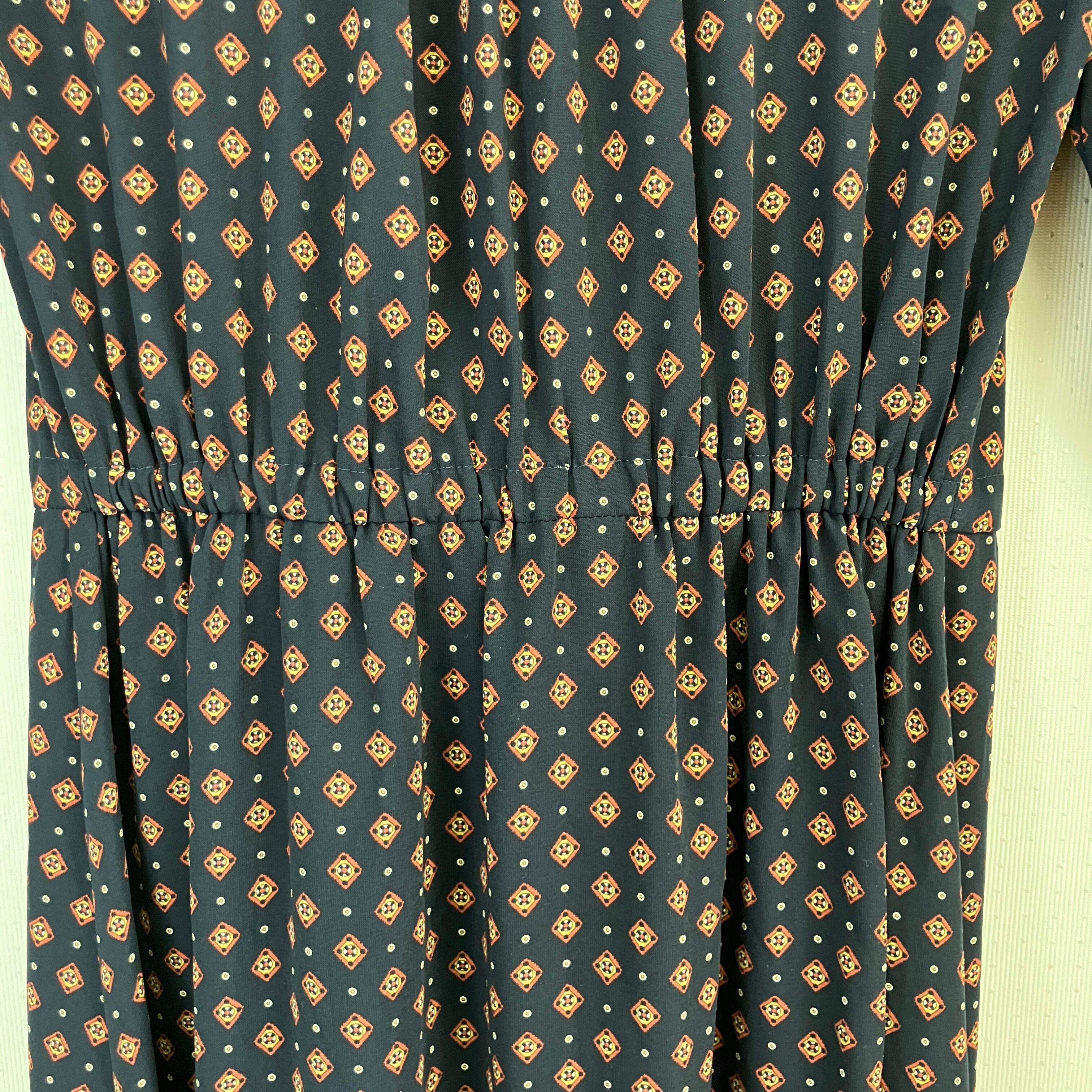 GU レトロ柄 ロングワンピース ネイビー花柄 マキシドレス 長袖 GU / サイズ : S