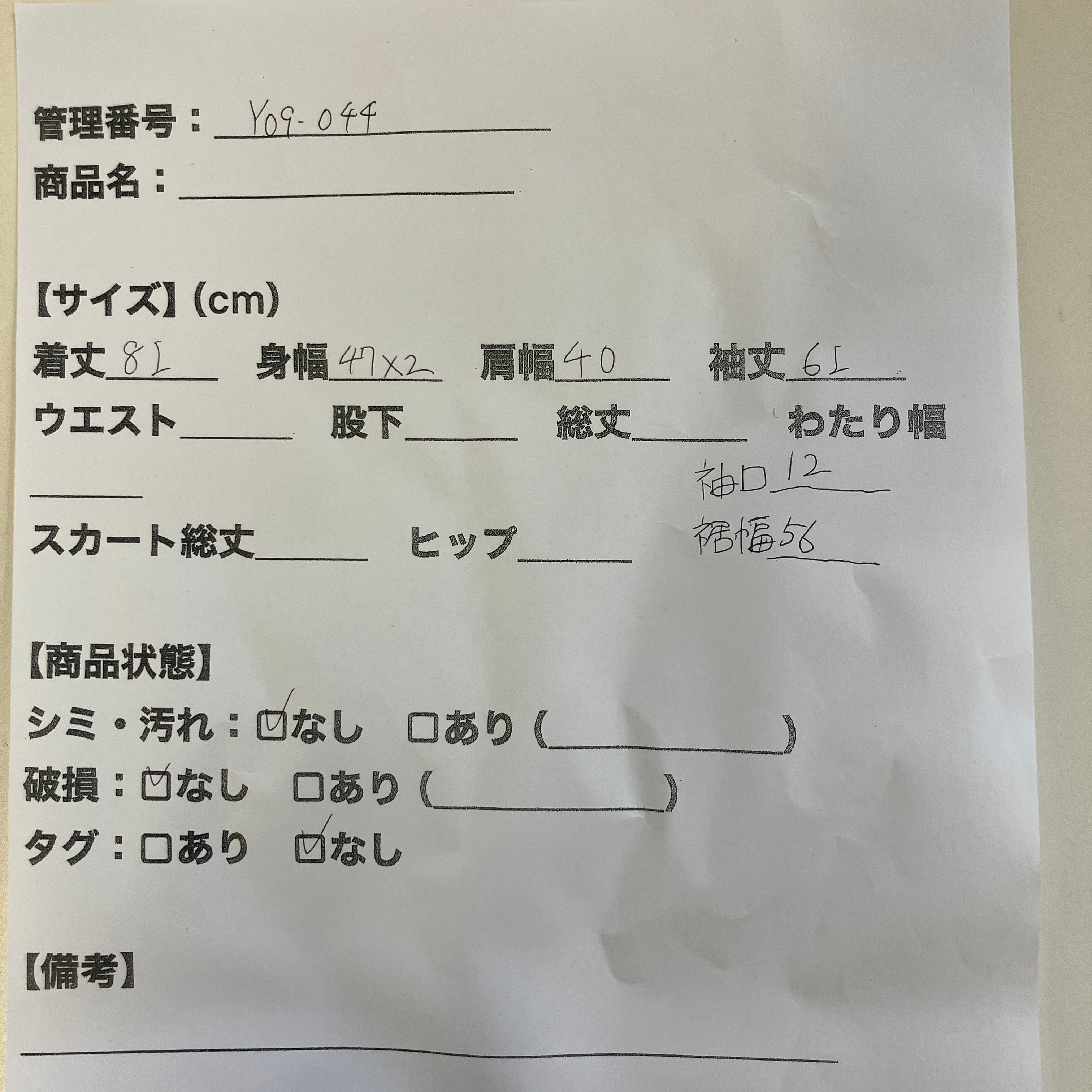 管理番号:Y09-044#てまいらずアパレル商品一覧