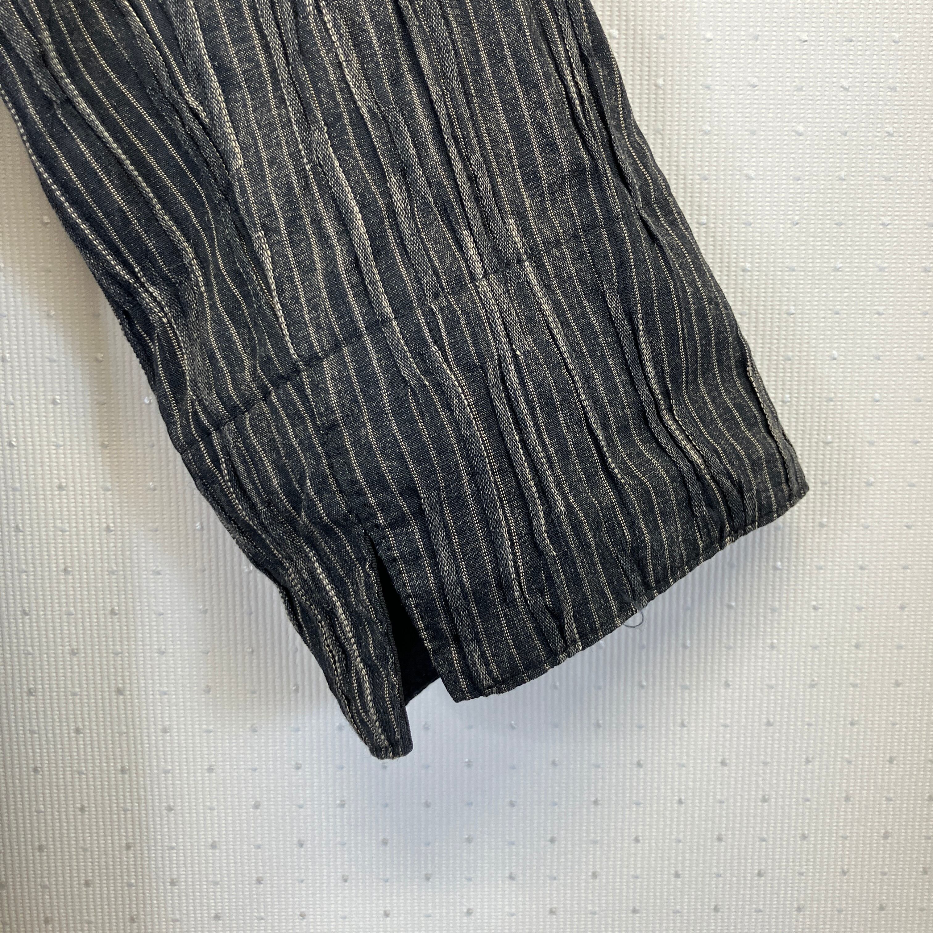 立体的なストライプ柄とボタンやポケットの配置がユニークで、他にはないスタイルを演出できます。
