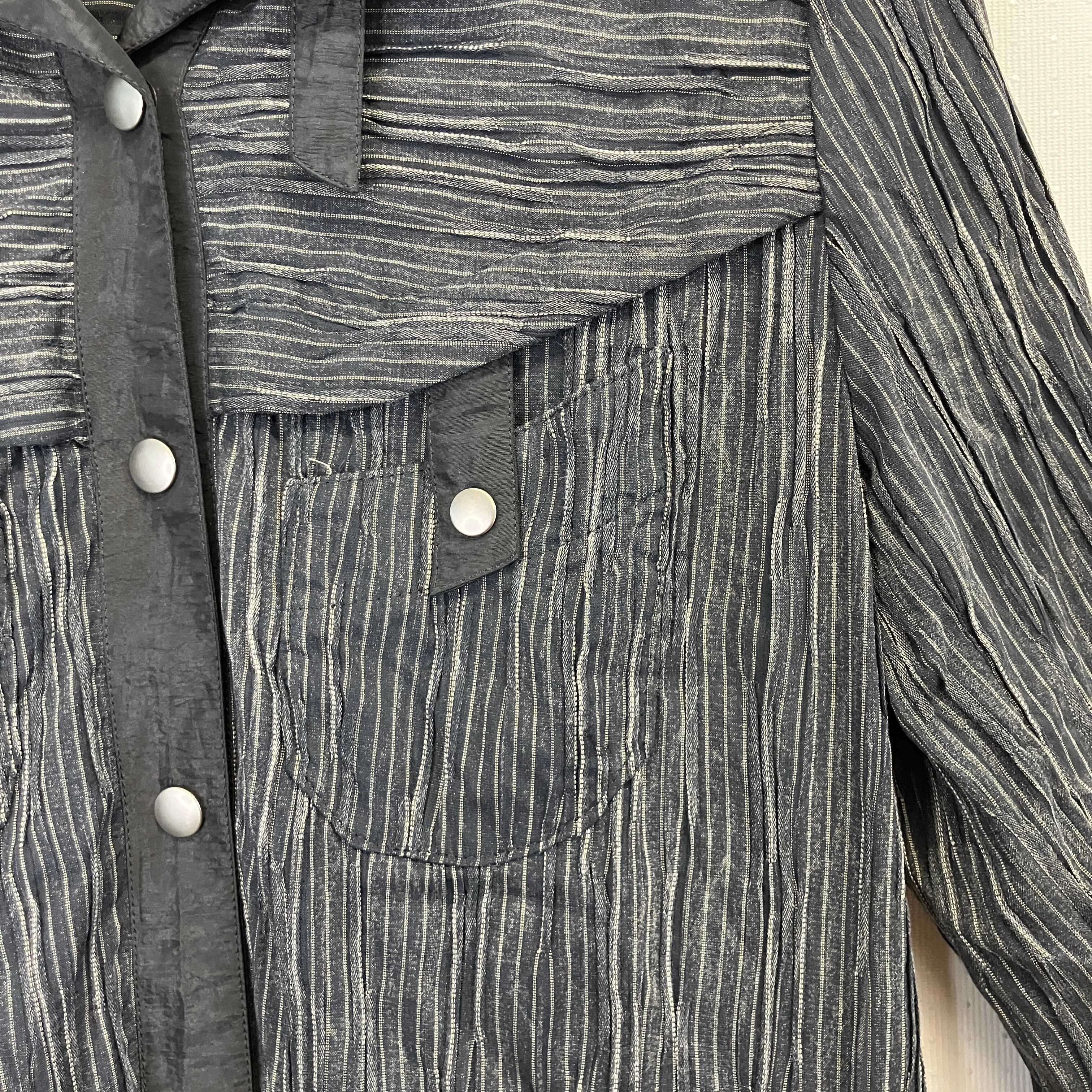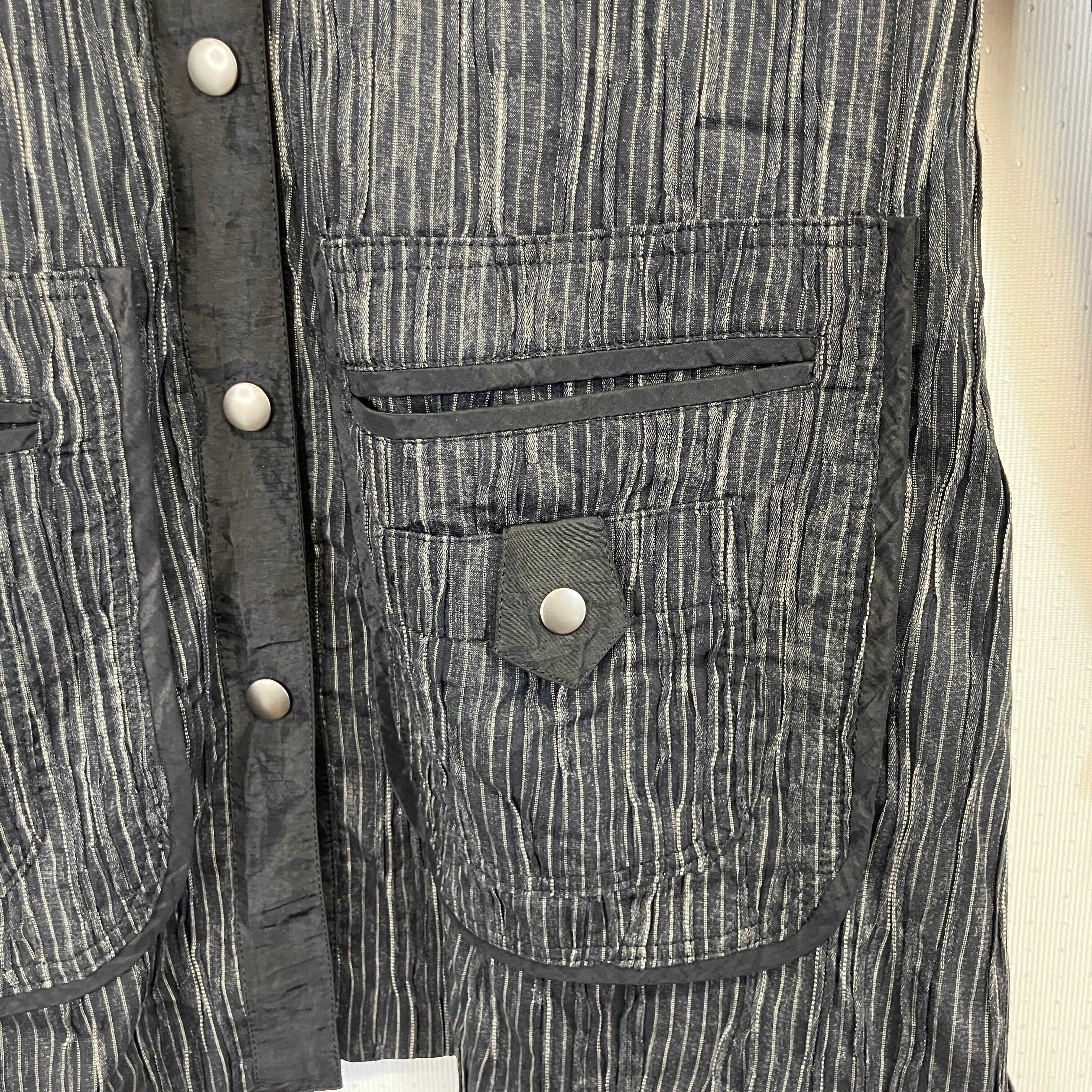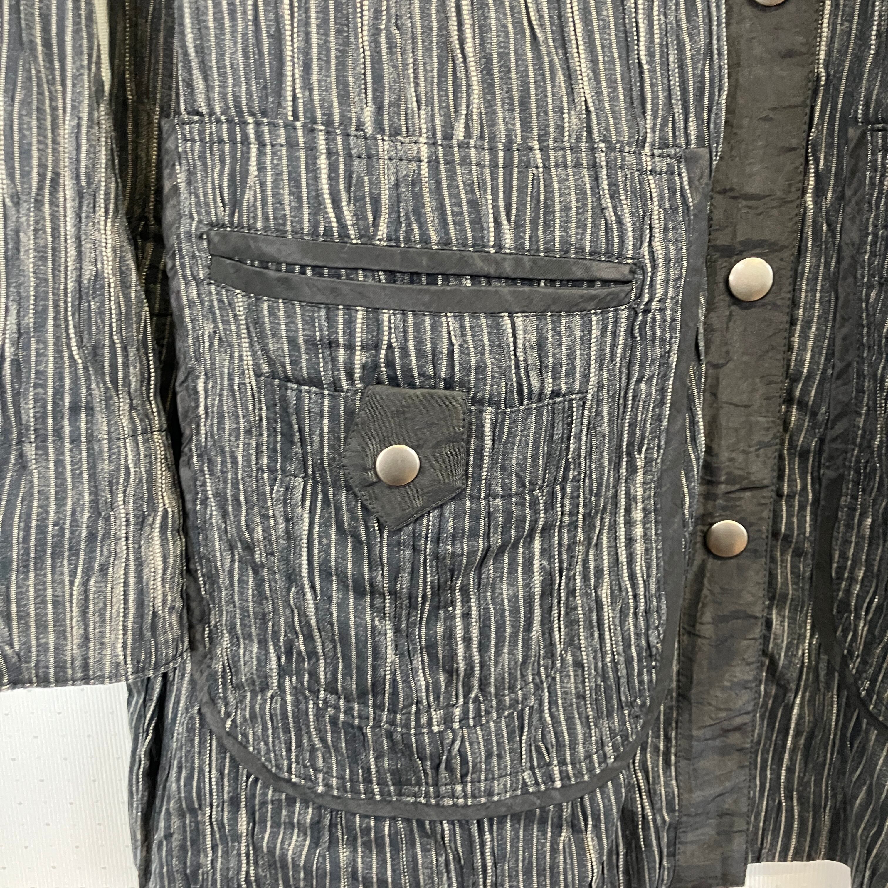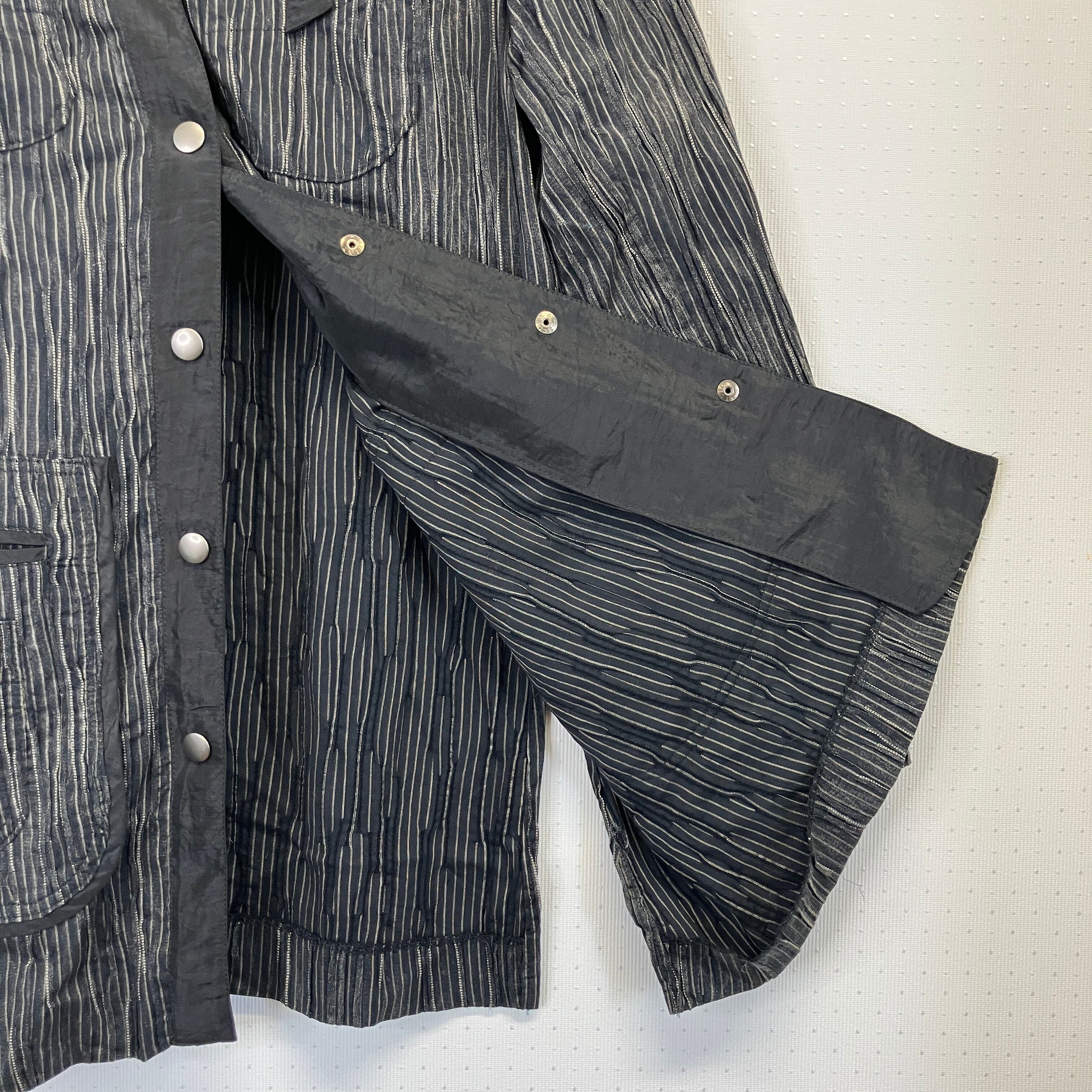 ※状態は写真でご確認ください。黒と白のストライプデザインの軽量ジャケット。