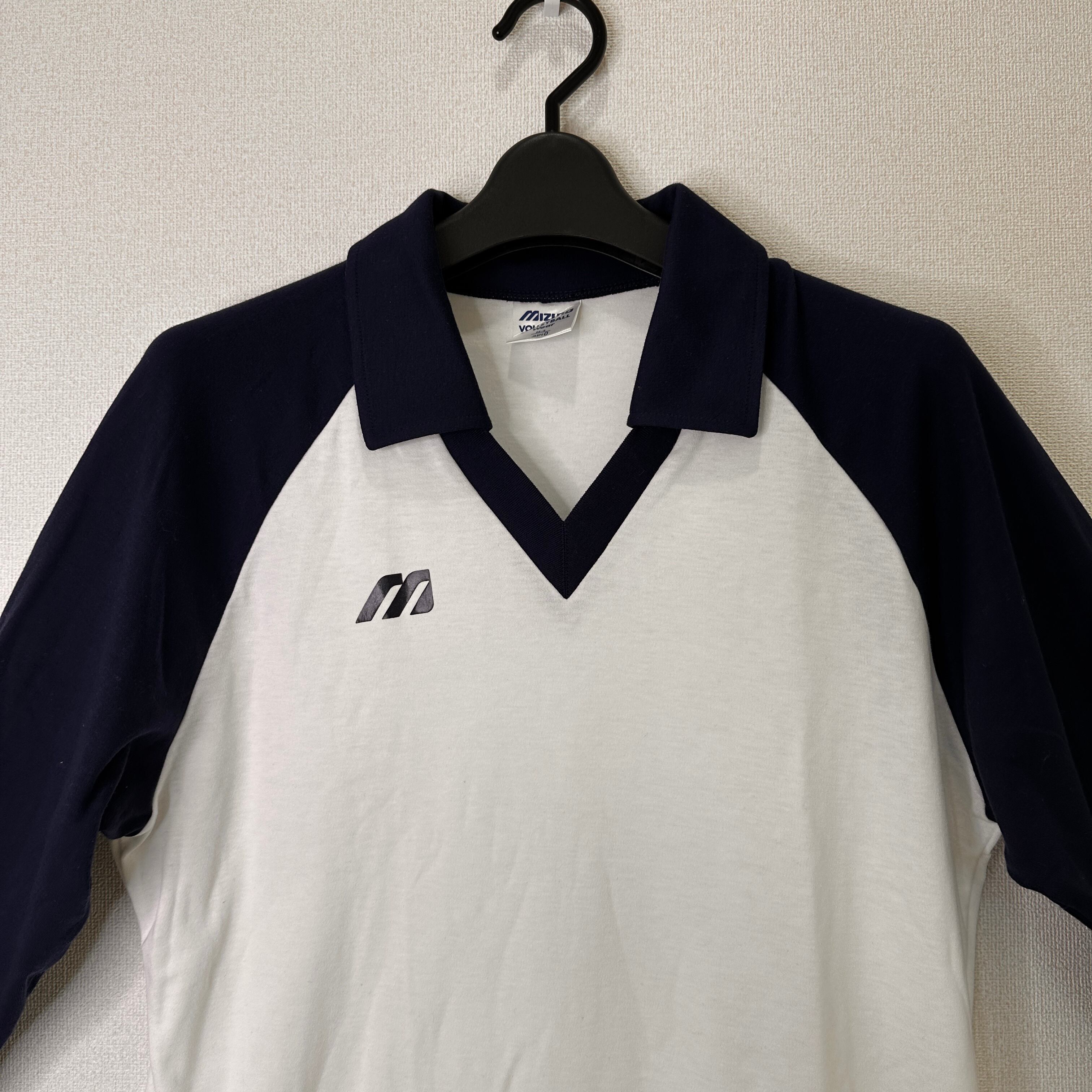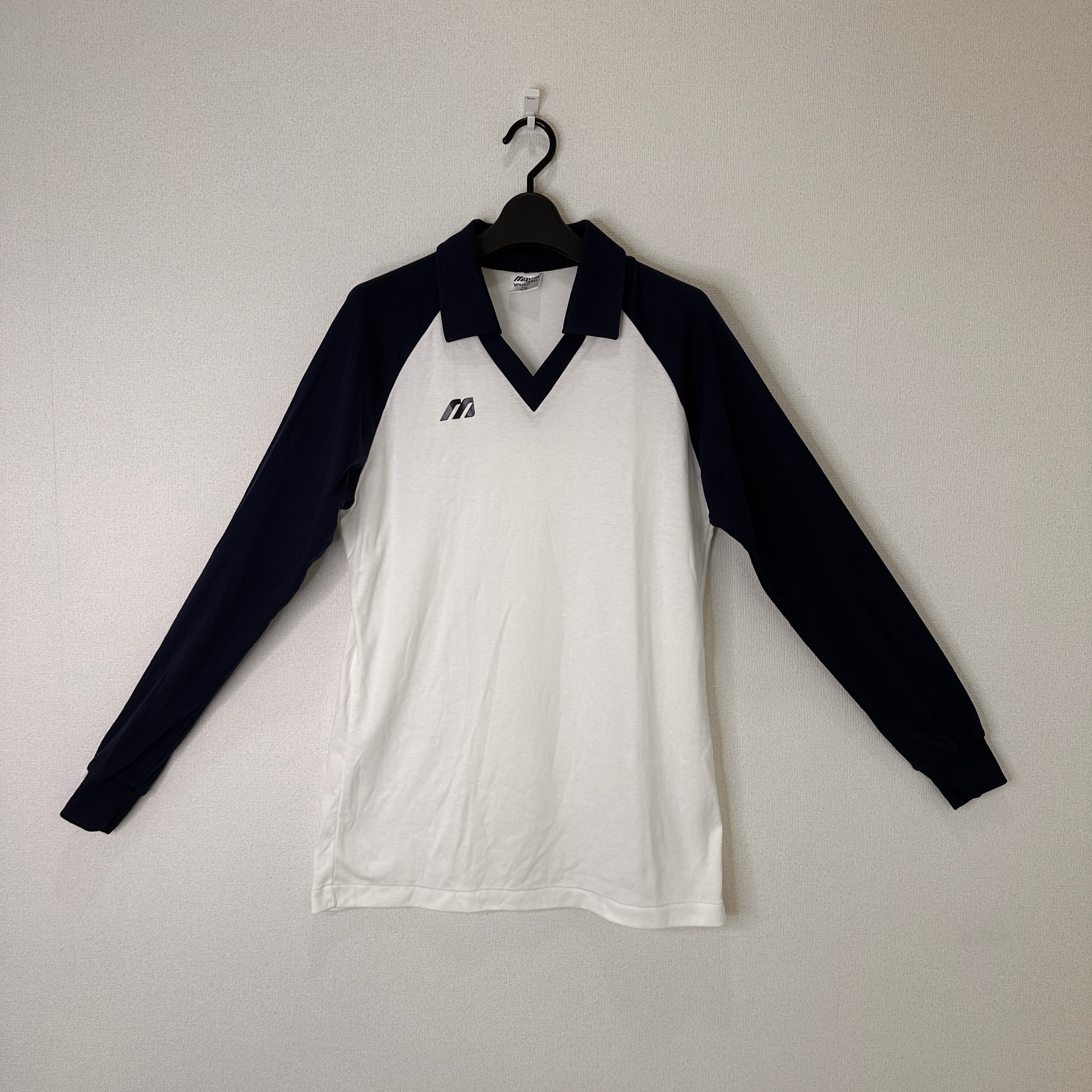 MIZUNO VOLLEYBALL WEAR 長袖ゲームシャツ ポロシャツ JASPO 白 紺 日本製 MIZUNO / サイズ : M