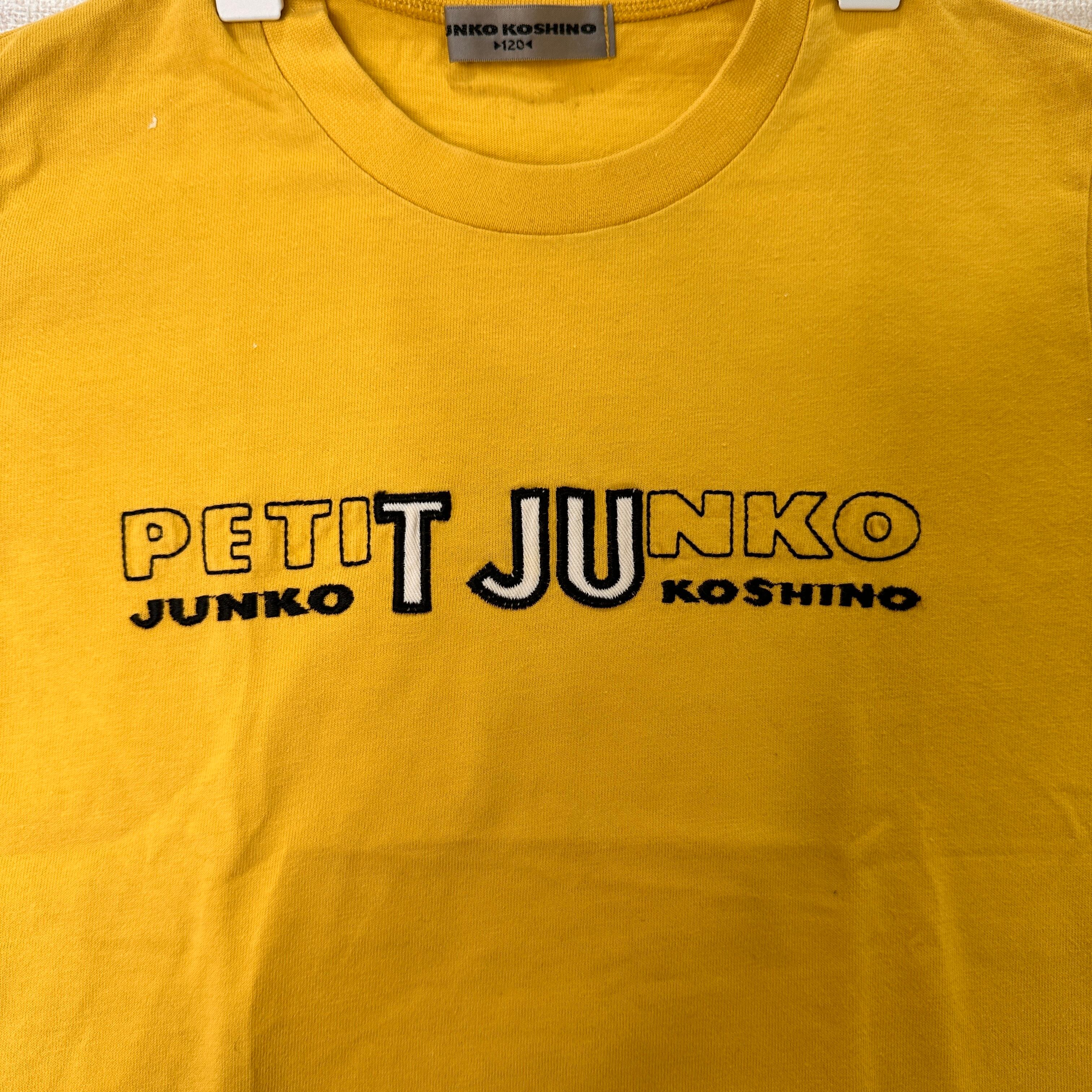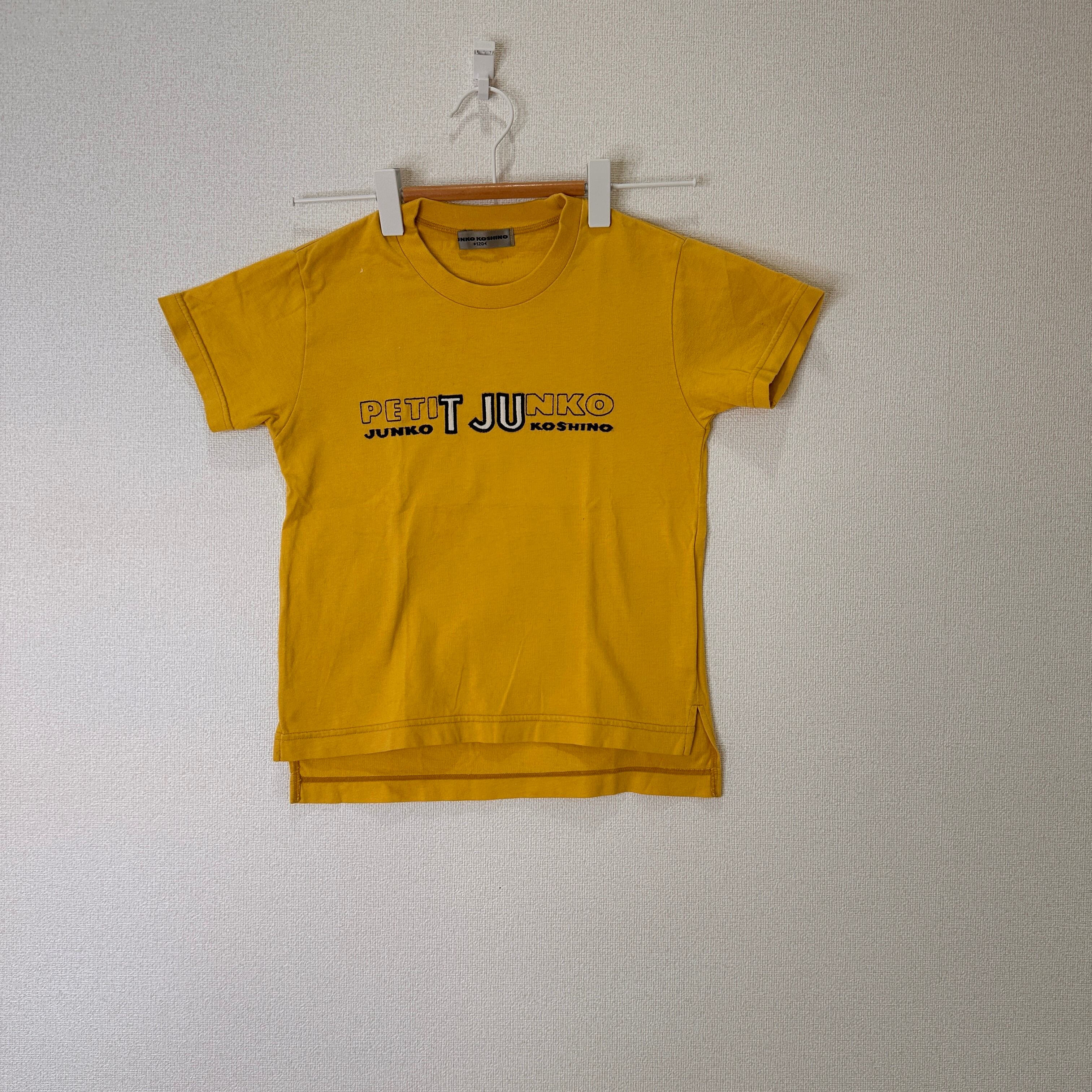 目立った傷や汚れはありませんが、中古品にご理解いただける方のみご購入をお願いいたします。鮮やかな黄色のPETIT JUNKO KOSHINO Tシャツ、ロゴプリントデザイン。
