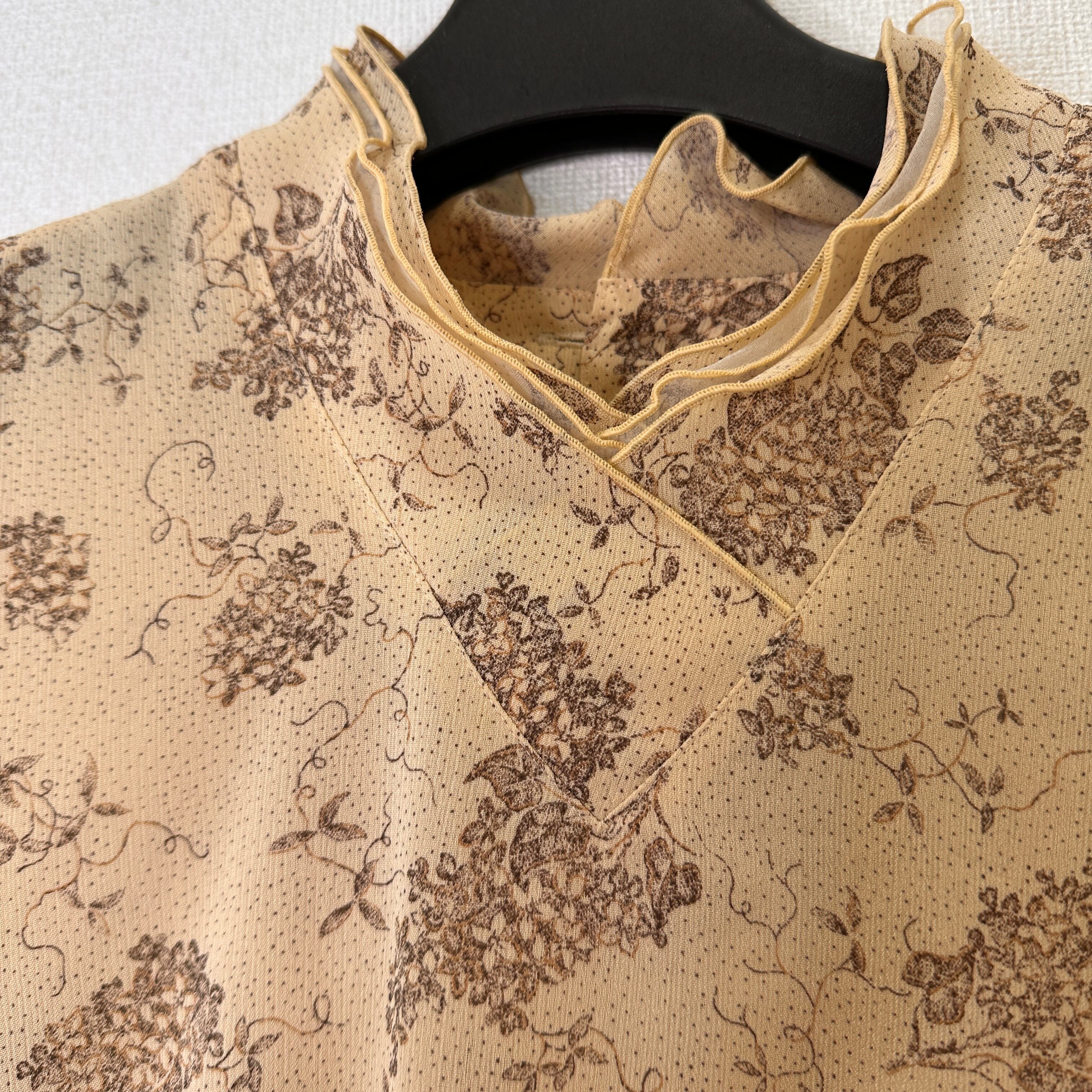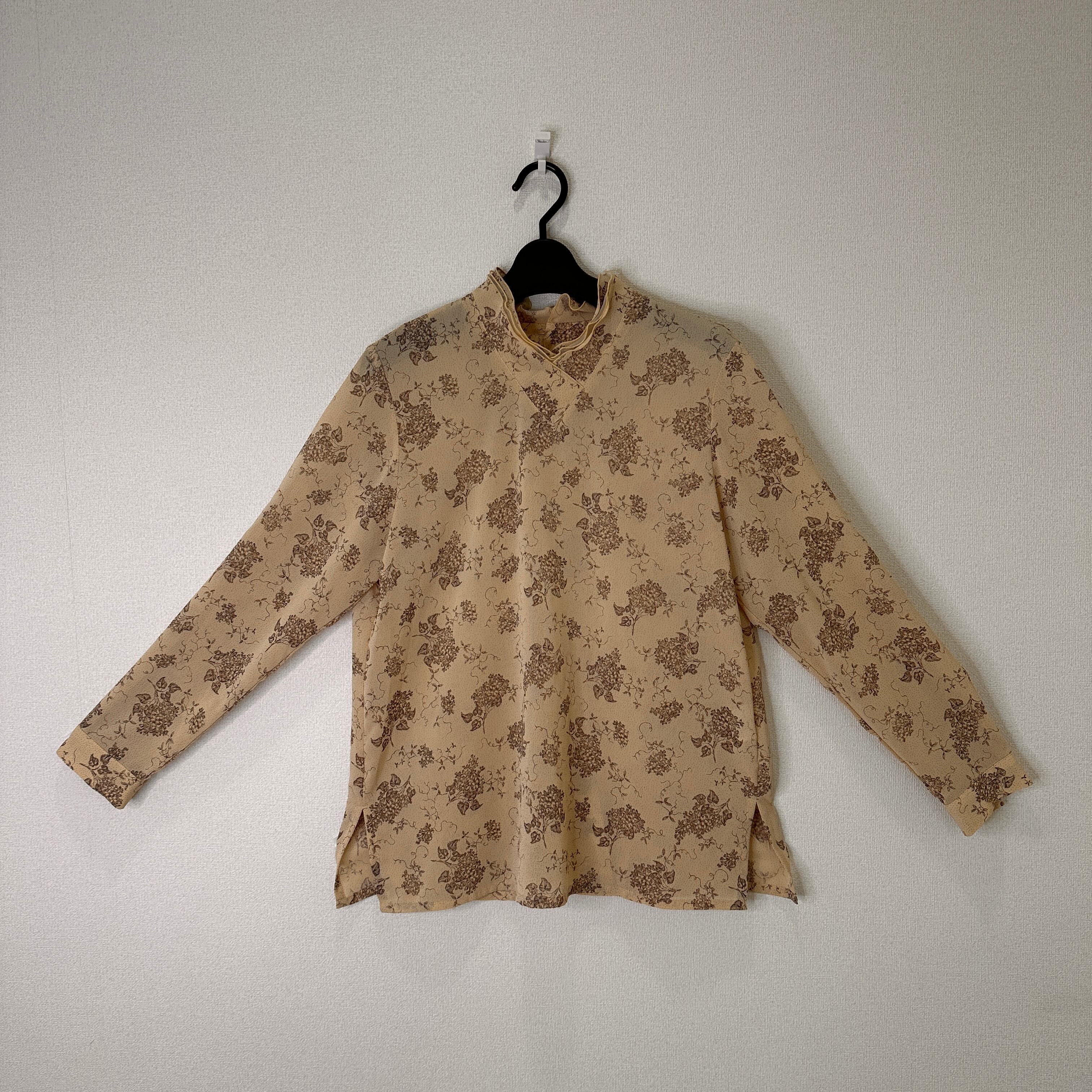 JOLIET Tokyo blouse (ジョリエット) 長袖ブラウス 花柄 ハイネック Mサイズ ベージュ 日本製