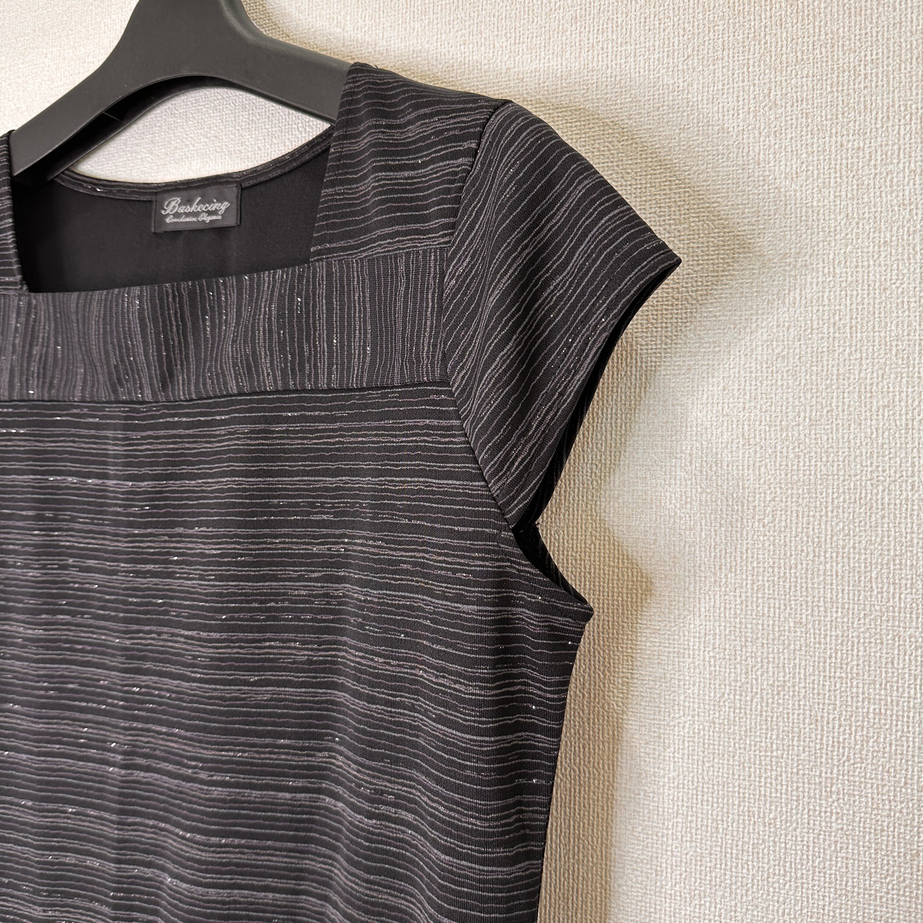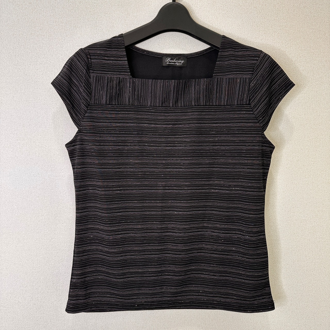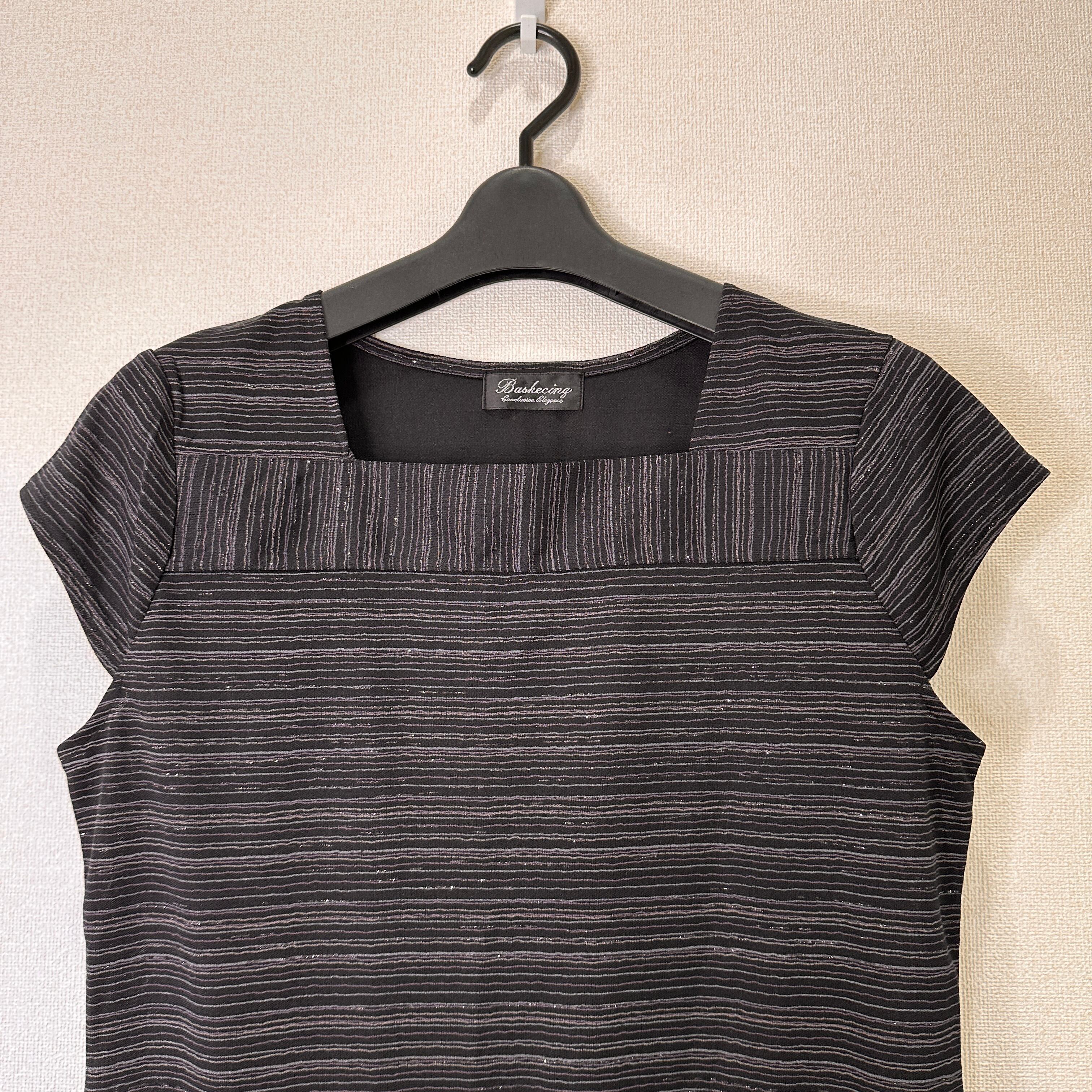 Bashecing スクエアネック 半袖カットソー Lサイズ 黒 ラメストライプ