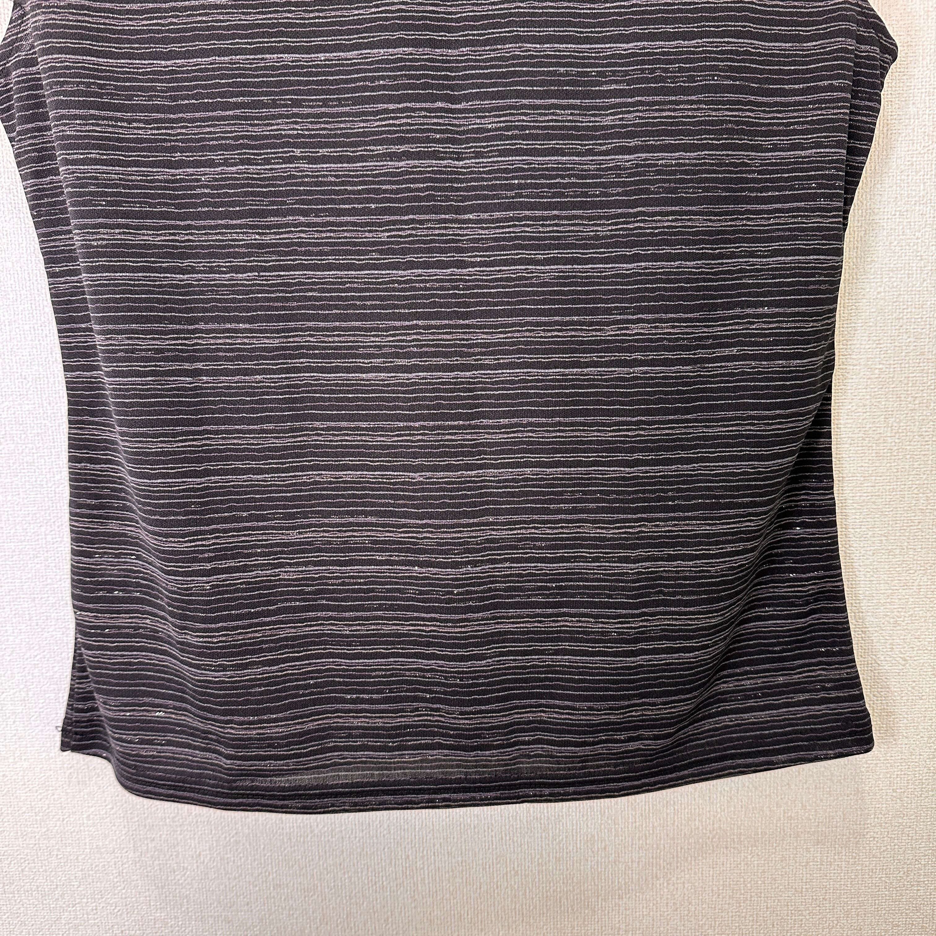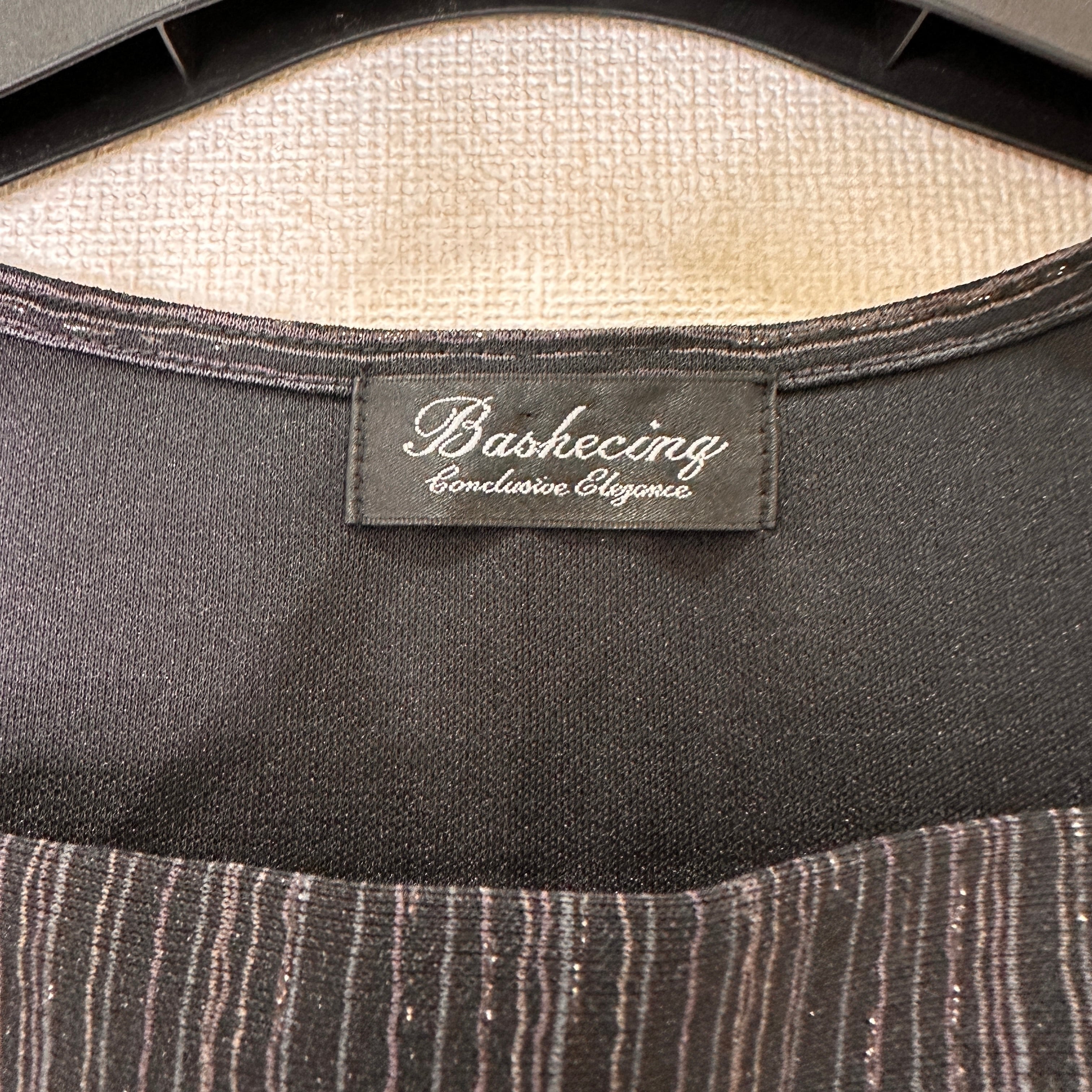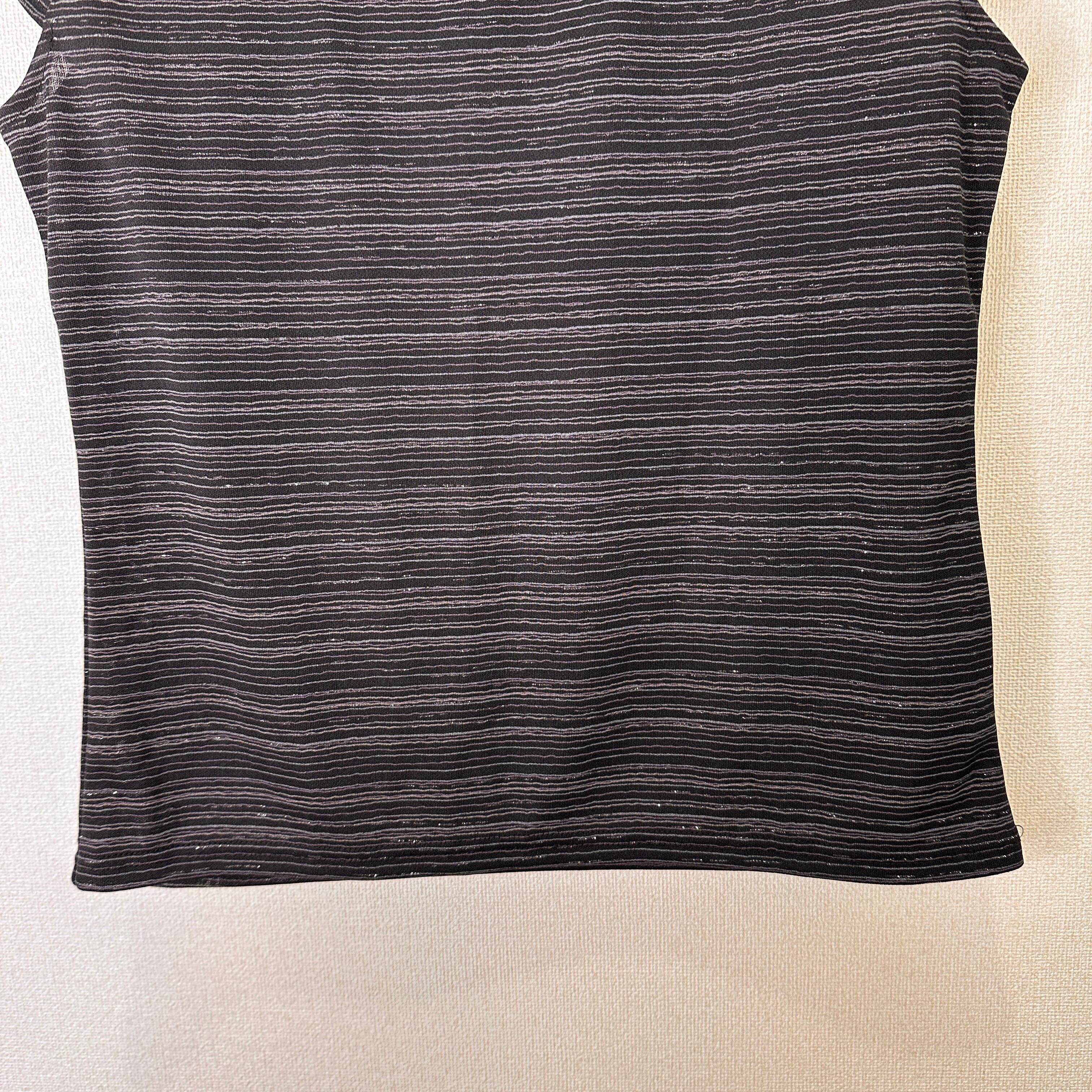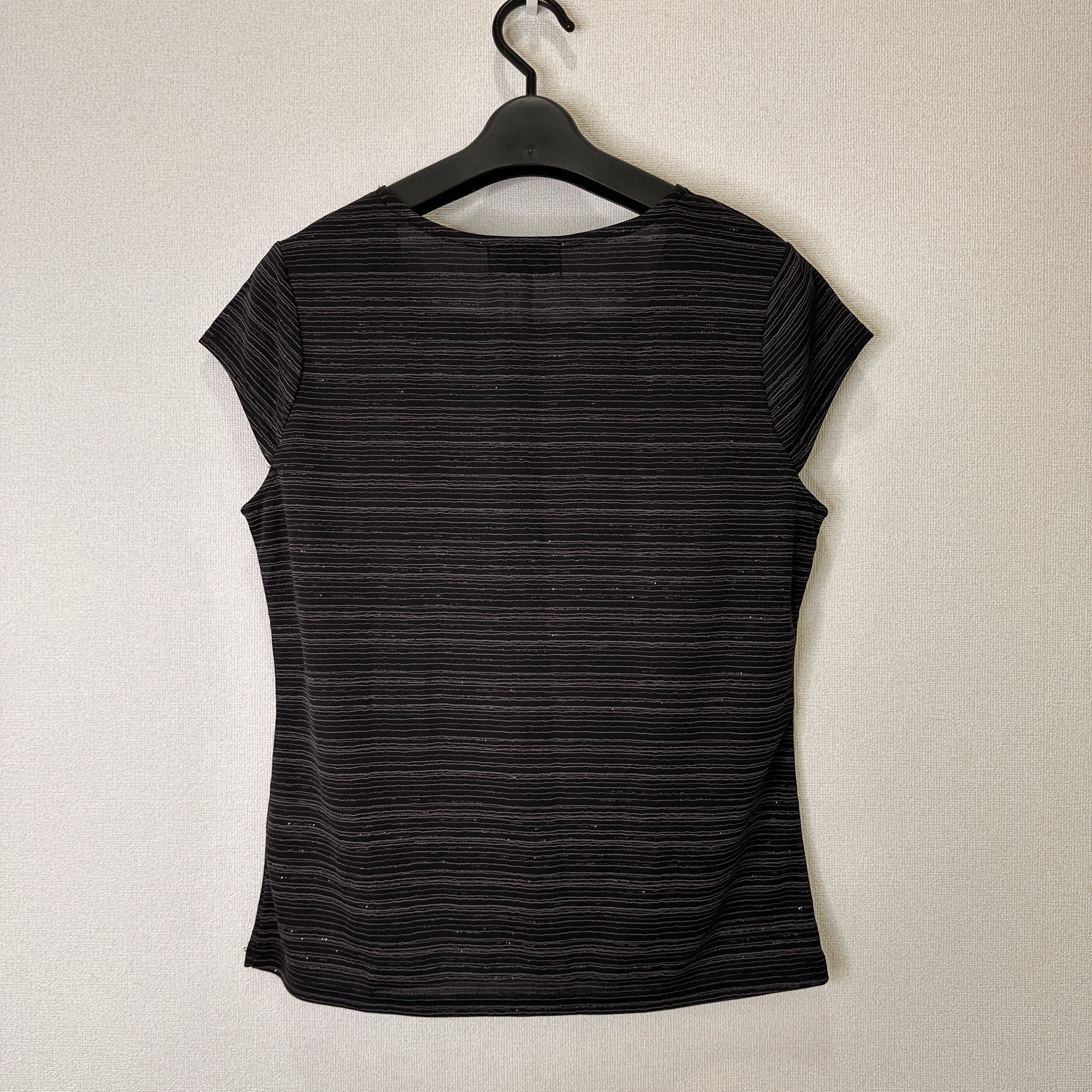 Bashecing スクエアネック 半袖カットソー Lサイズ 黒 ラメストライプ