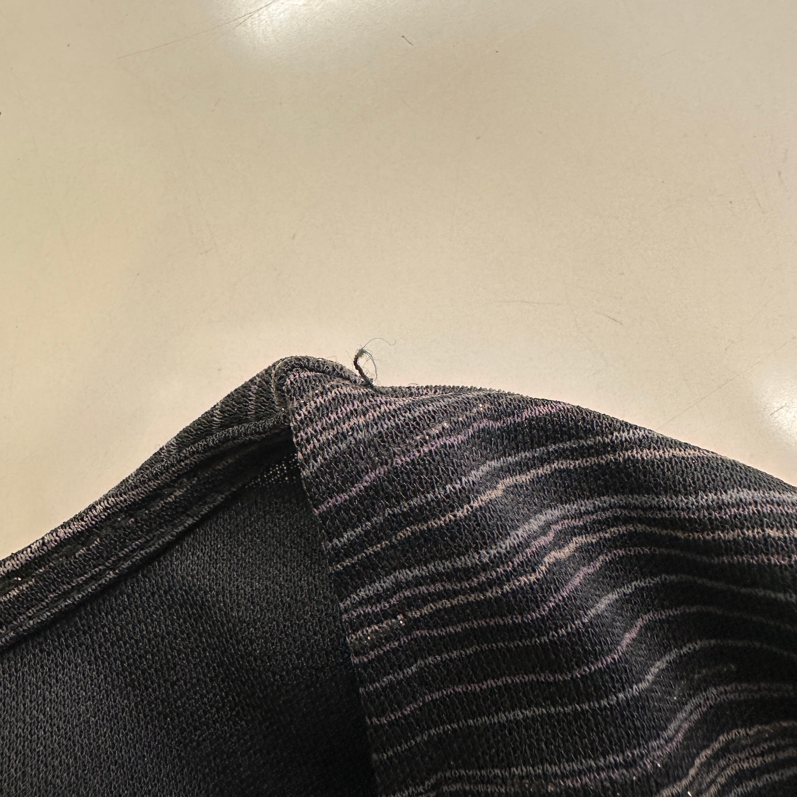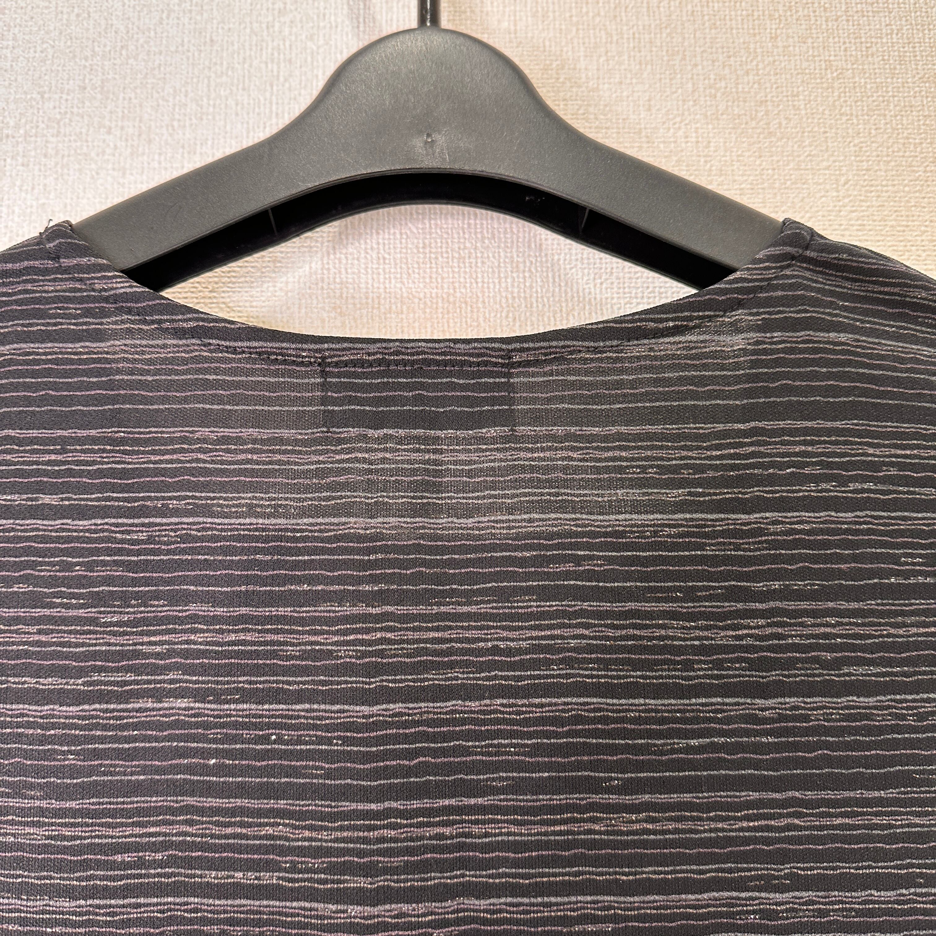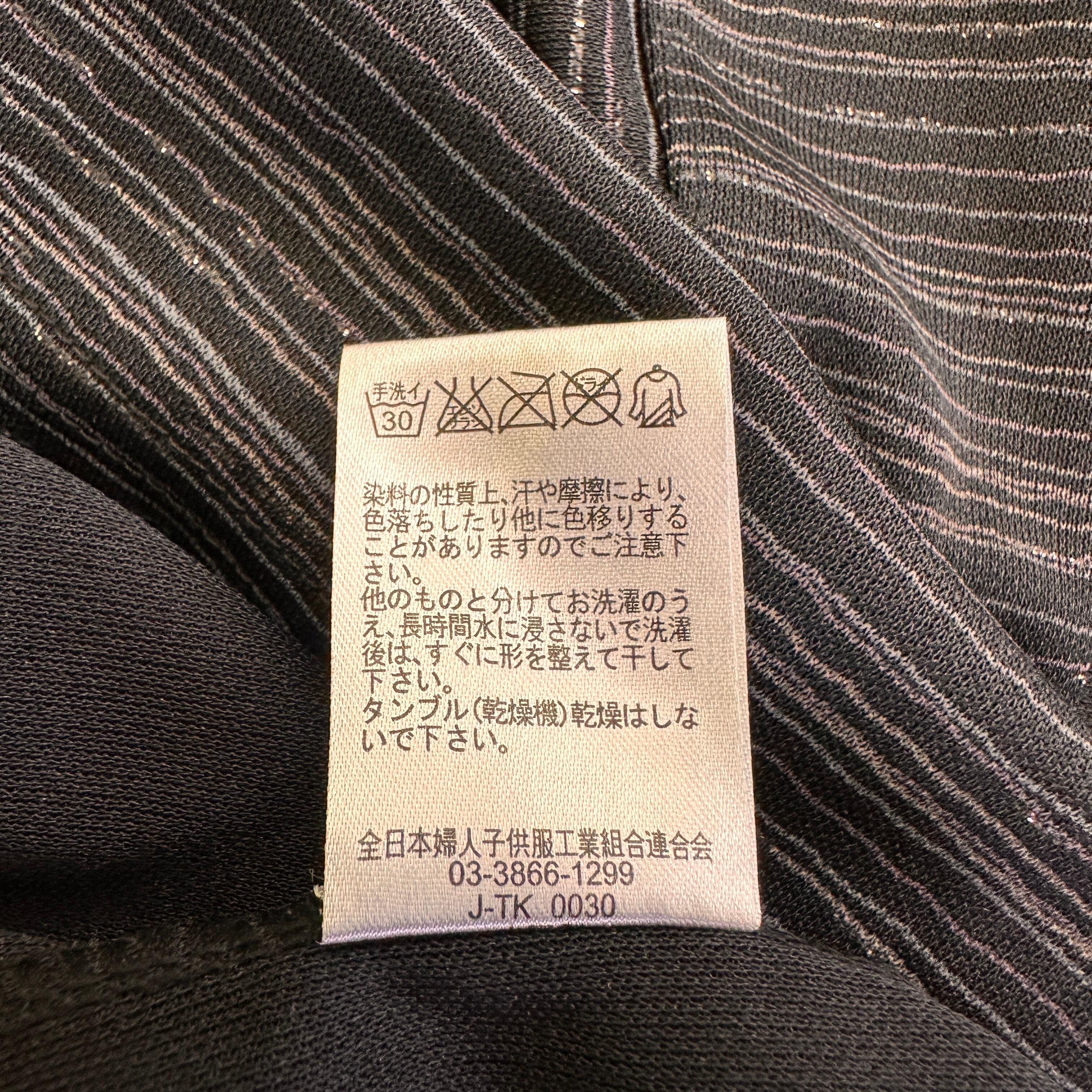 色はブラックで、細かなラメ(光沢のある糸)が織り込まれた横ストライプ柄になっており、華やかな印象です。
