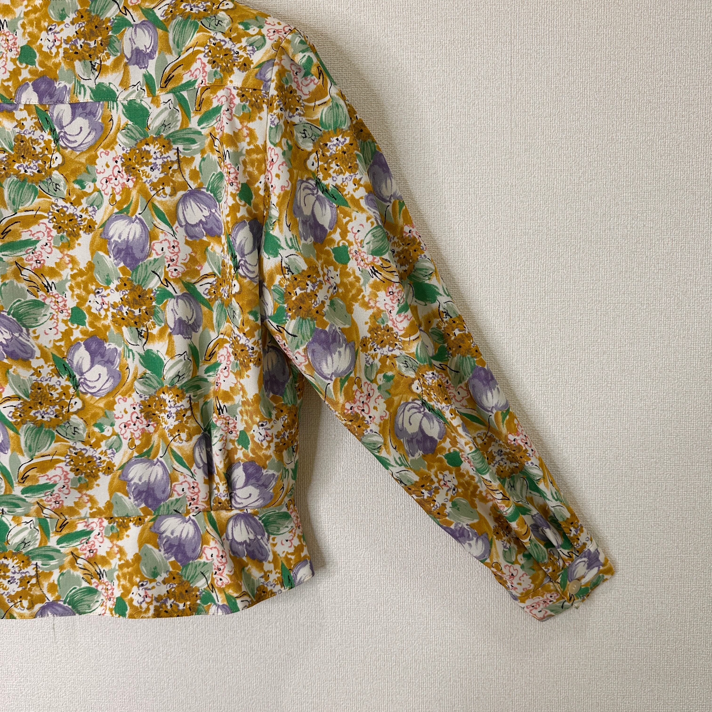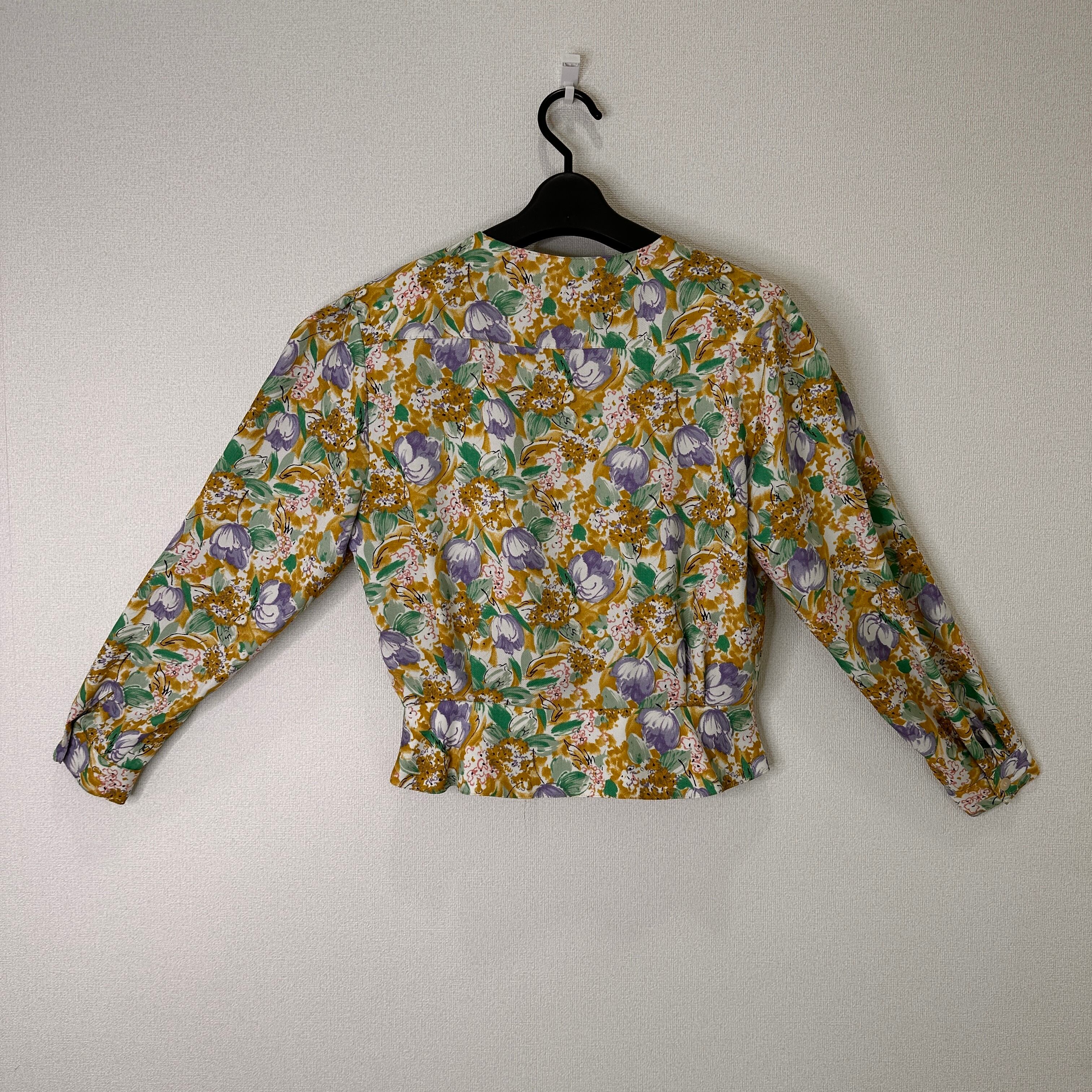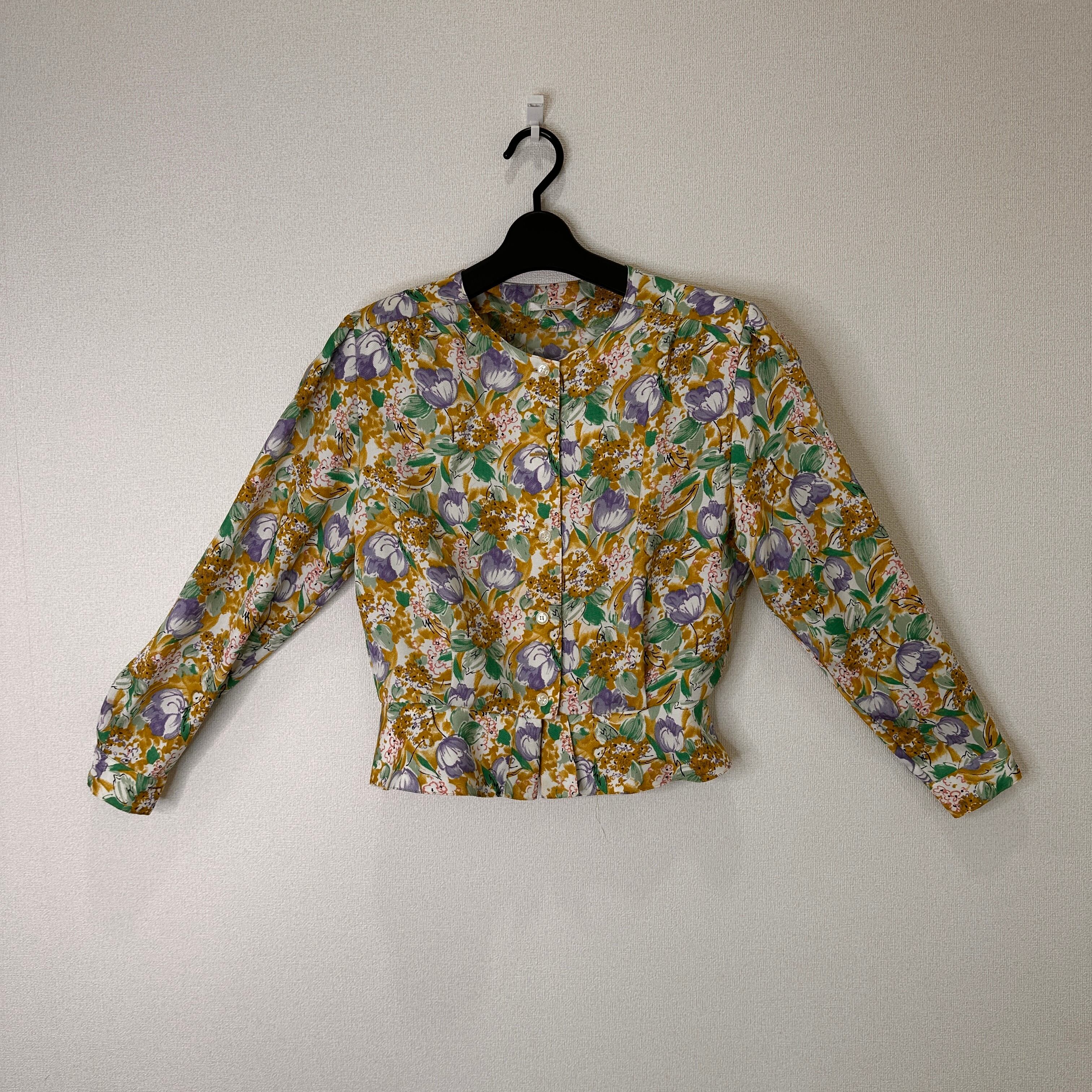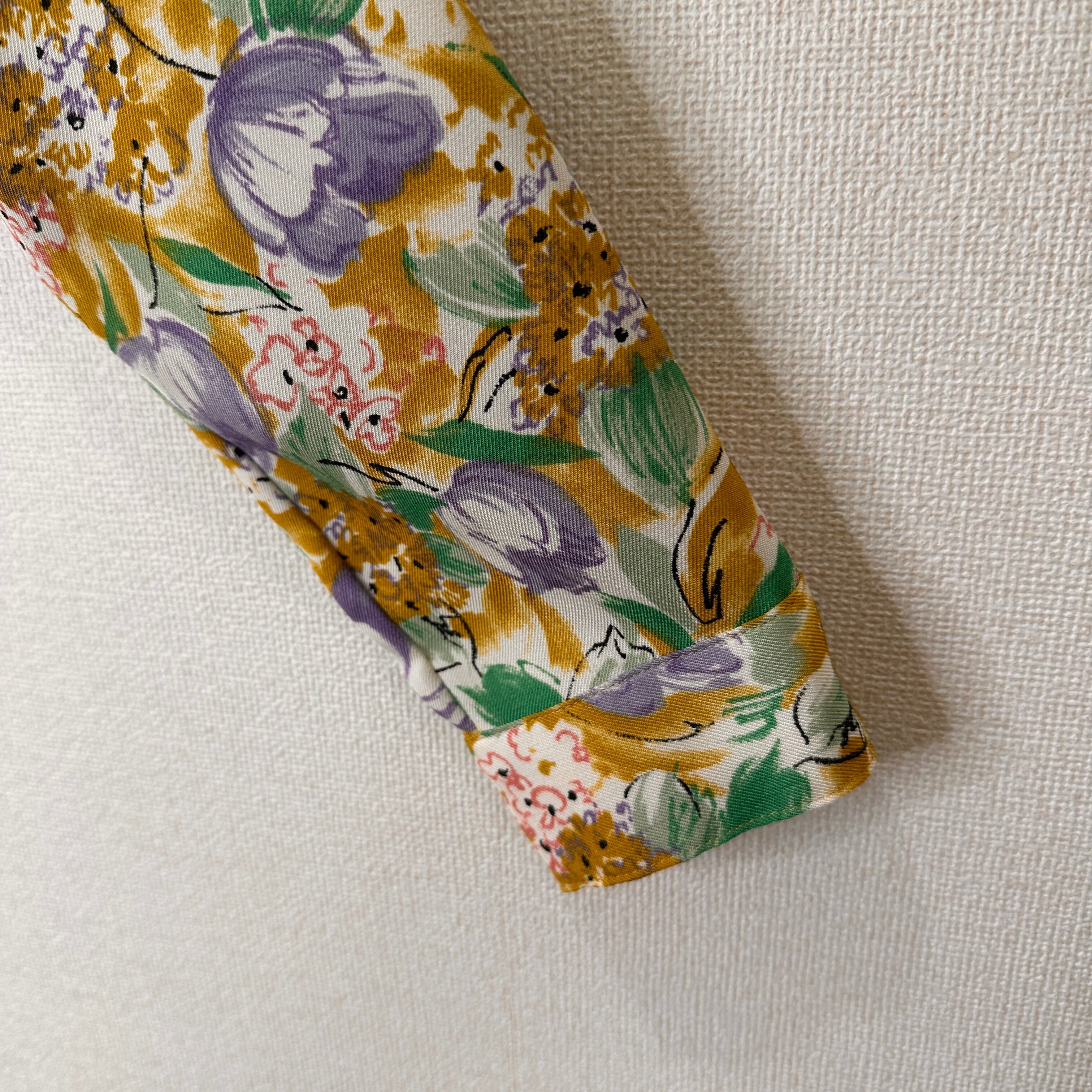 レトロな雰囲気の花柄が華やかな長袖ブラウスです。