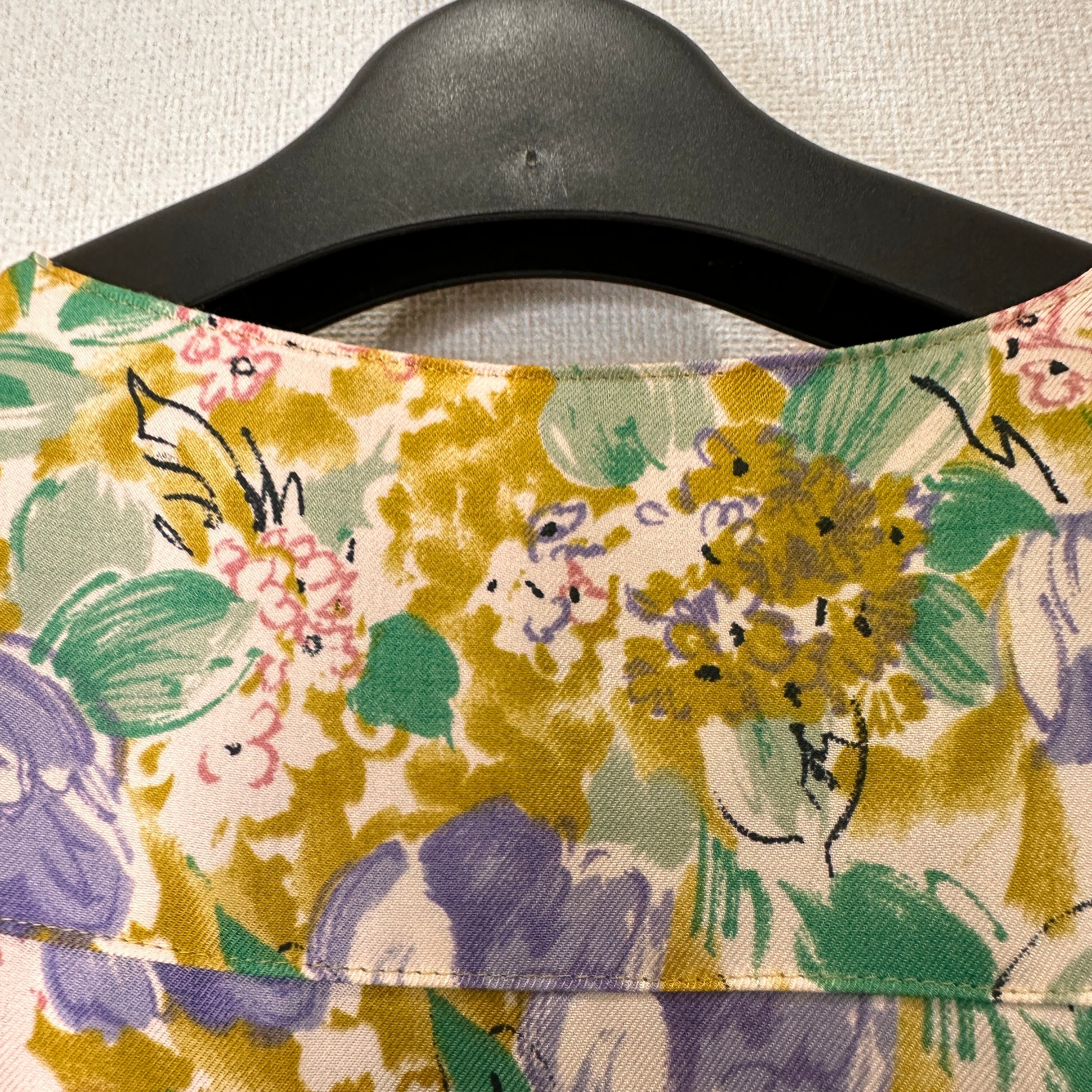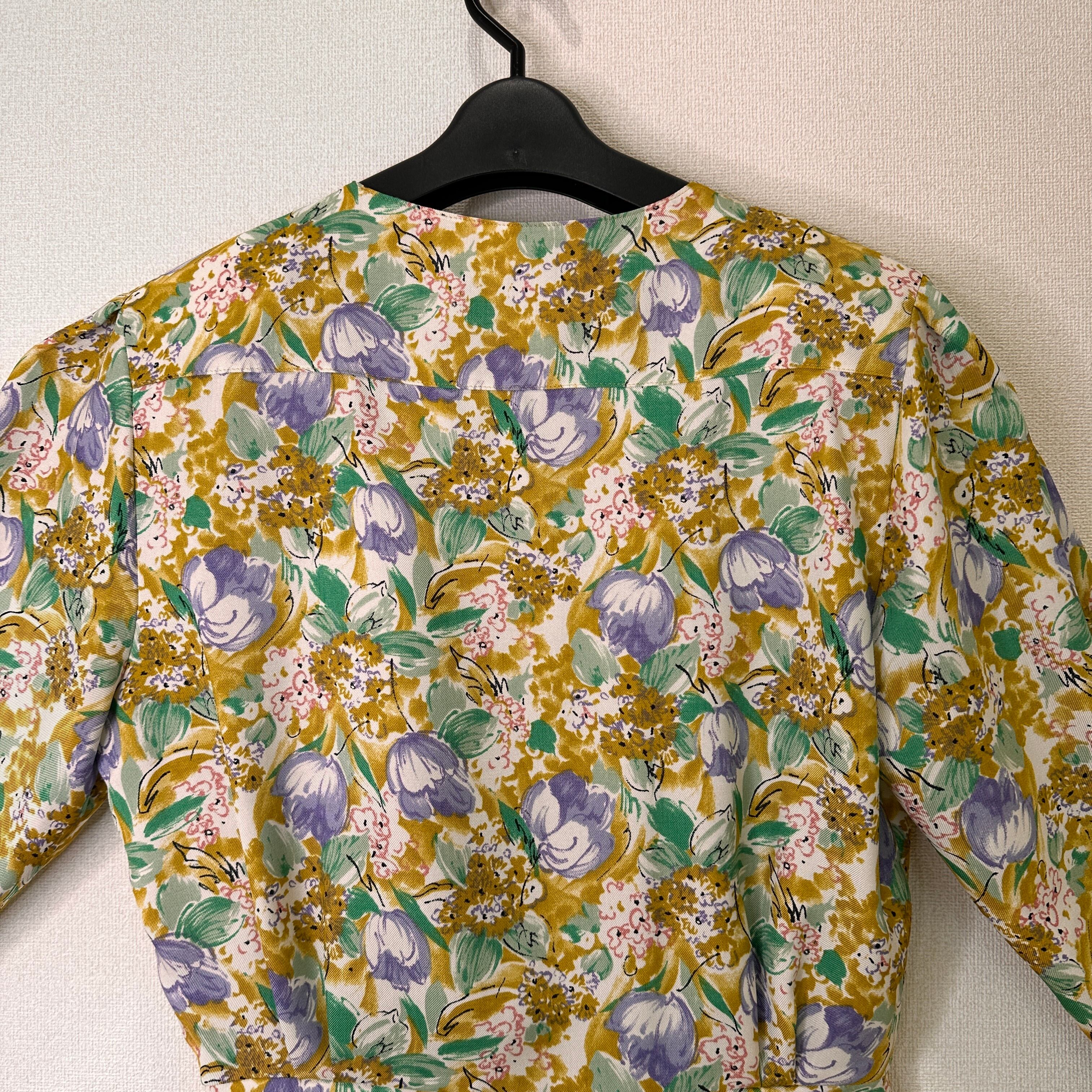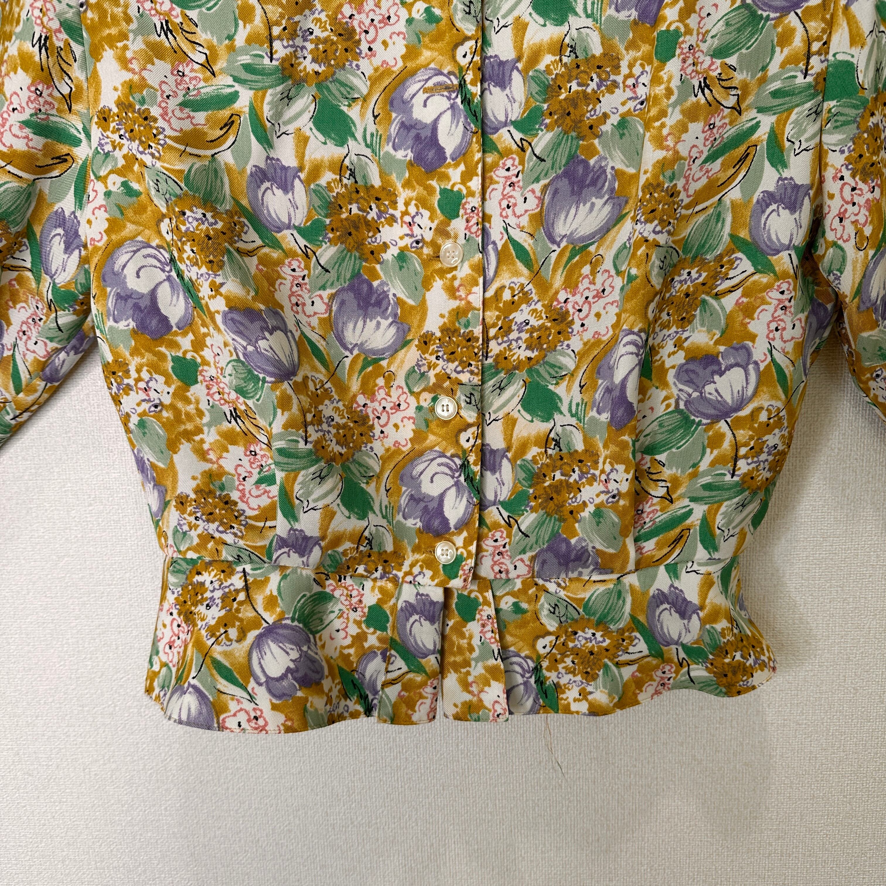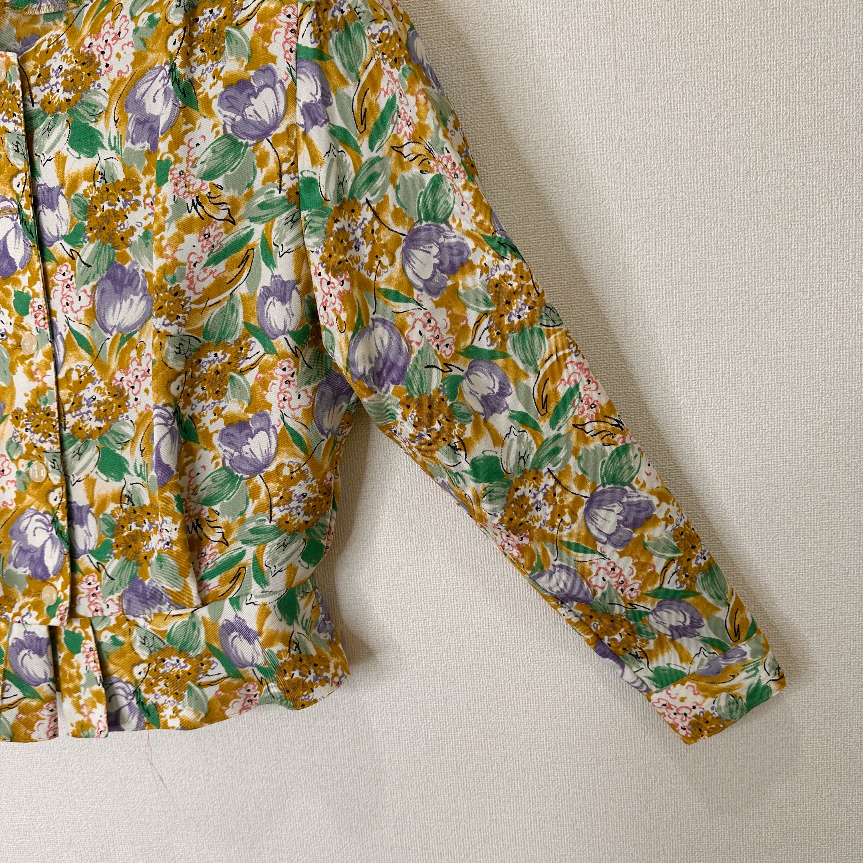 レトロな雰囲気の花柄が華やかな長袖ブラウスです。