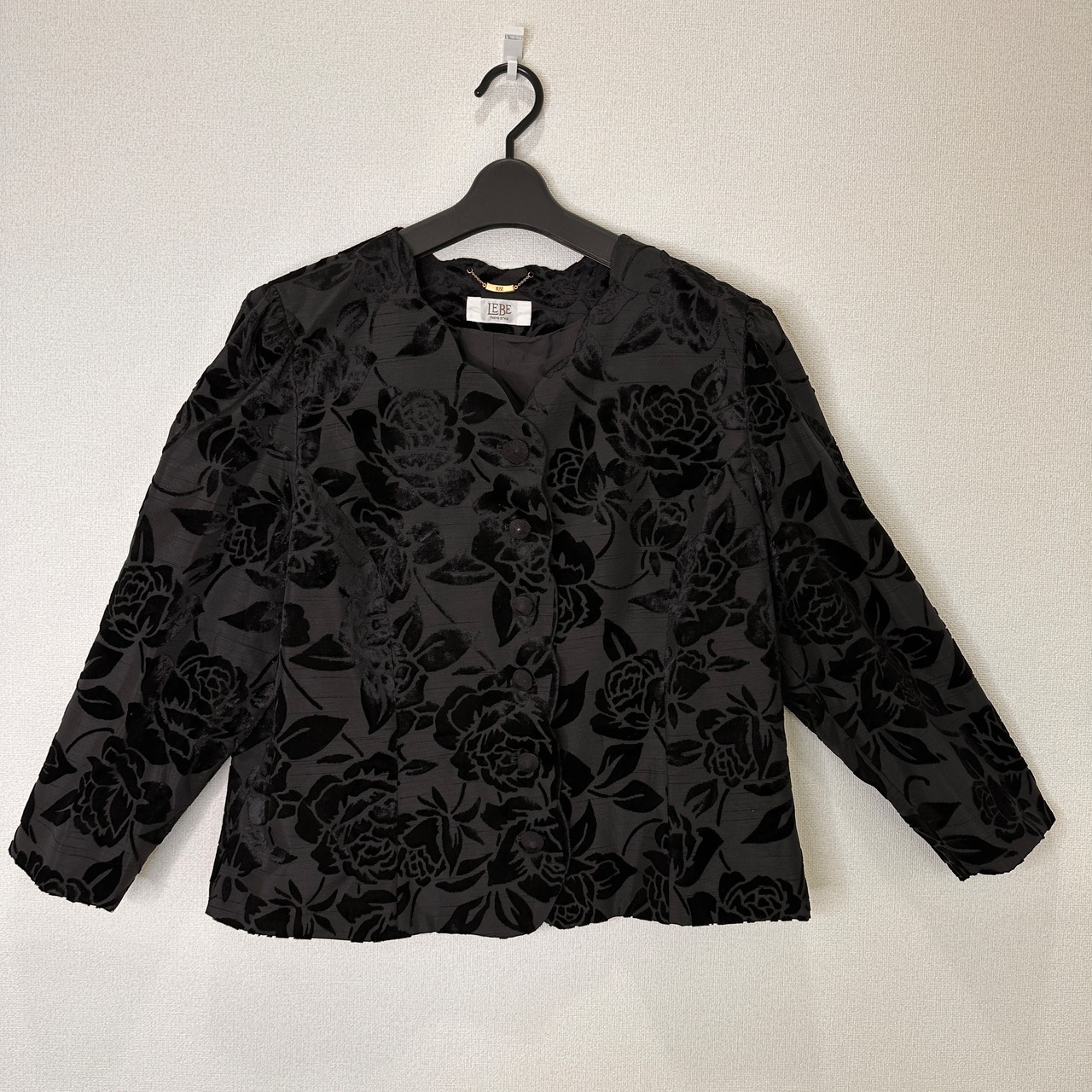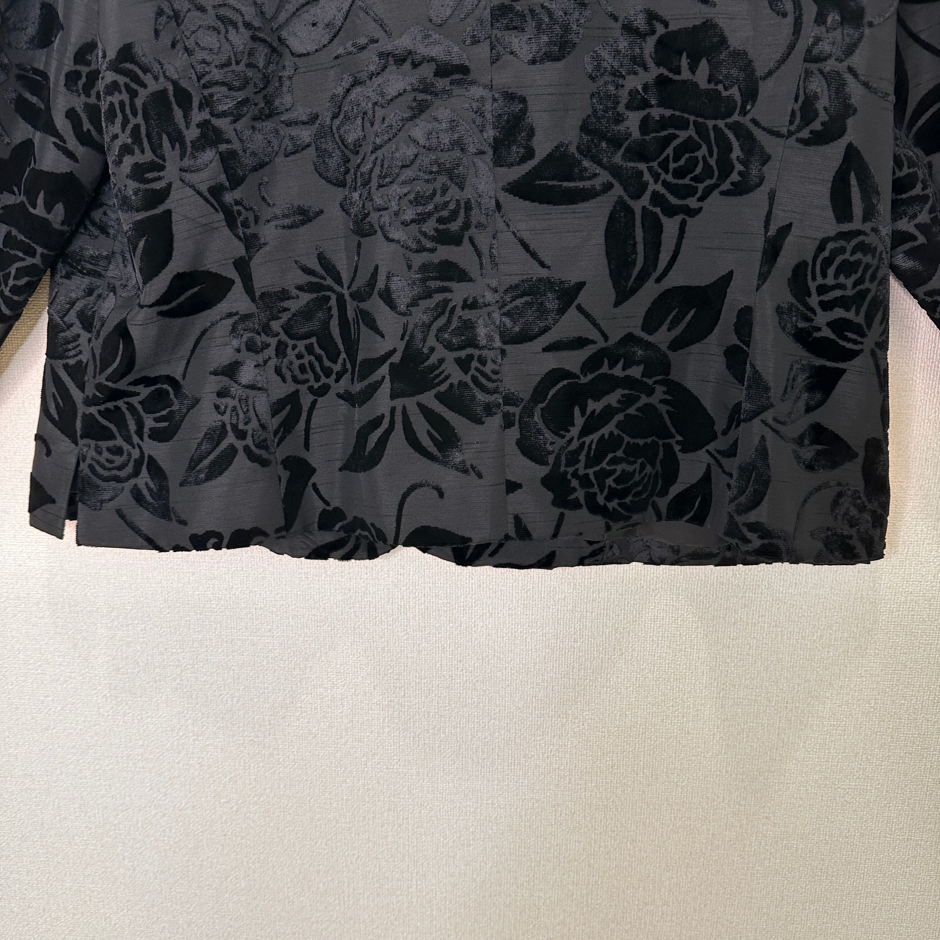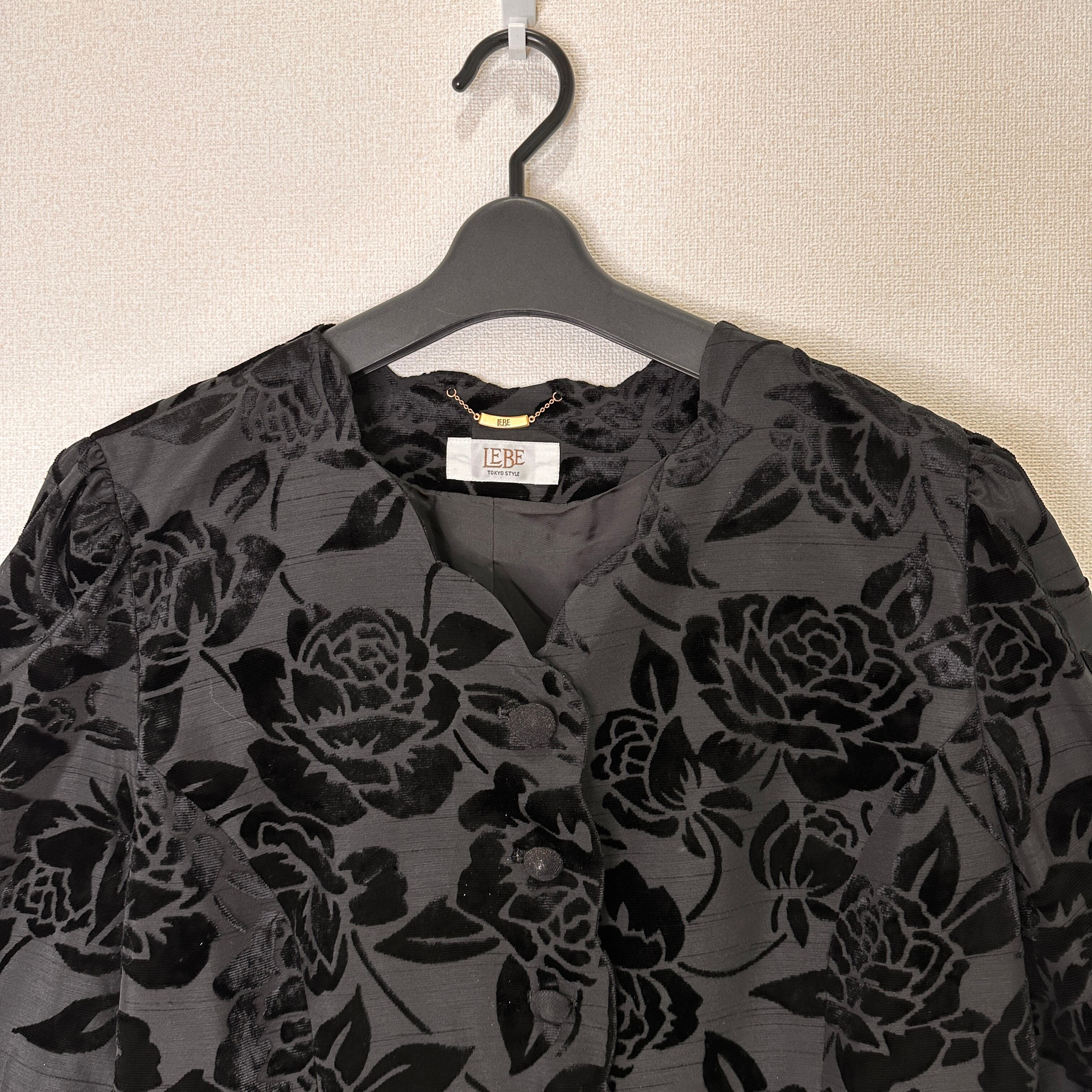 LEBE TOKYO STYLE ルベー ベロア 薔薇柄 ノーカラージャケット 19号 (3L/4L相当)