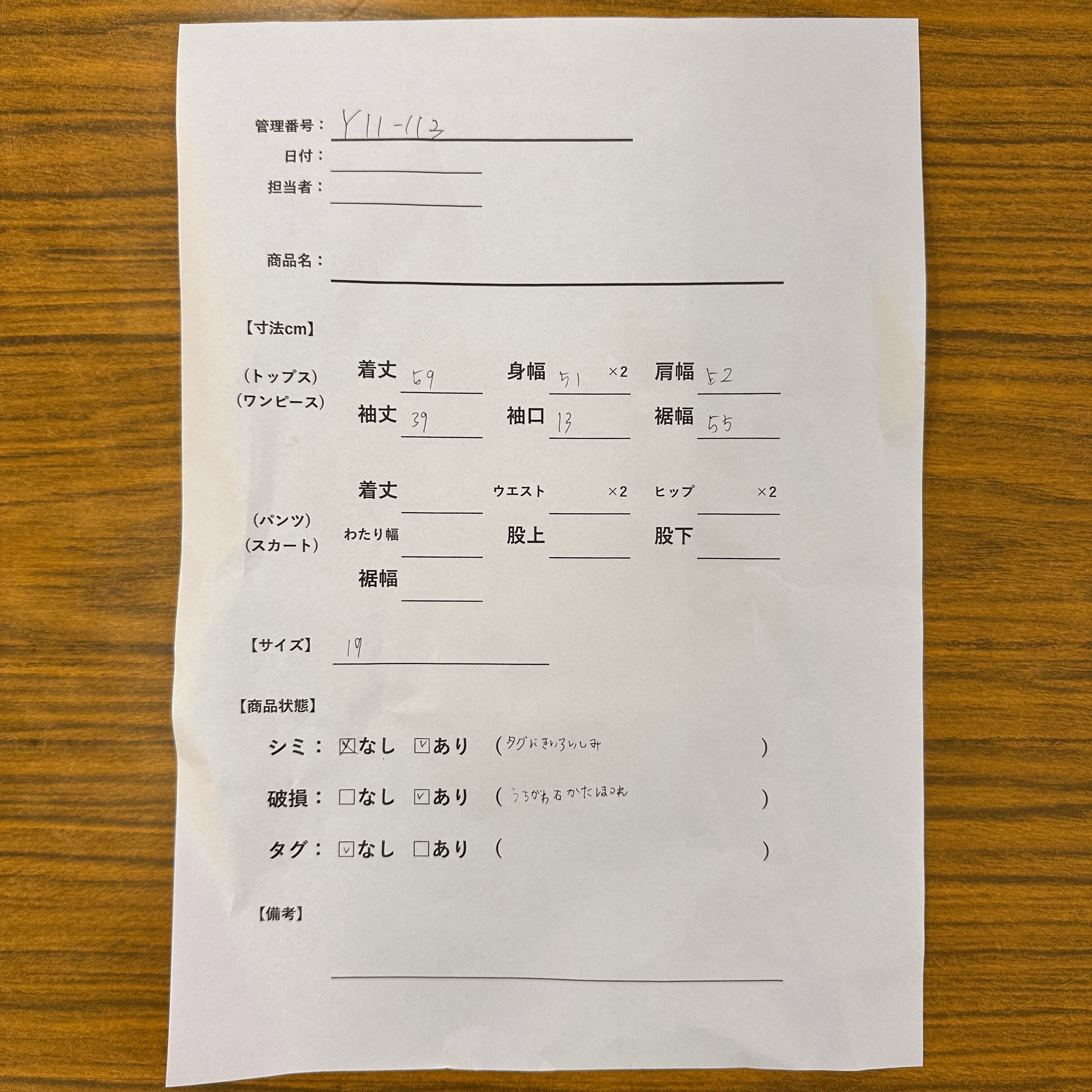 管理番号:Y11-113#てまいらずアパレル商品一覧