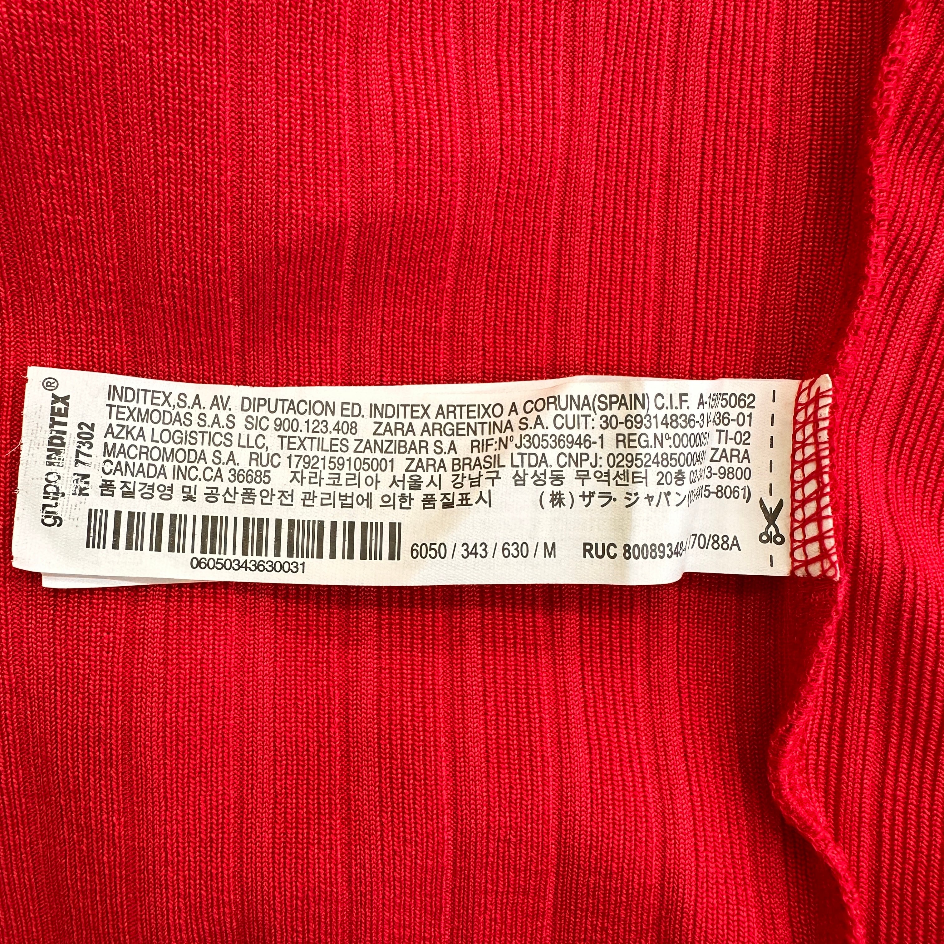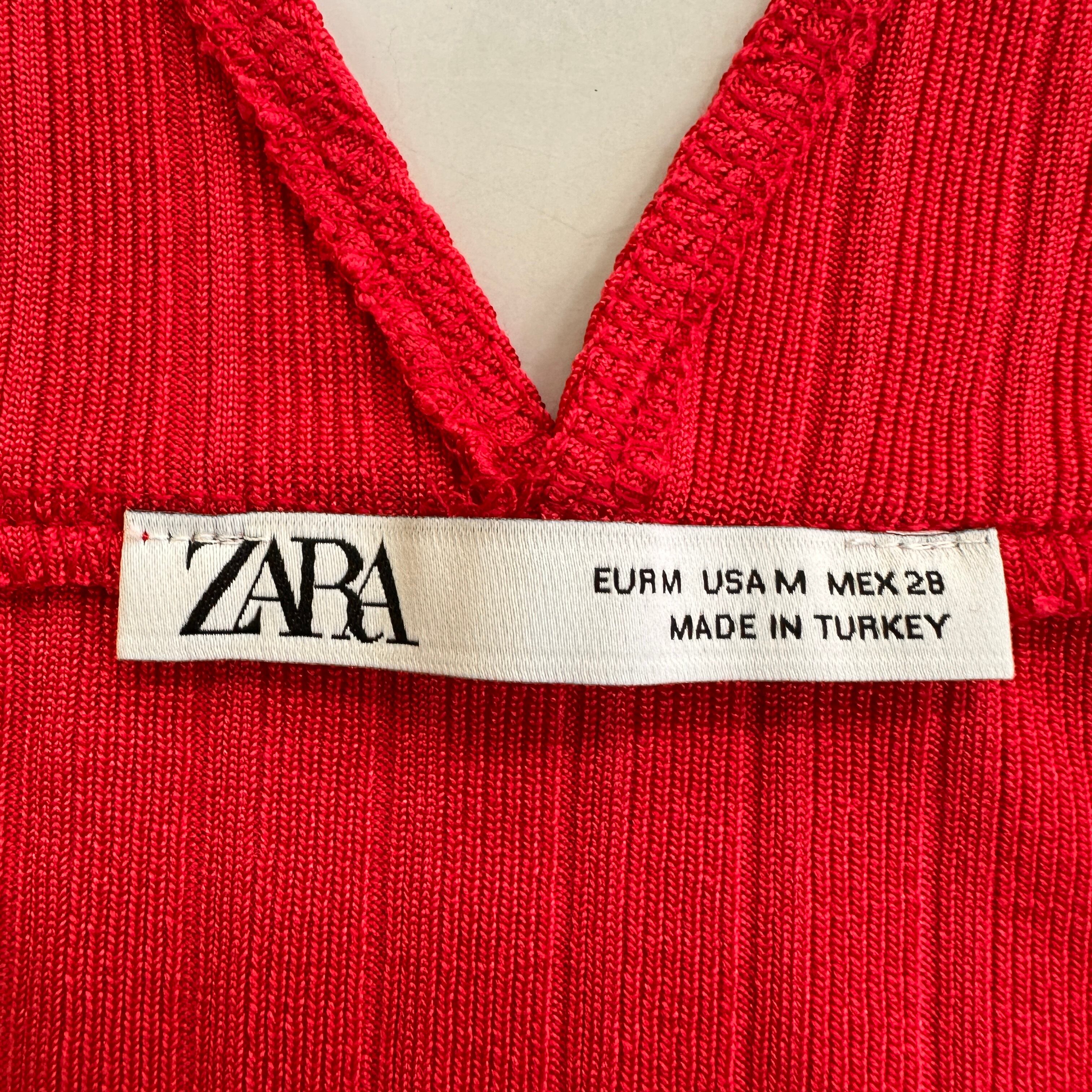 ZARA ザラ Vネック クロップド丈 リブニット トップス レッド ZARA / サイズ : M