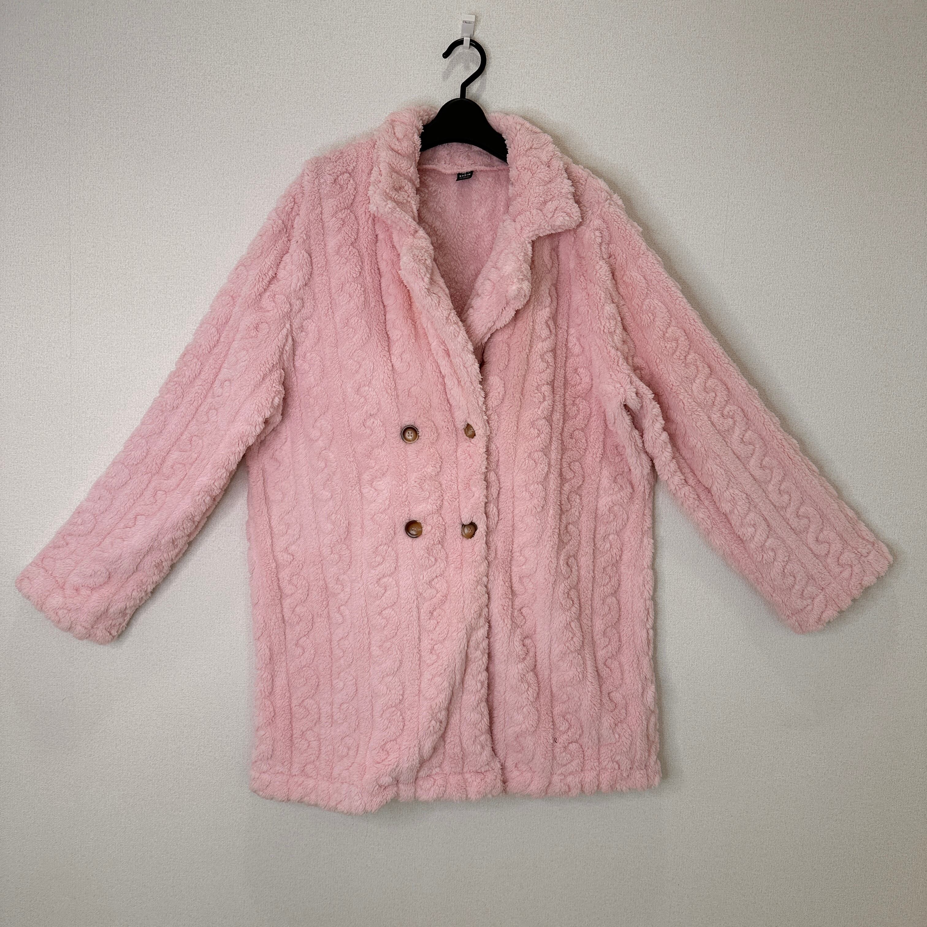 SHEIN シーイン ピンク ボア もこもこ ケーブル編み風 ダブルボタン コート/アウター XL