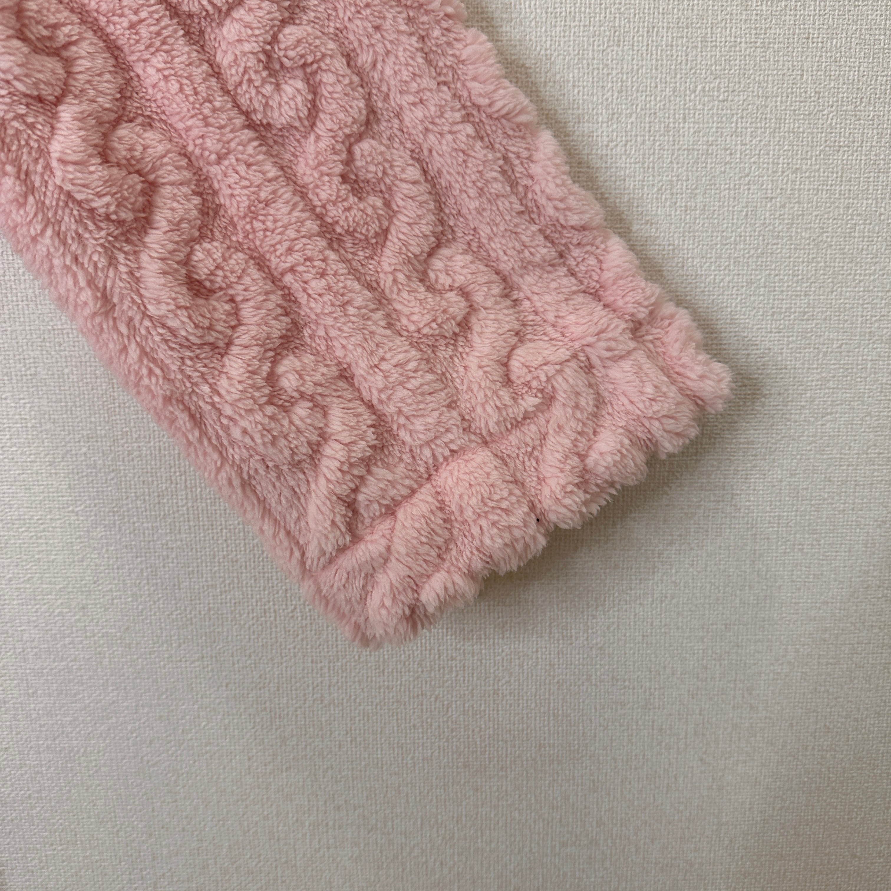 表面にケーブル編みのような凹凸があり、見た目にも暖かいデザインです。