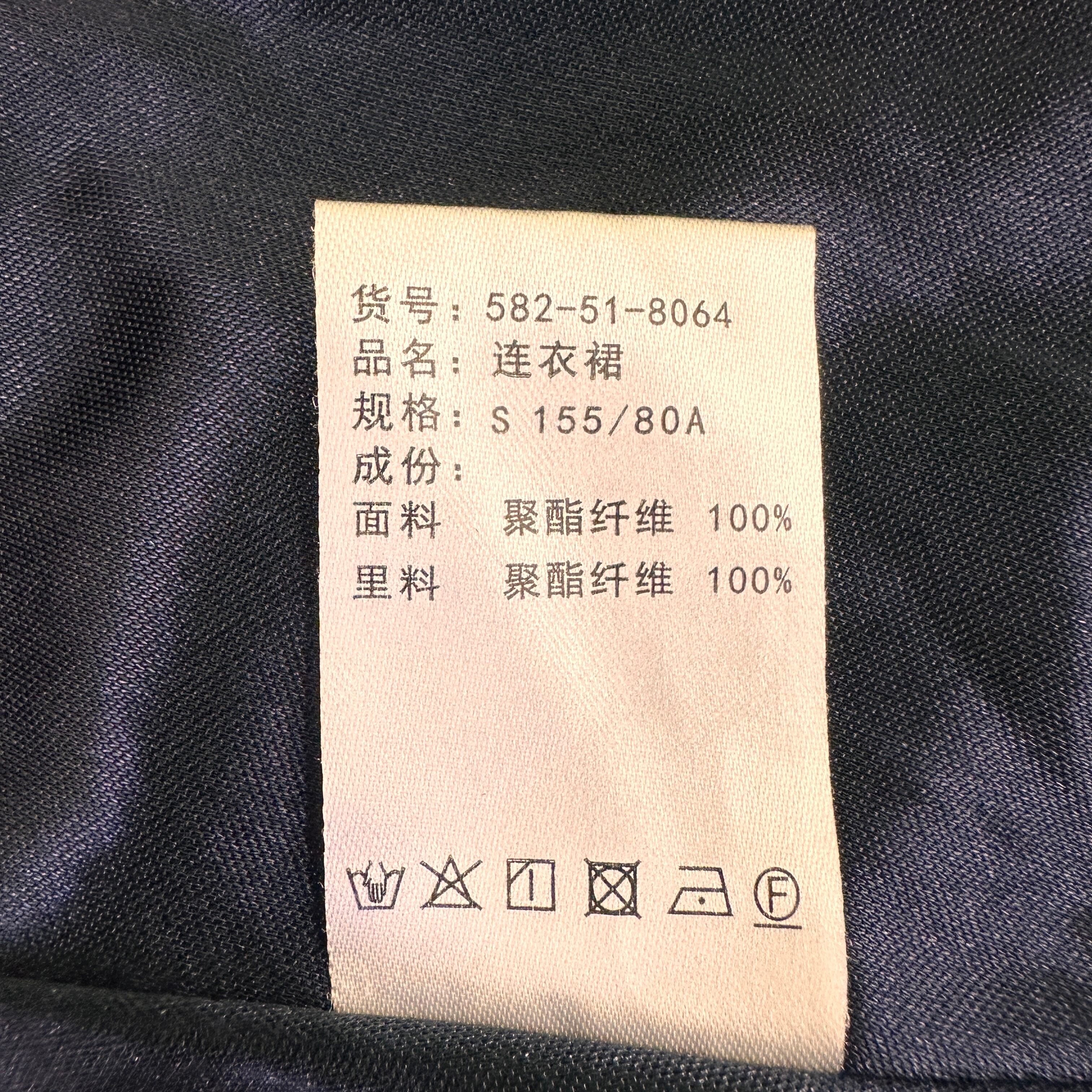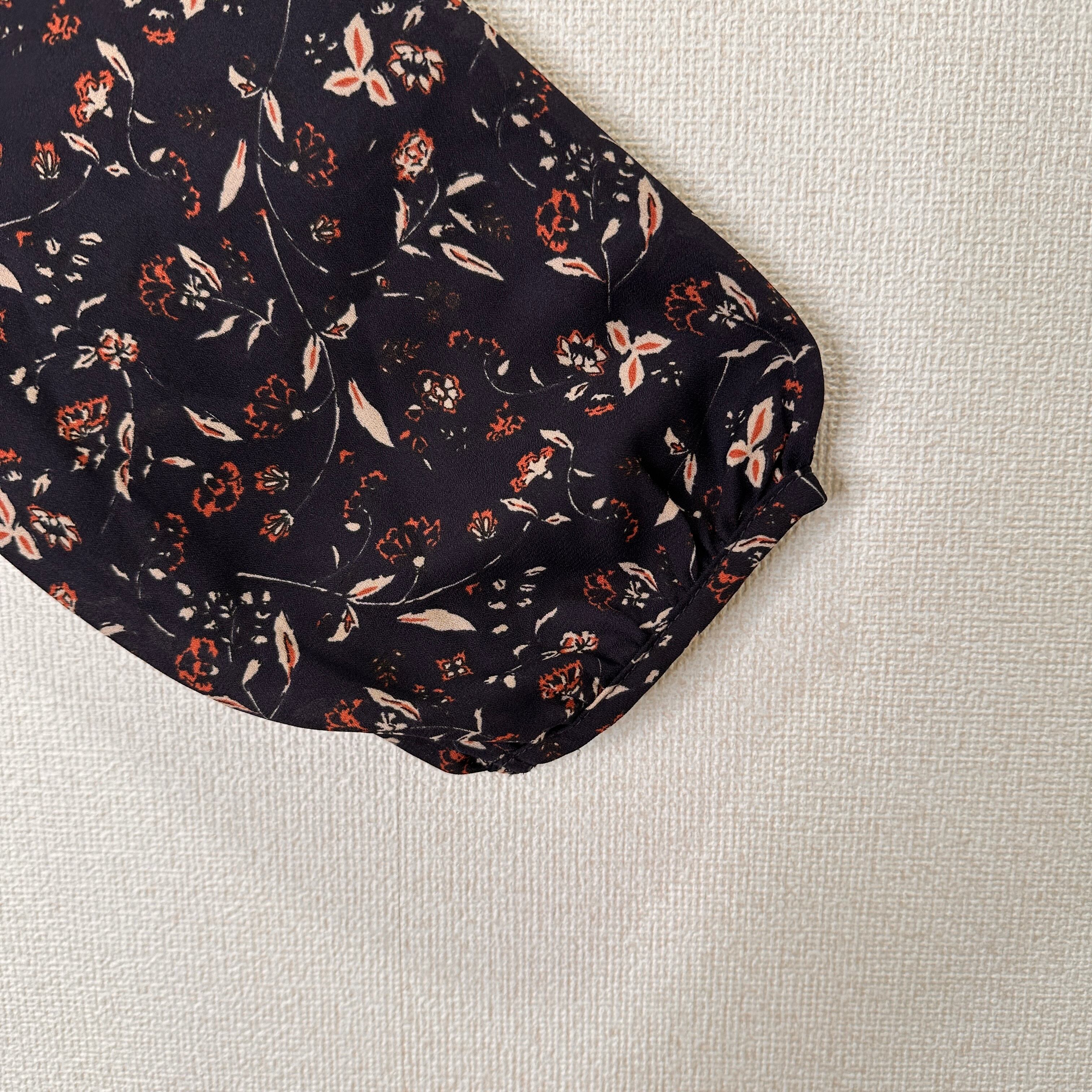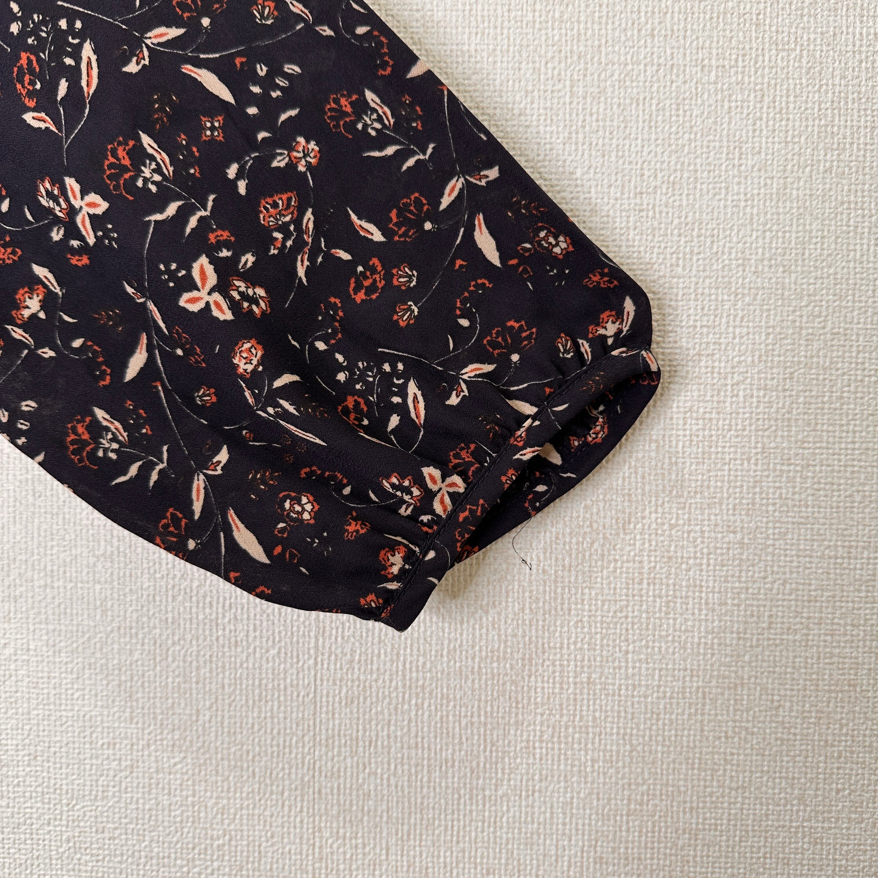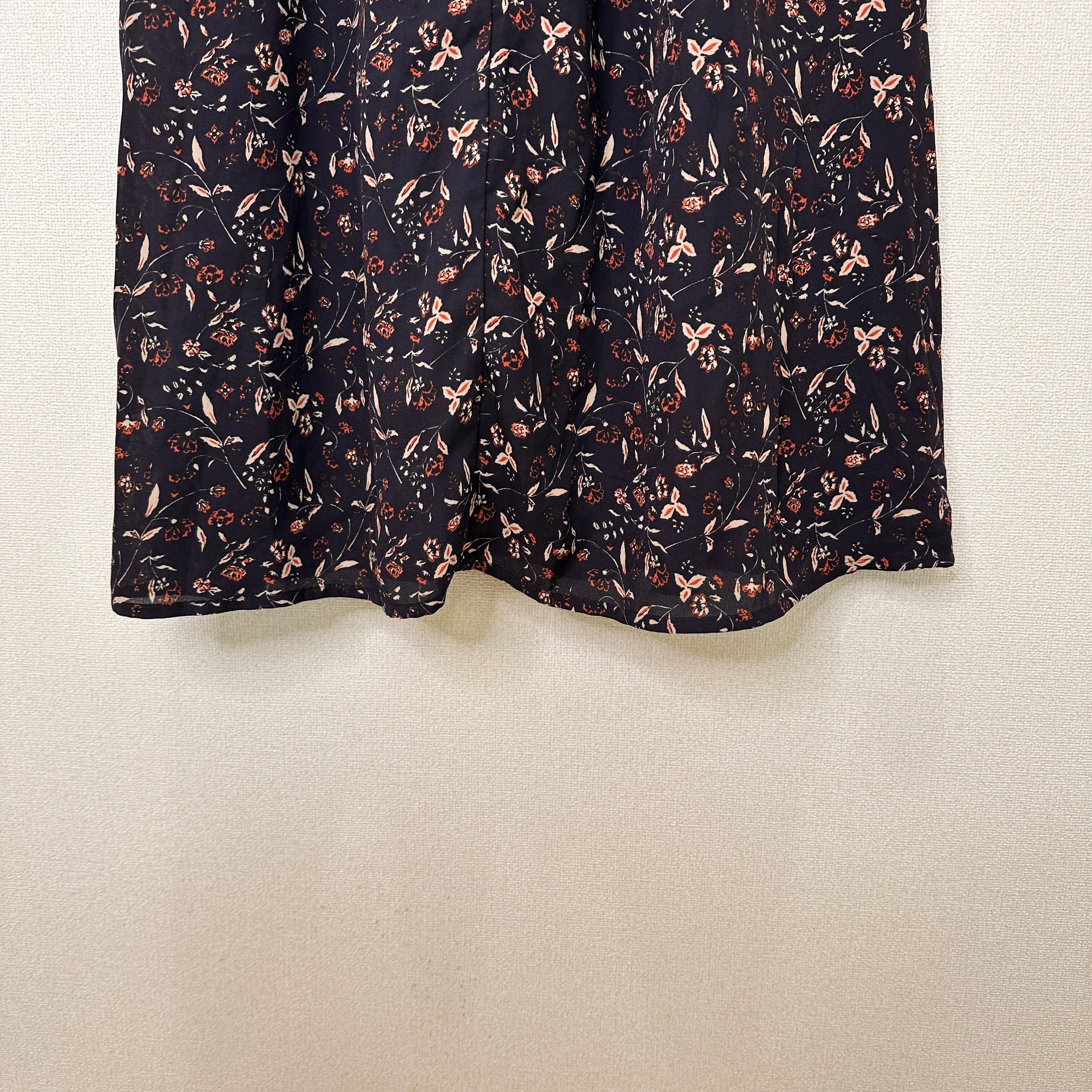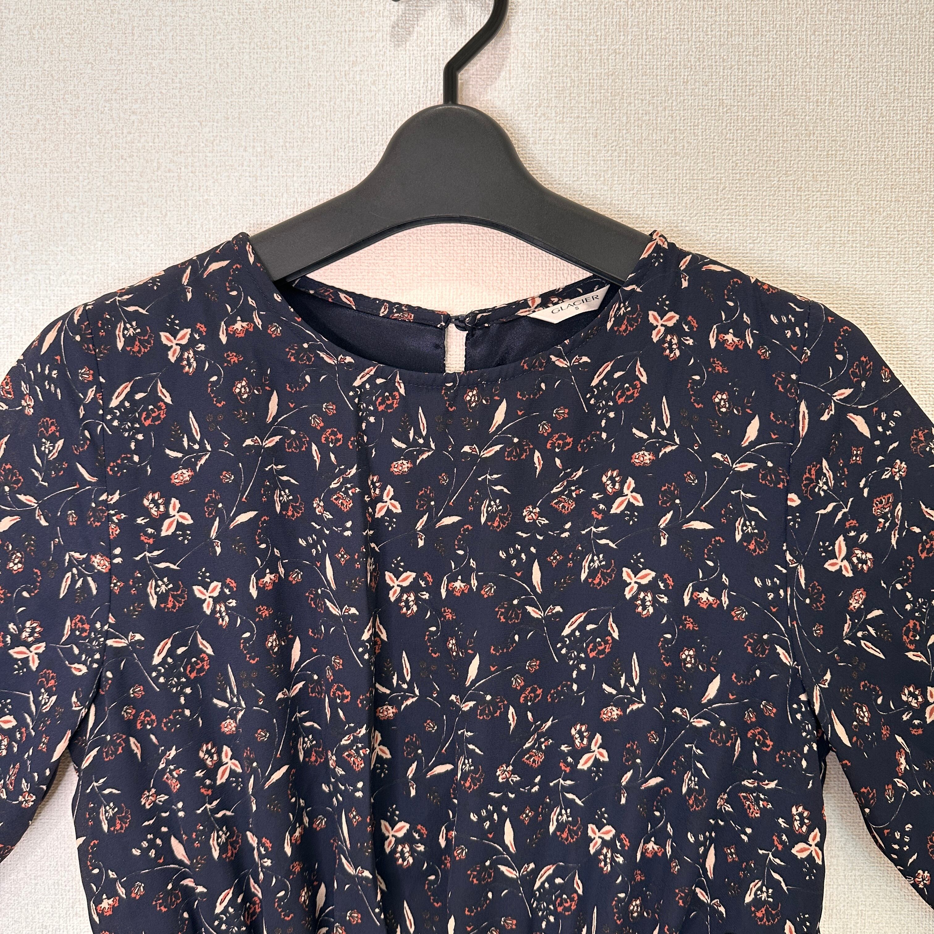ネイビーの花柄デザイン、長袖のSサイズワンピース。