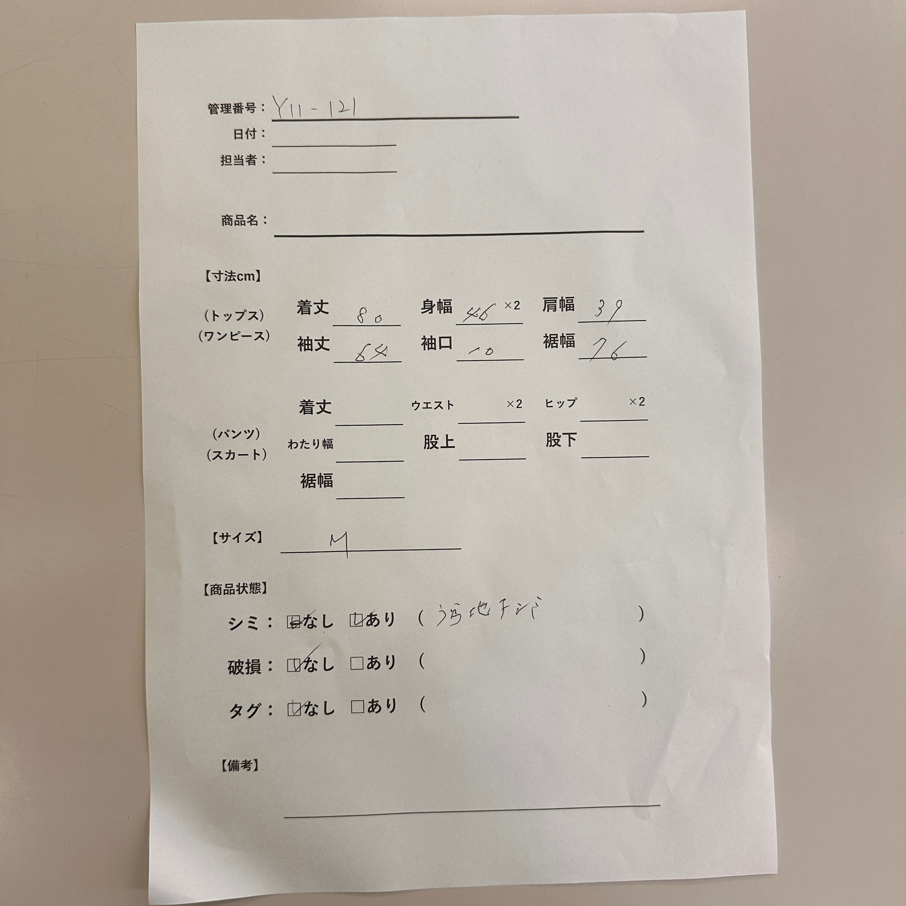 管理番号:Y11-121#てまいらずアパレル商品一覧