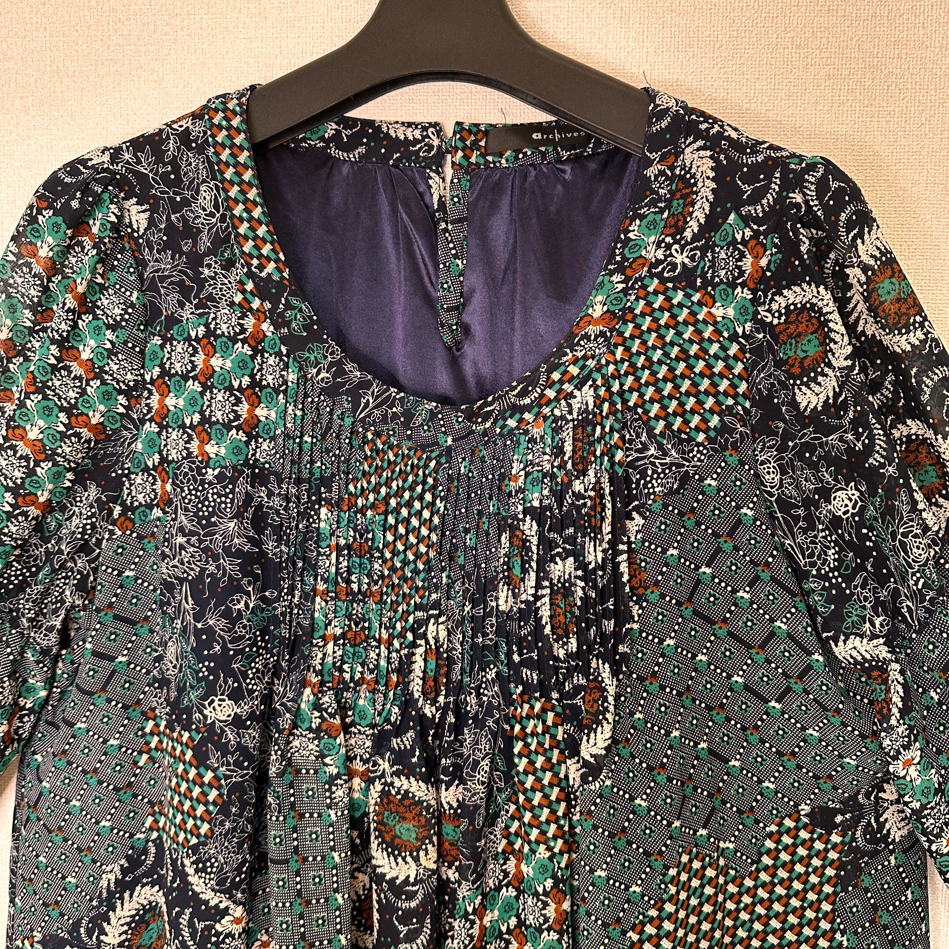 archives アルシーヴ 花柄/パッチワーク柄 チュニックブラウス Mサイズ