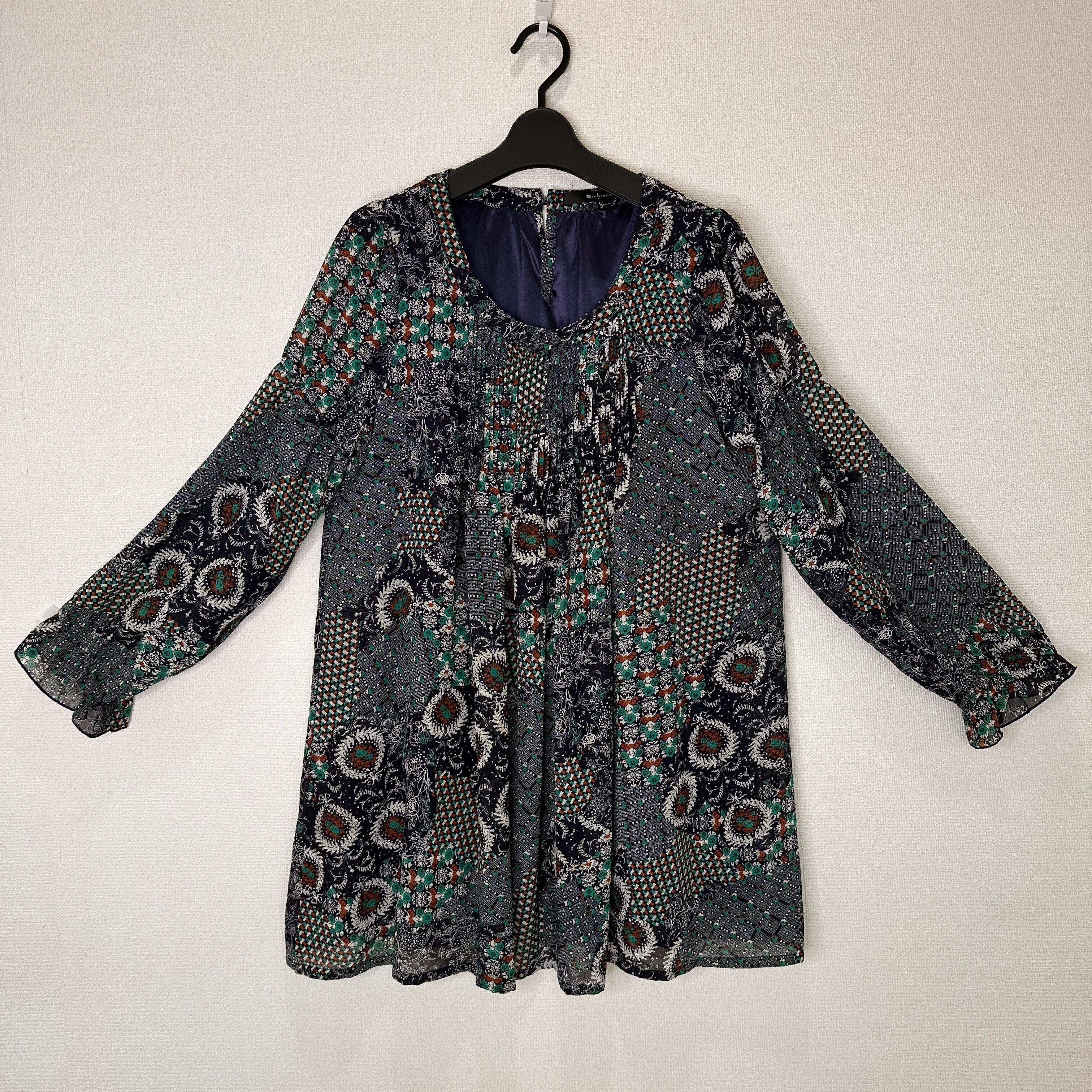archives アルシーヴ 花柄/パッチワーク柄 チュニック ブラウス Mサイズ