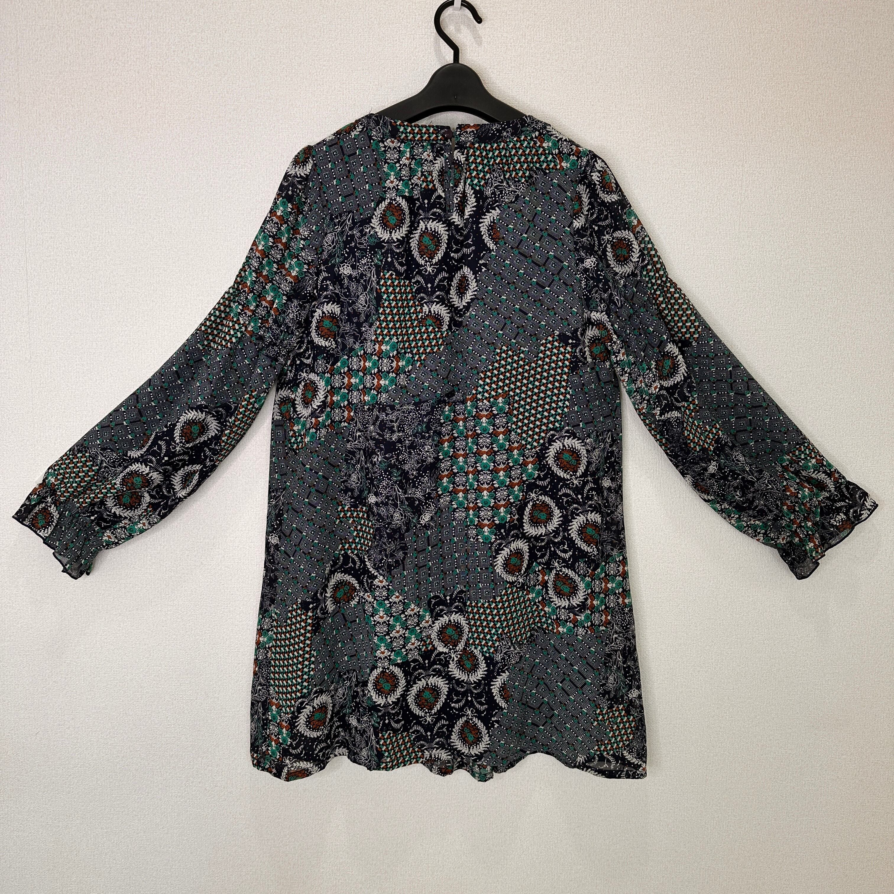 目立った傷や汚れはありませんが、中古品にご理解いただける方のみご購入をお願いいたします。多色のパターンが特徴的な長袖チュニック。