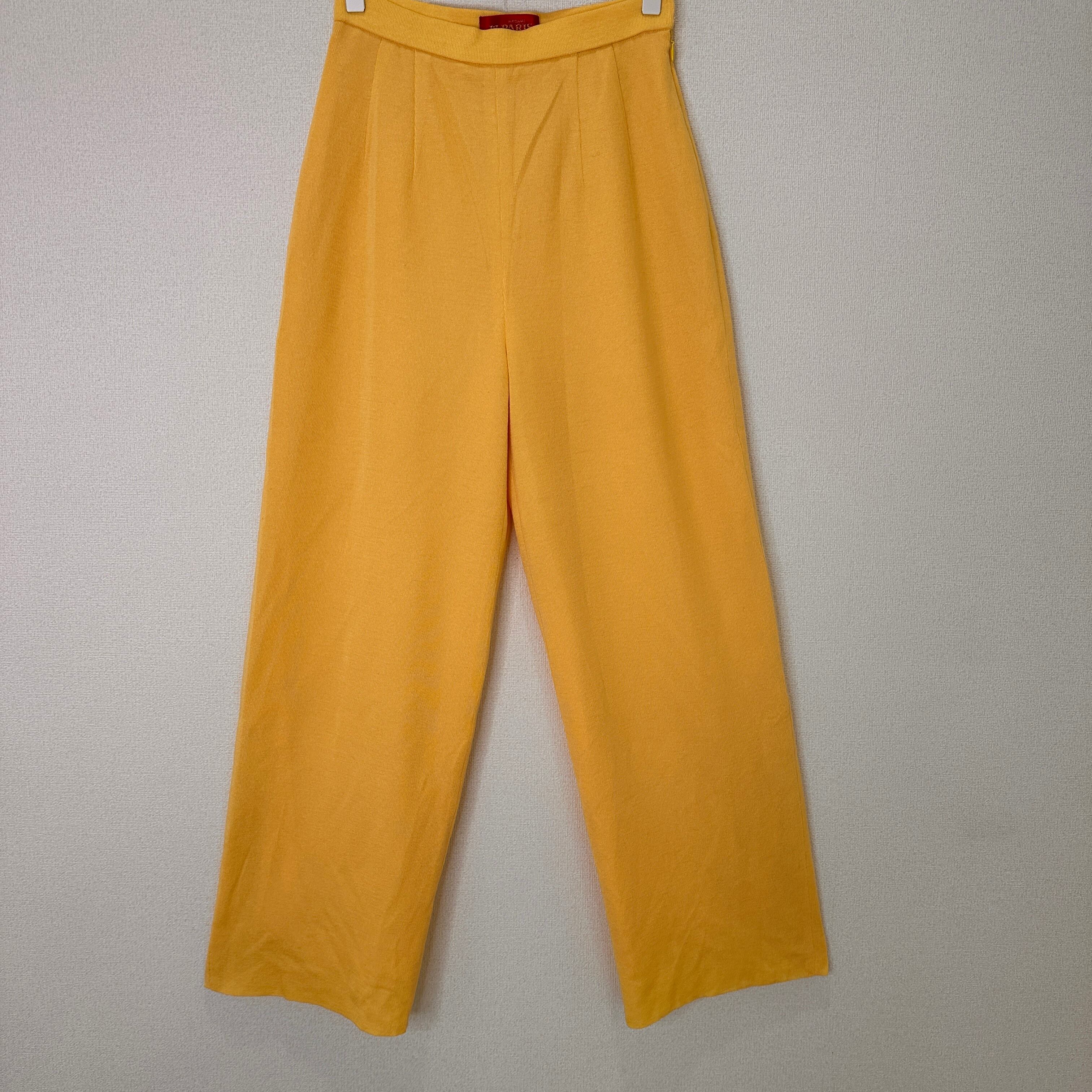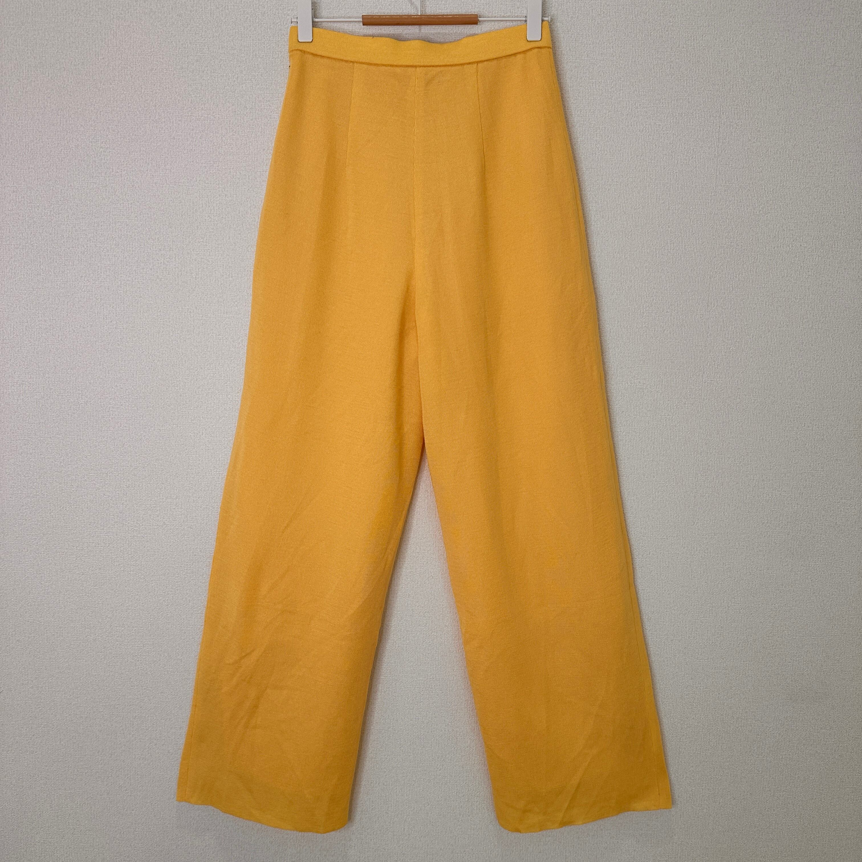 目立った傷や汚れはありませんが、中古品にご理解いただける方のみご購入をお願いいたします。イエローのワイドパンツ、スタイリッシュなデザインで、カジュアルからフォーマルまで幅広く活躍します。