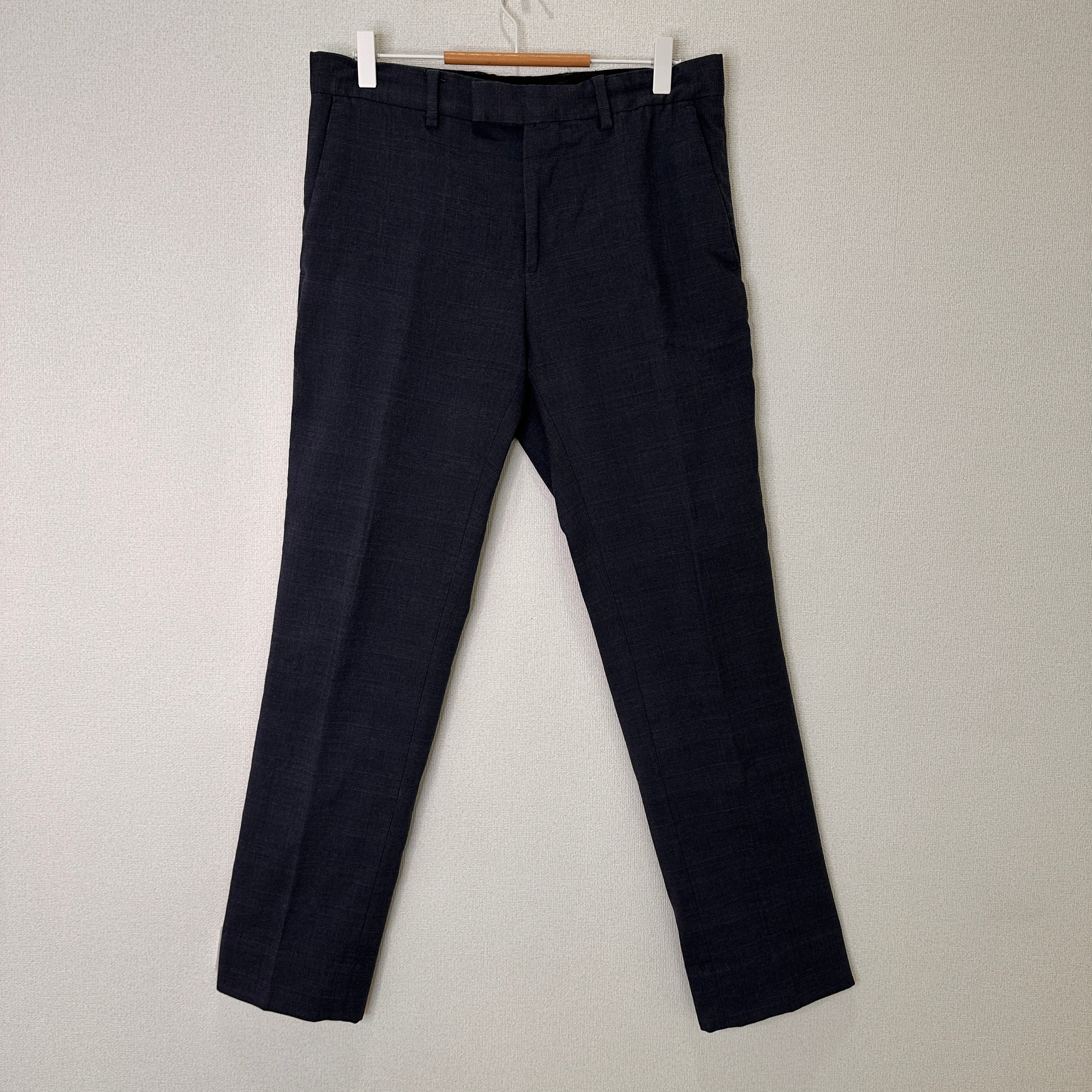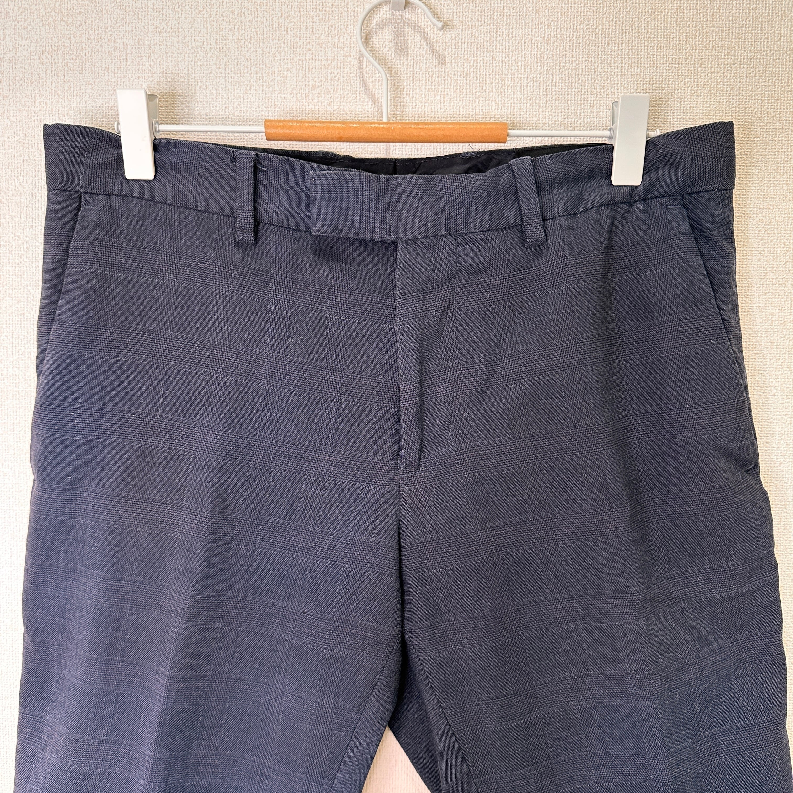 目立った傷や汚れはありませんが、中古品にご理解いただける方のみご購入をお願いいたします。ダークグレーのスリムフィットスラックス、28×32サイズ。