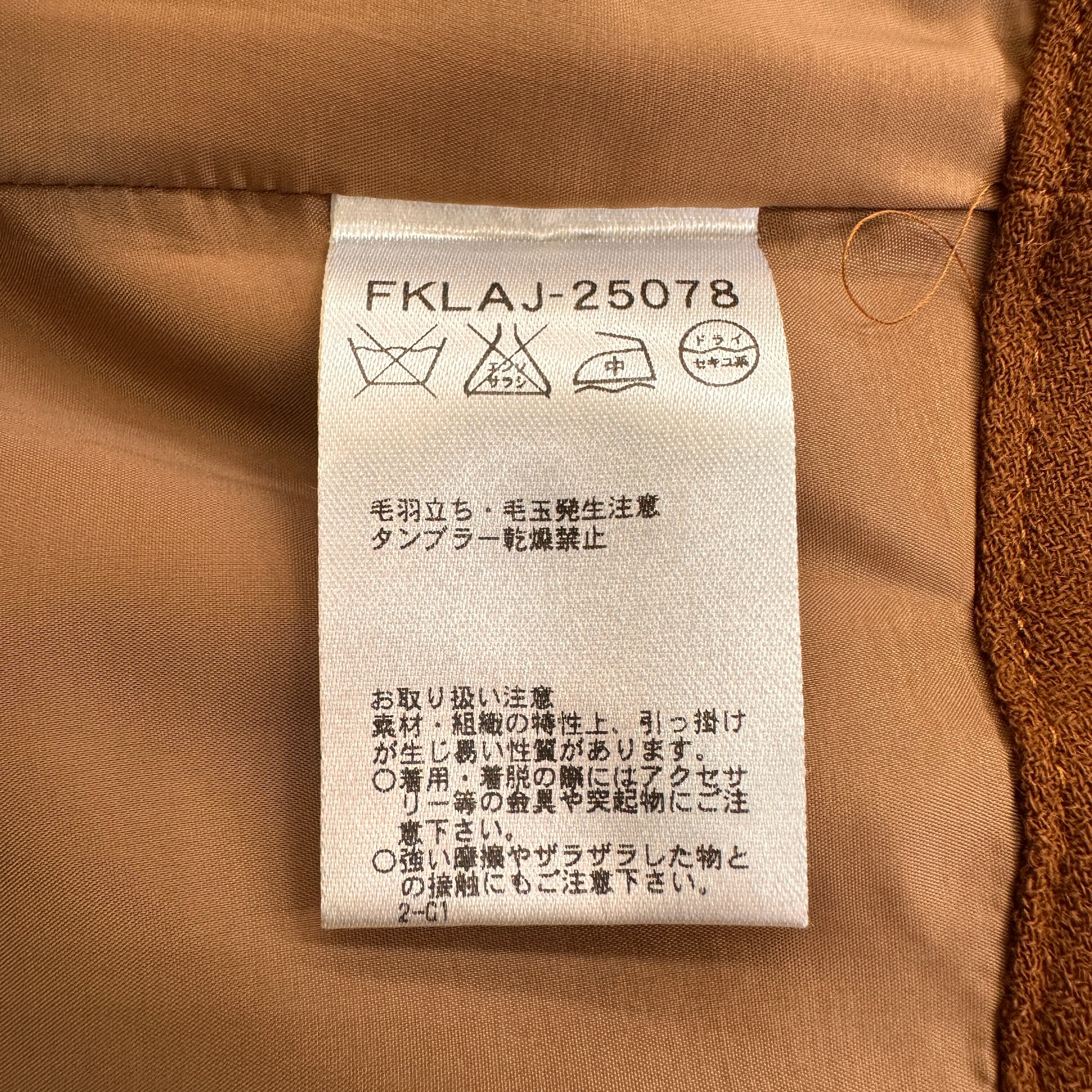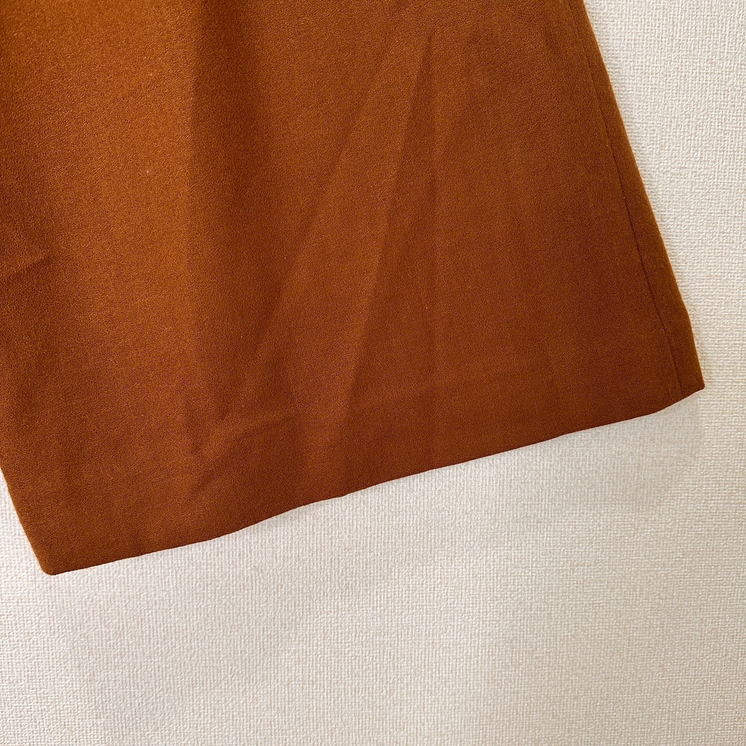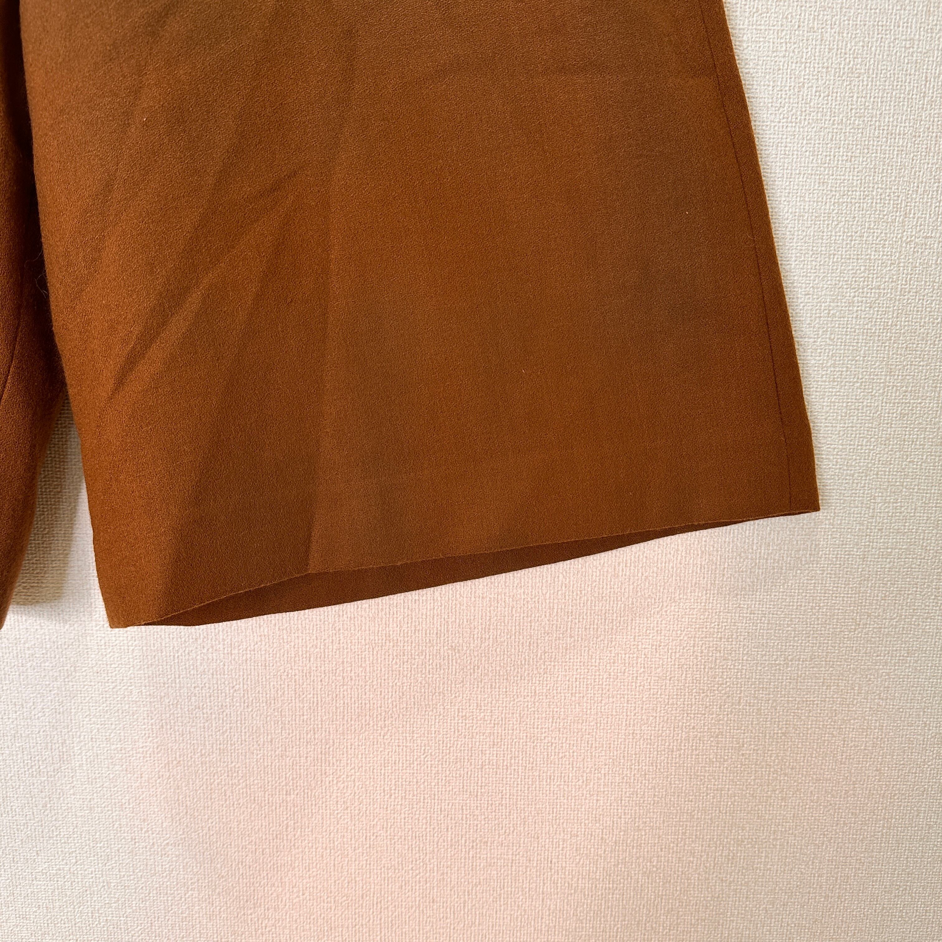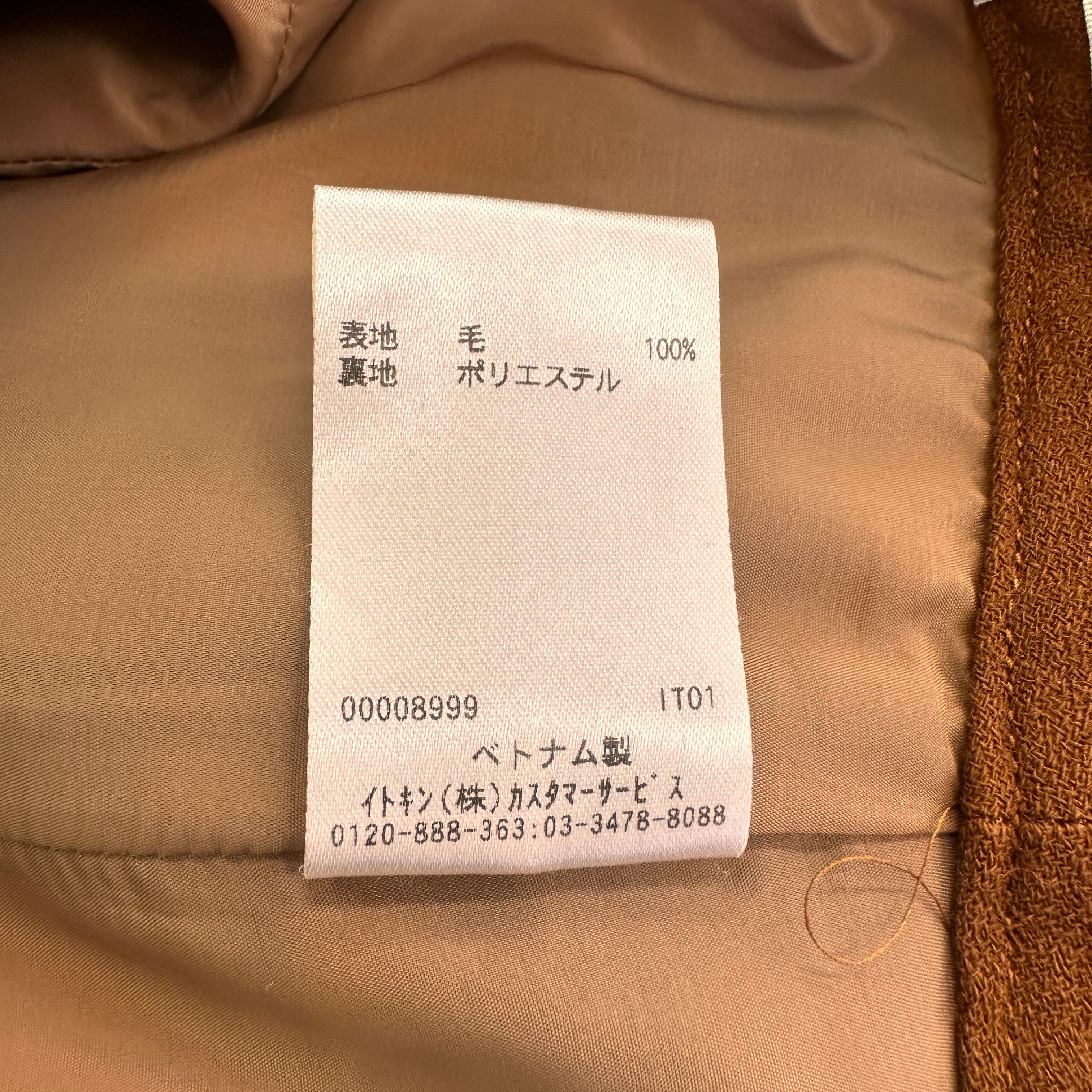 落ち着いたレンガ色のようなブラウン系カラーで、素材は表地がウール100%のため、あたたかく秋冬に最適です。