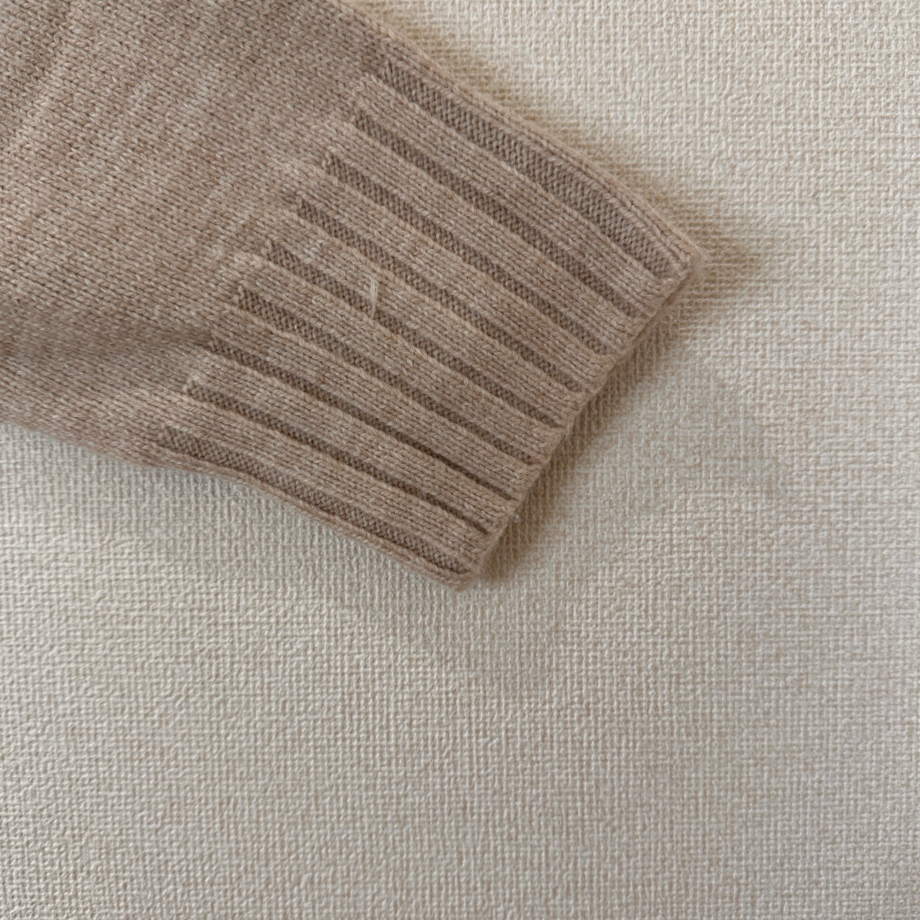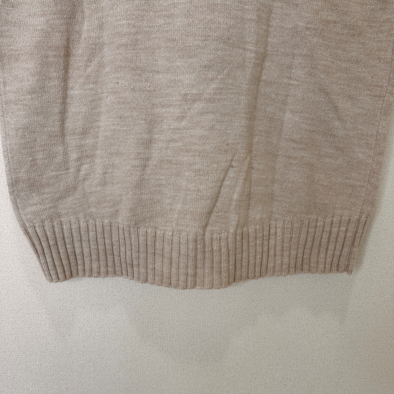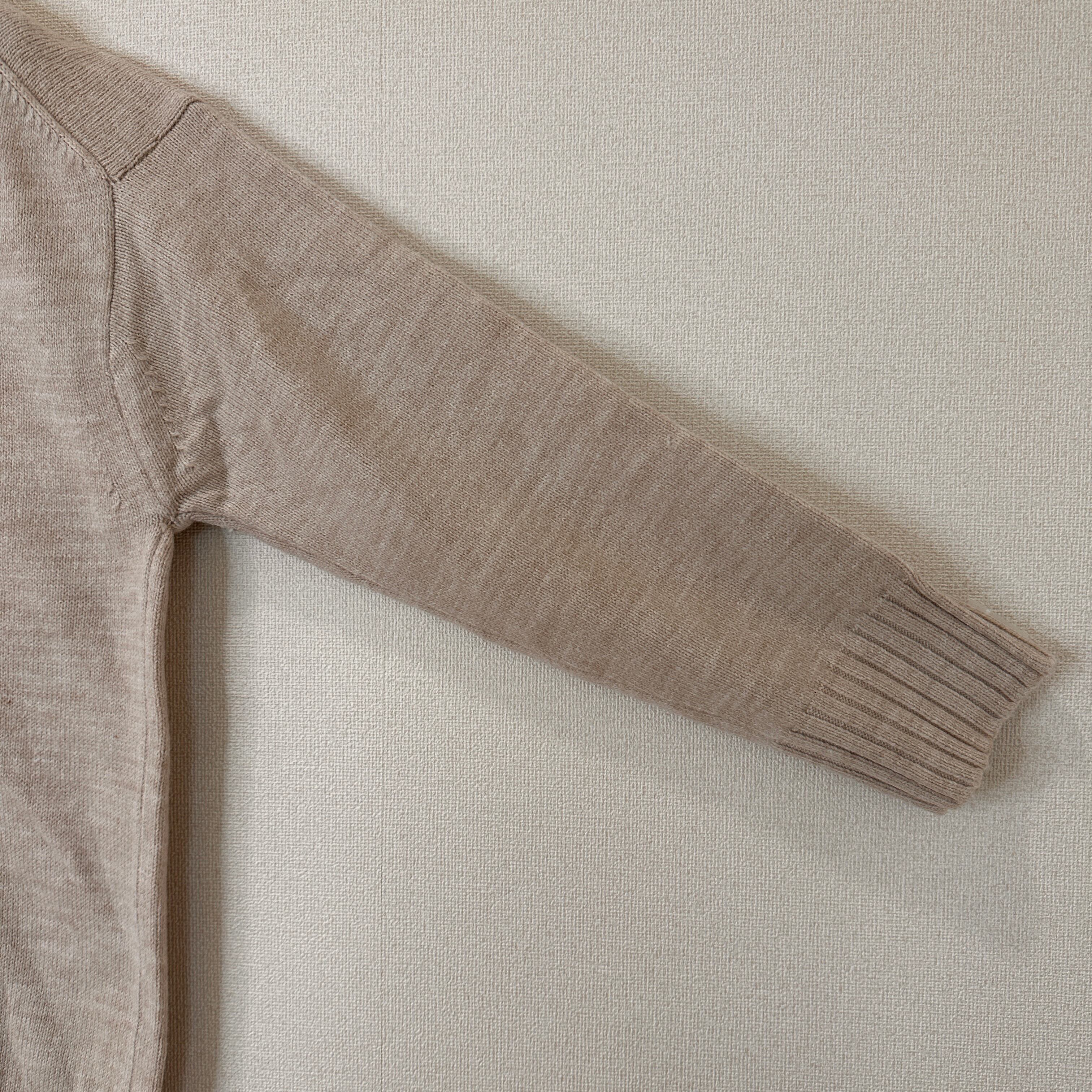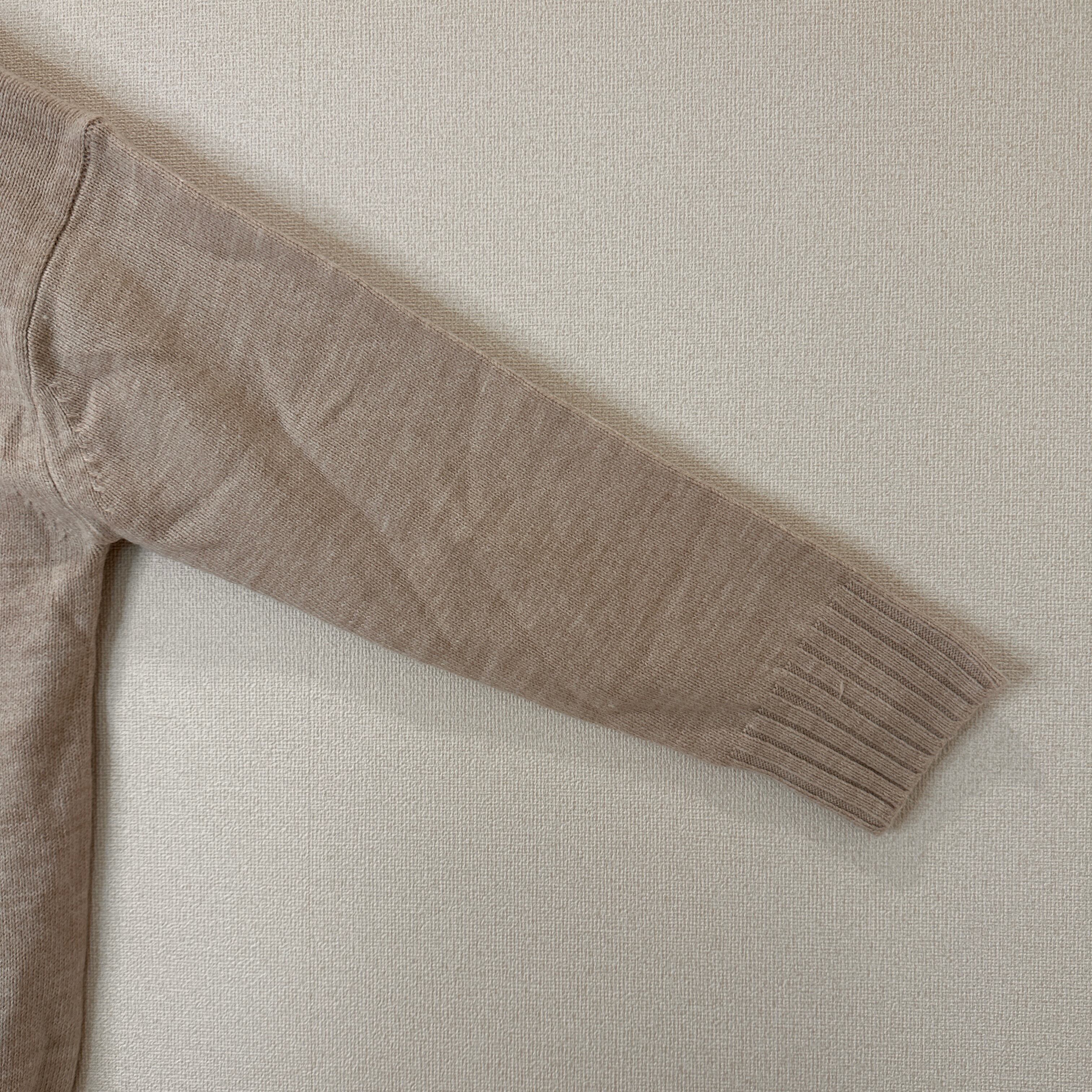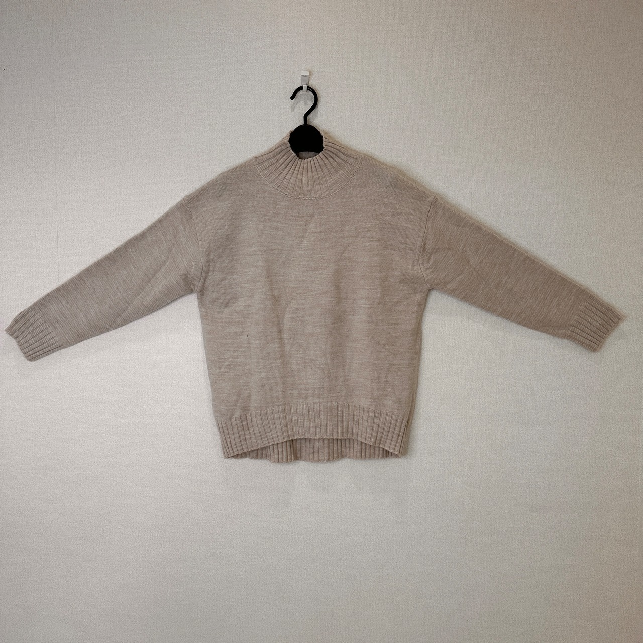 目立った傷や汚れはありませんが、中古品にご理解いただける方のみご購入をお願いいたします。ベージュのハイネックニット、アクリル93%使用で快適な着心地。