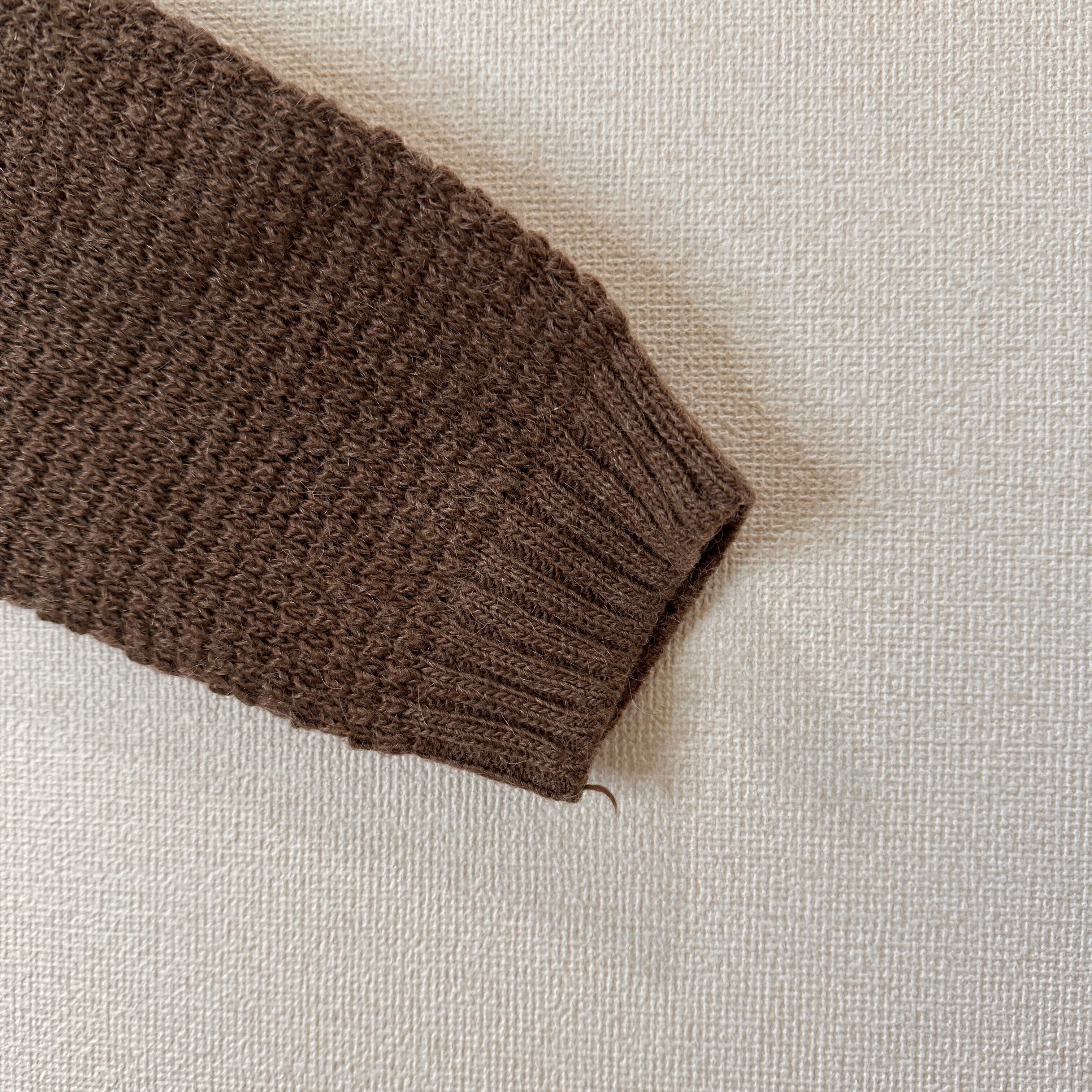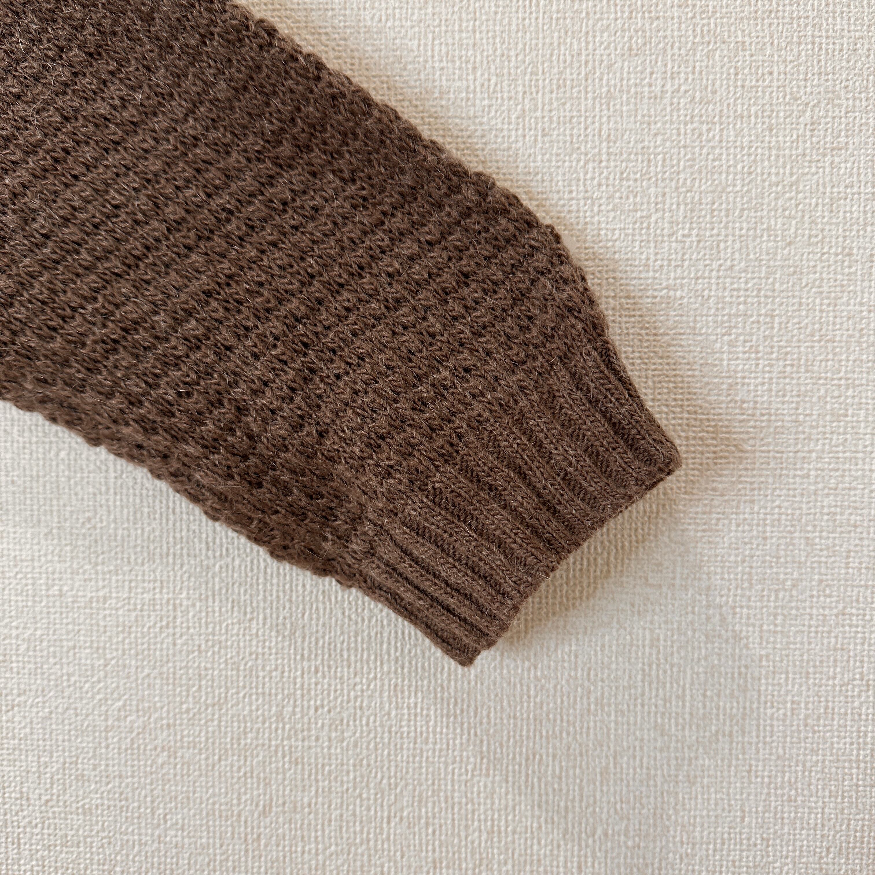 モヘヤと毛(ウール)がブレンドされており、ふんわりとした起毛感のある暖かな素材が特徴です。