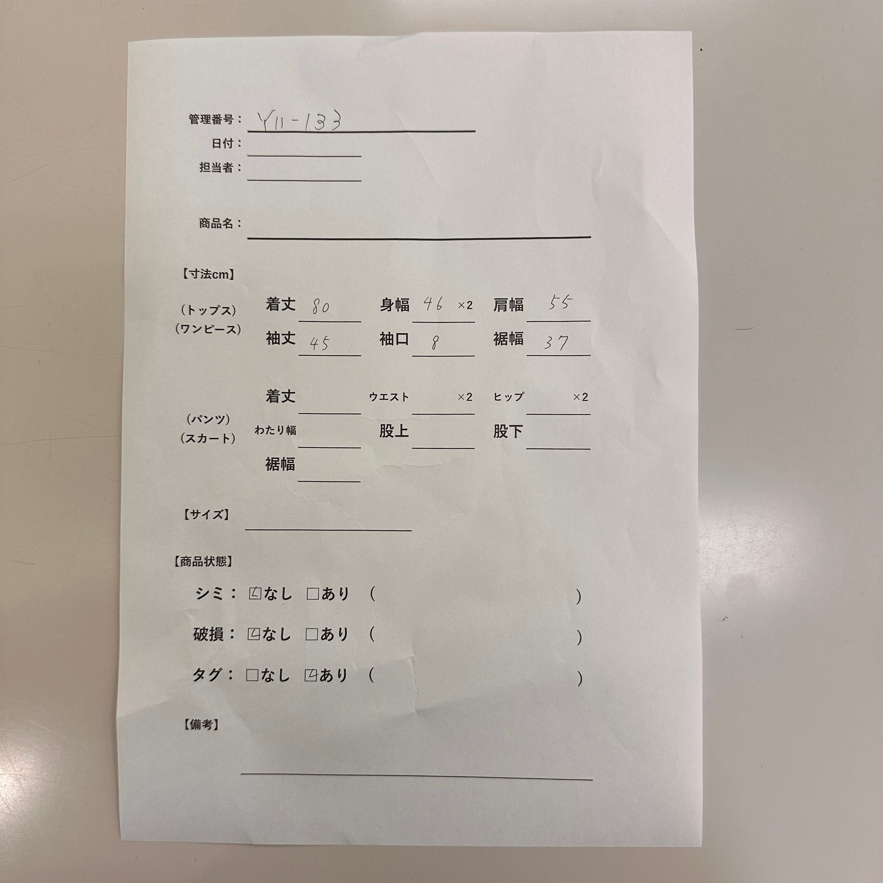 管理番号:Y11-133#てまいらずアパレル商品一覧