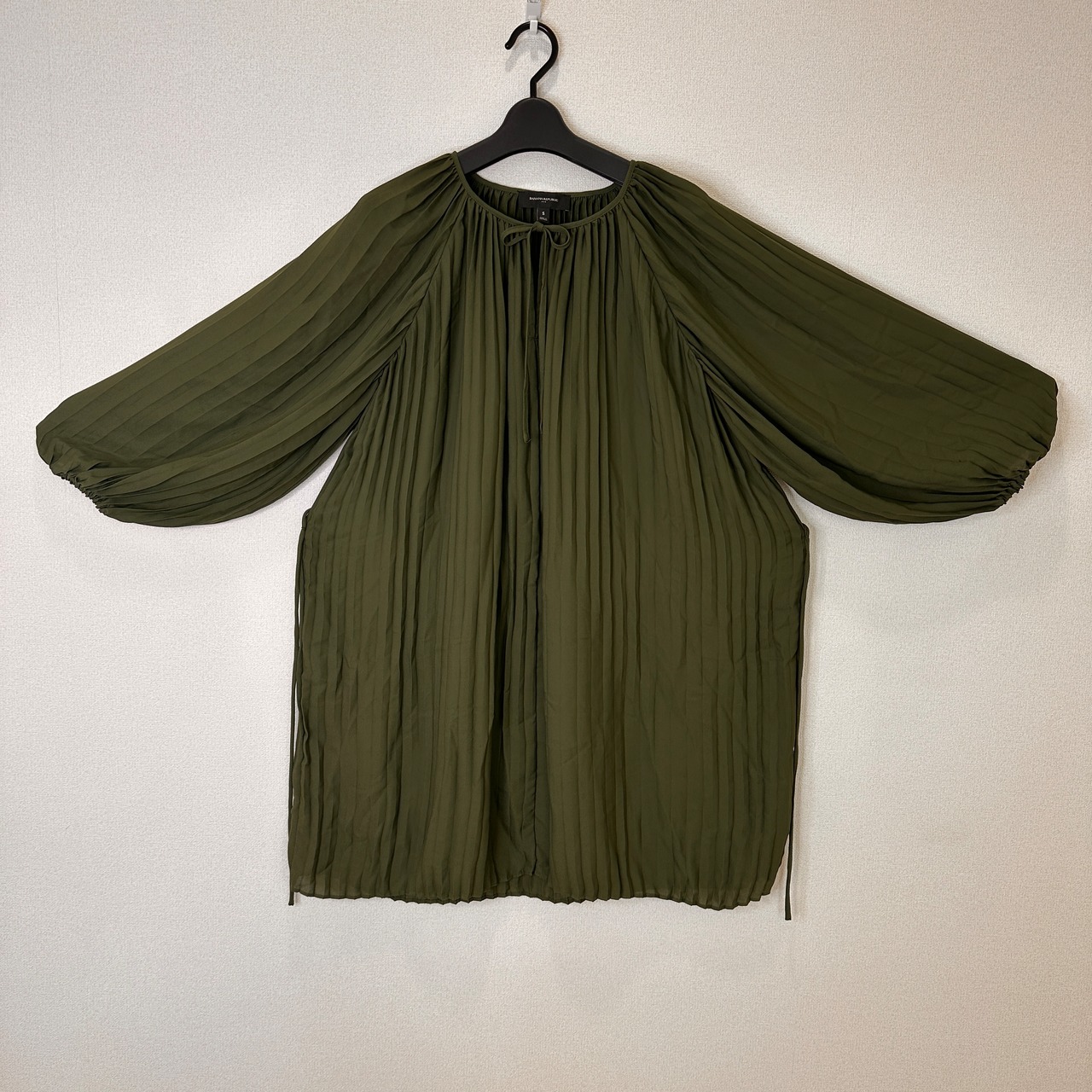 目立った傷や汚れはありませんが、中古品にご理解いただける方のみご購入をお願いいたします。オリーブグリーンのプリーツデザインのチュニック、Sサイズ。