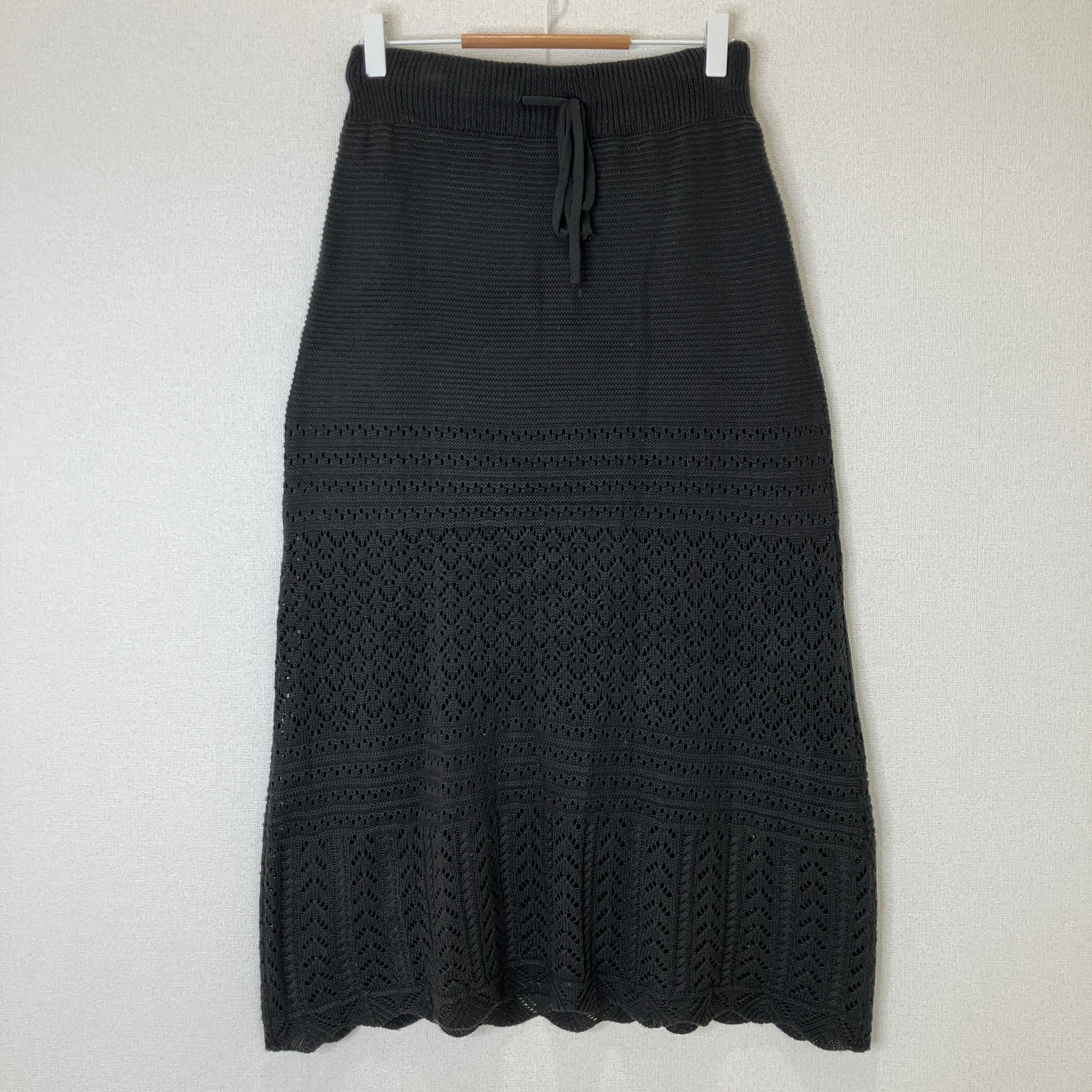 OLIVE des OLIVE 透かし編みニットロングスカート 黒 フリーサイズ OLIVE des OLIVE / サイズ : FREE SIZE