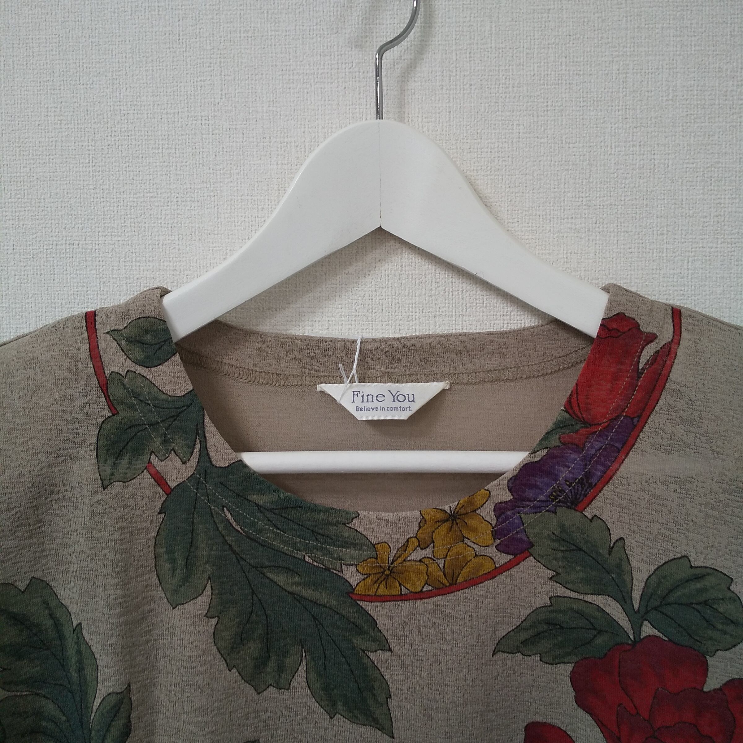【Fine YOU】大判花柄 プルオーバー ベージュ ポリエステル100%
