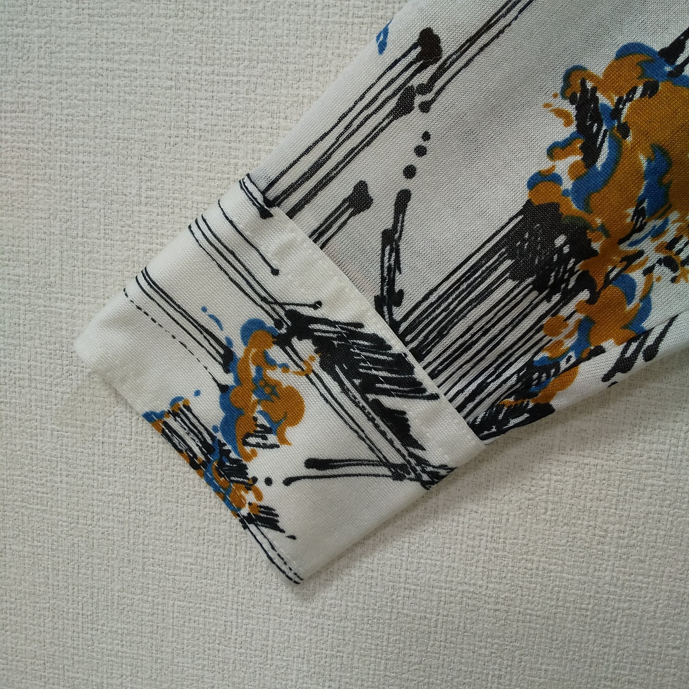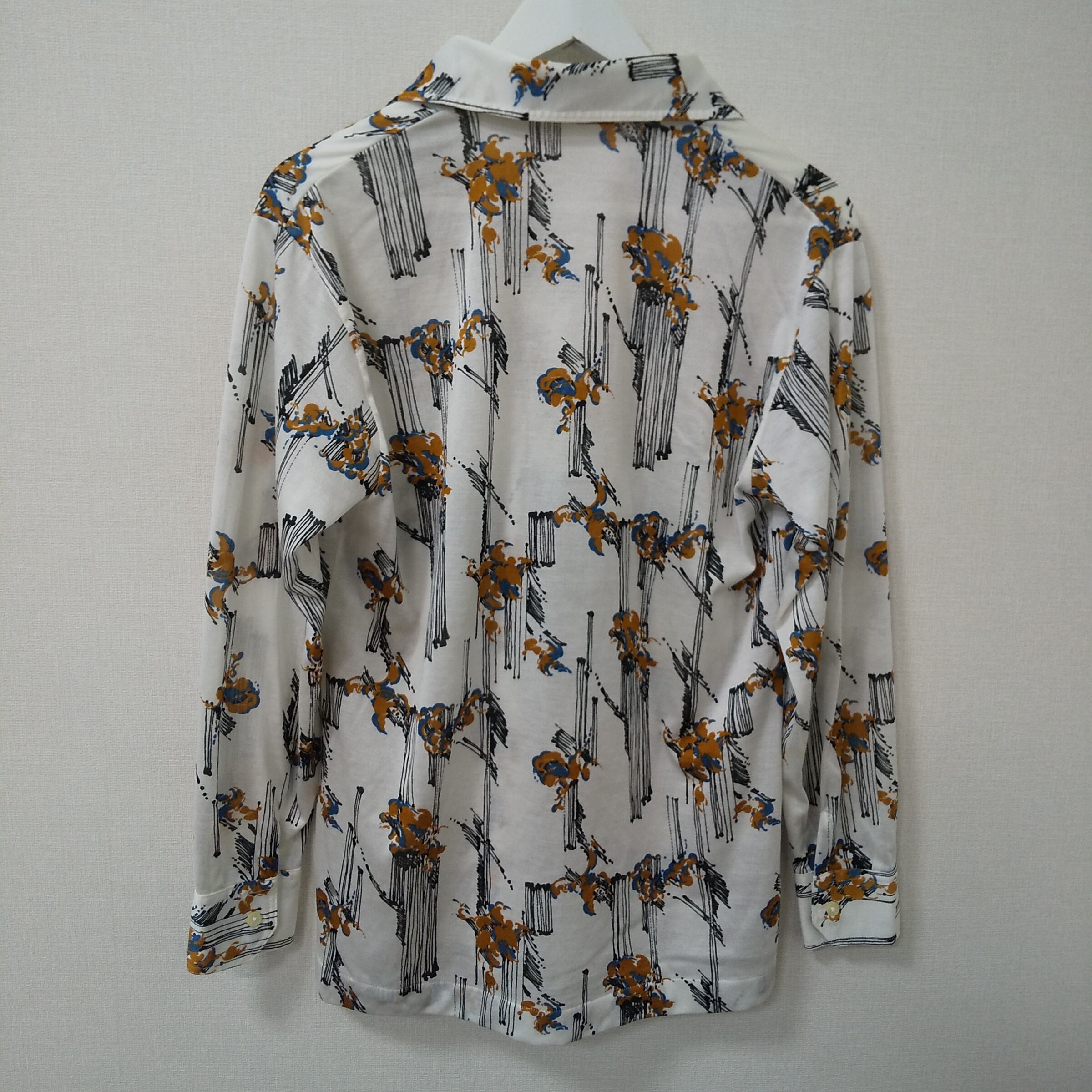 迅速かつ丁寧に対応させていただきます。花柄とストライプのデザインが特徴的な長袖シャツ。