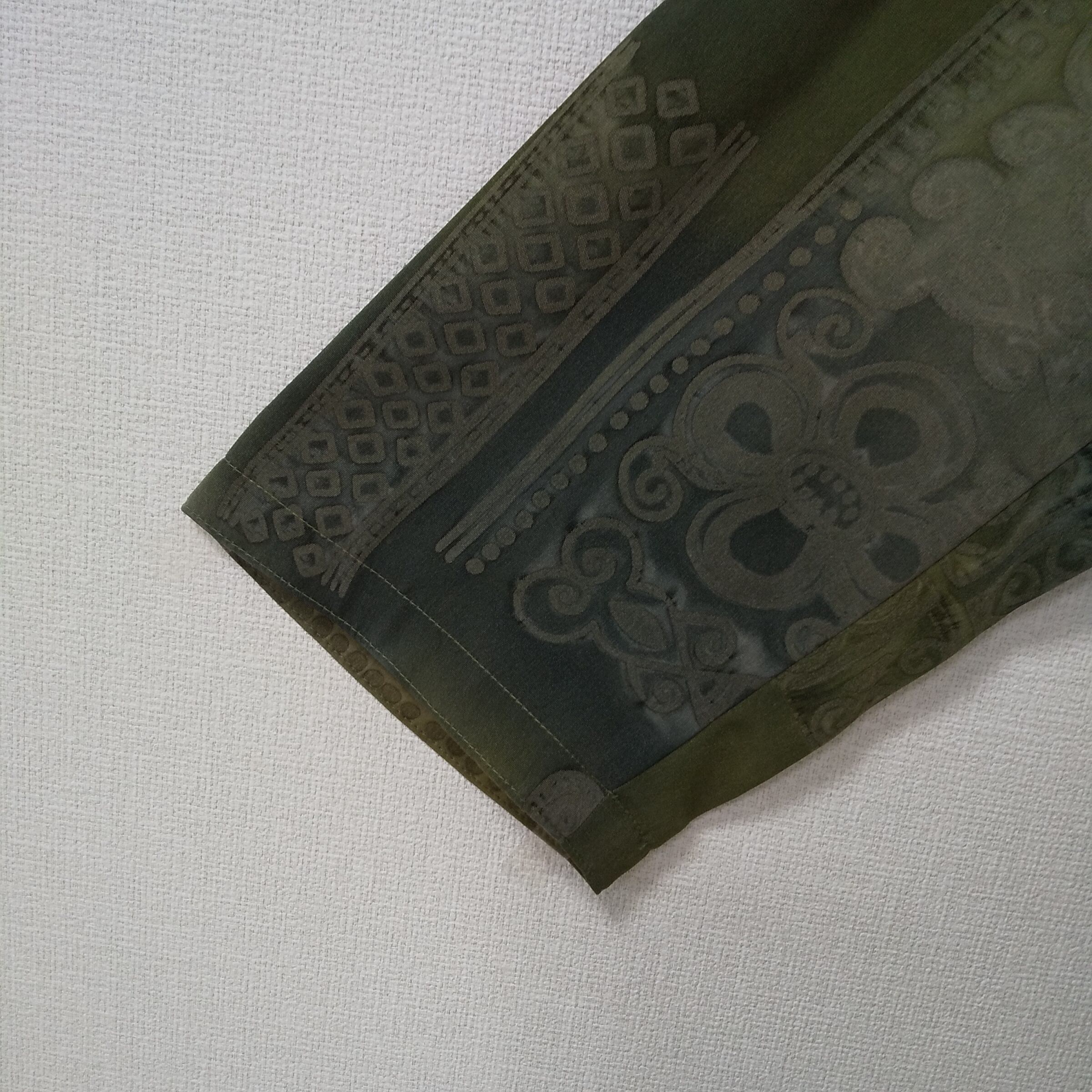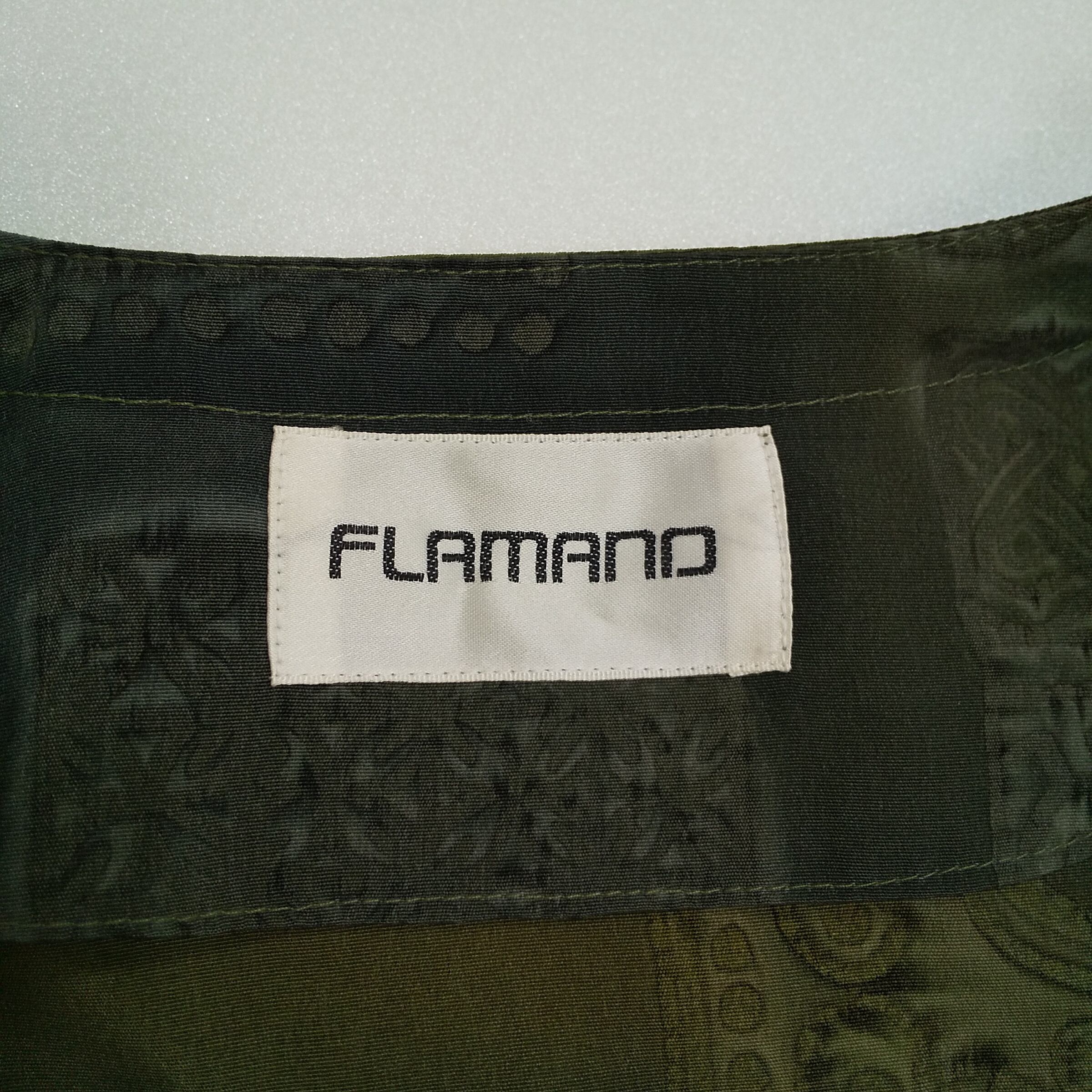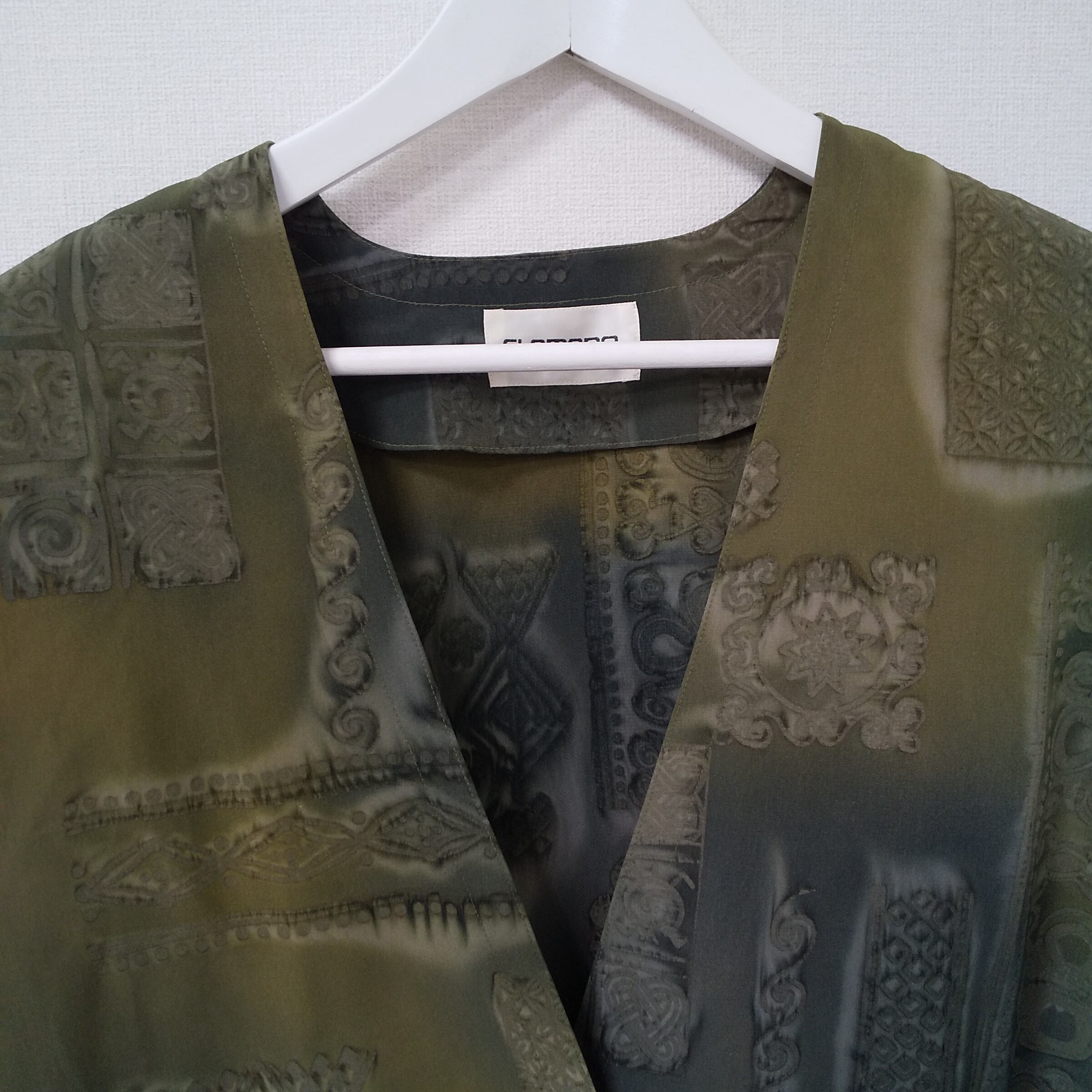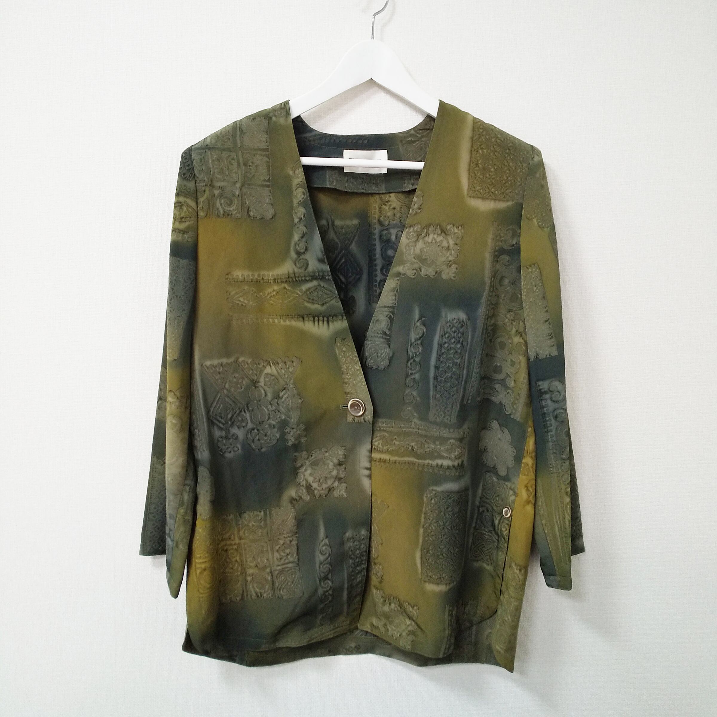 FLAMAND サテンジャケット 抽象柄 秋冬向けオリーブ テーラードジャケット サイズ : M