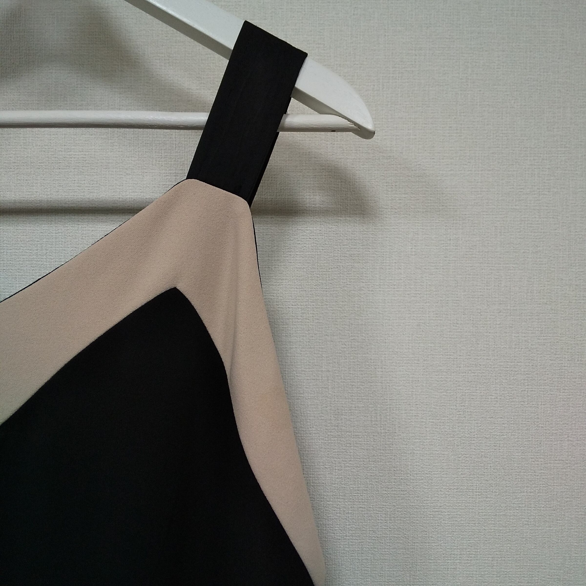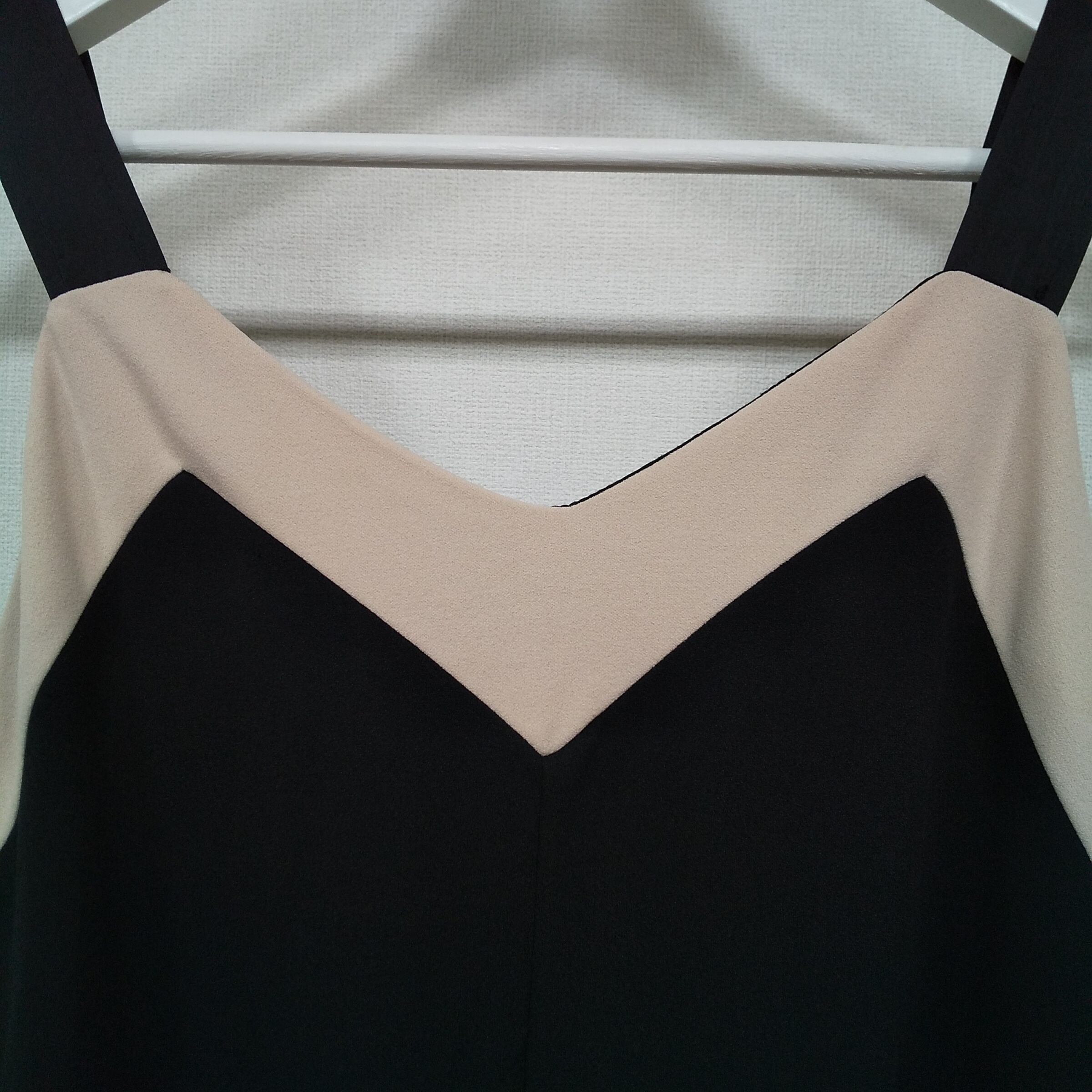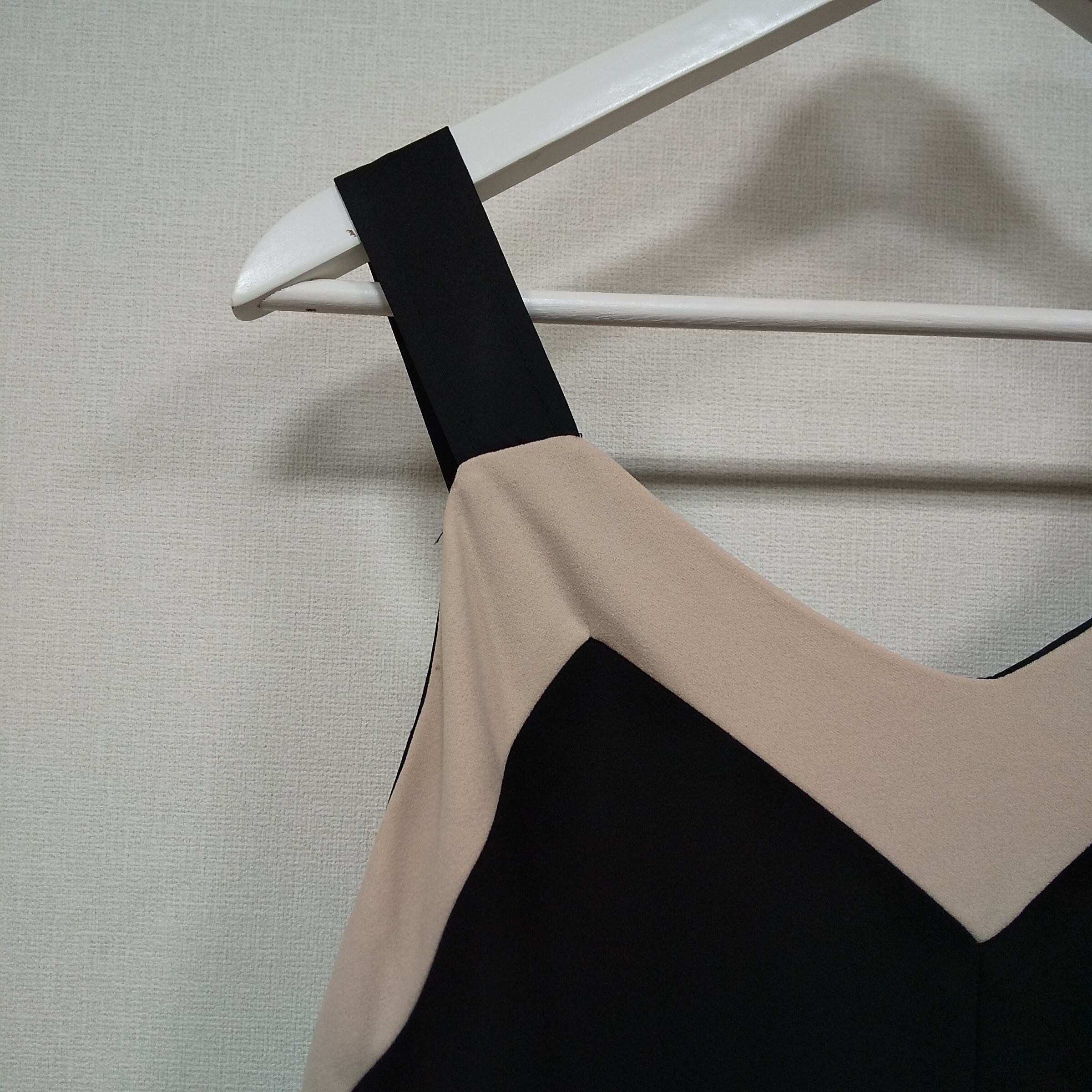 胸元のベージュと身頃のブラックのコントラストが美しく、シンプルながらも洗練された印象に。