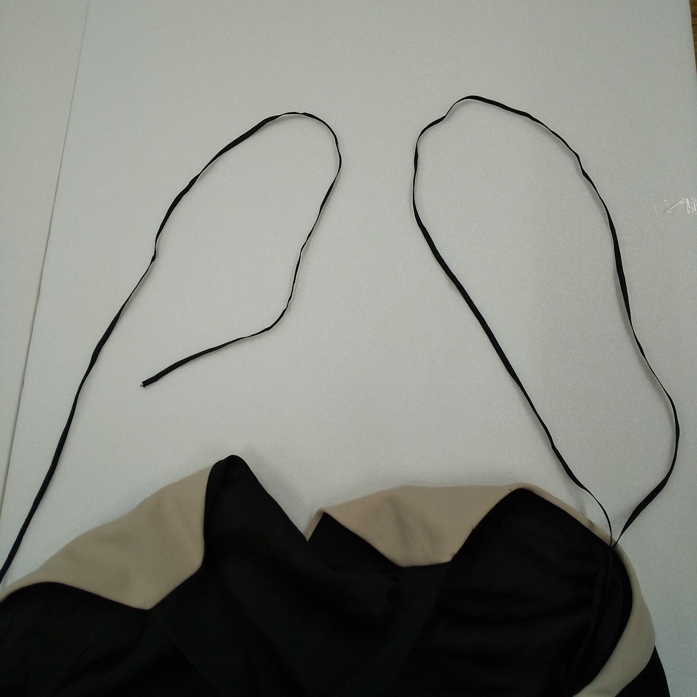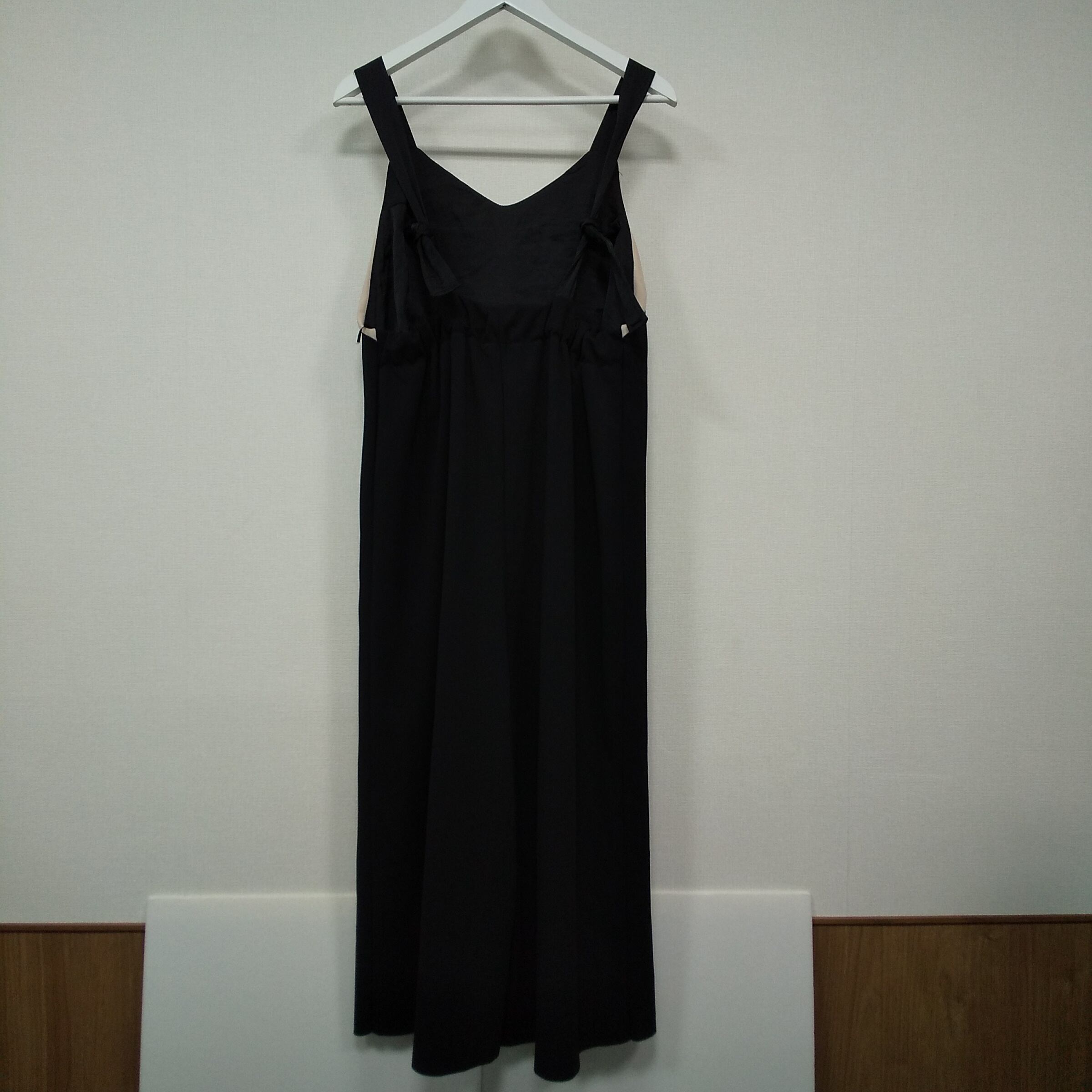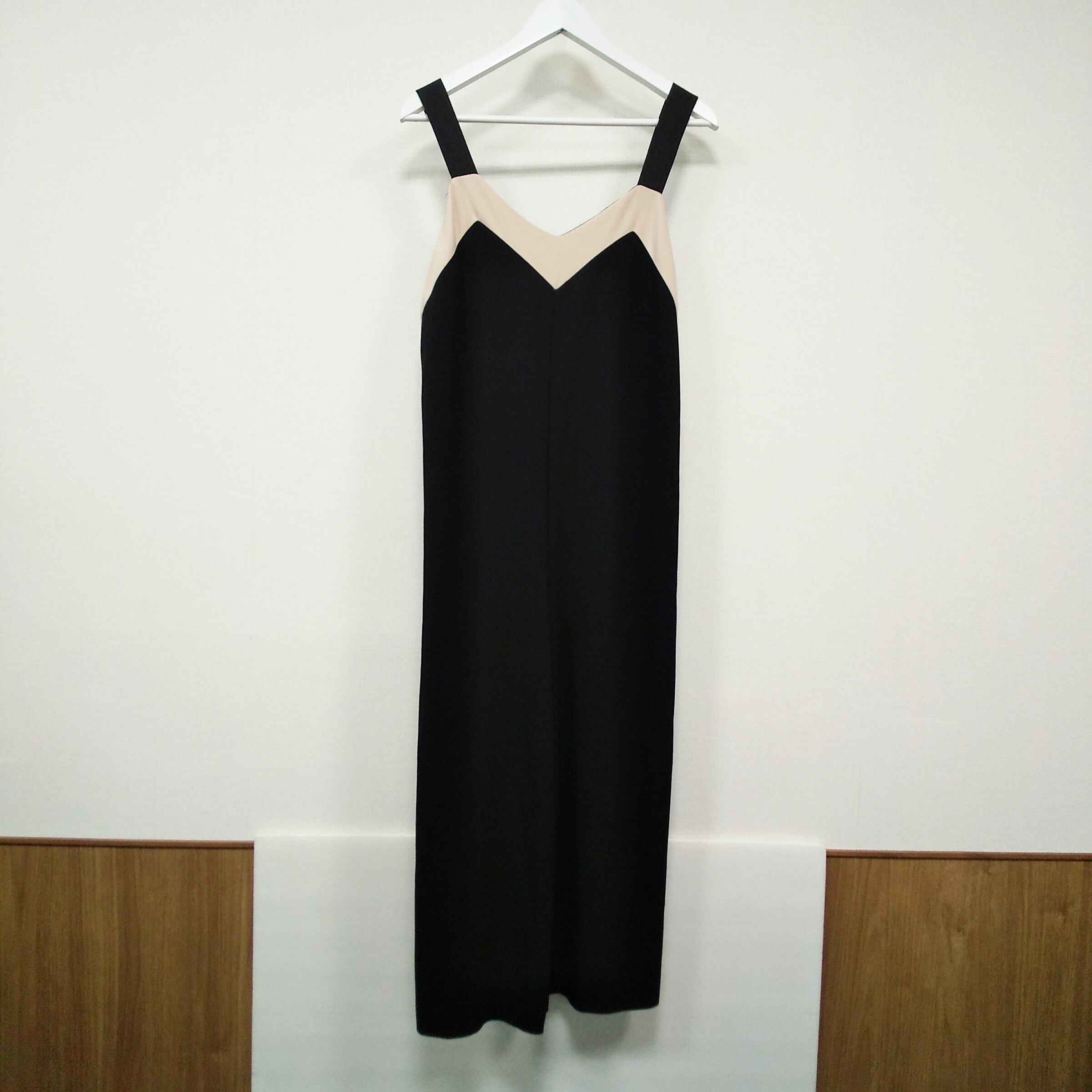 胸元のベージュと身頃のブラックのコントラストが美しく、シンプルながらも洗練された印象に。