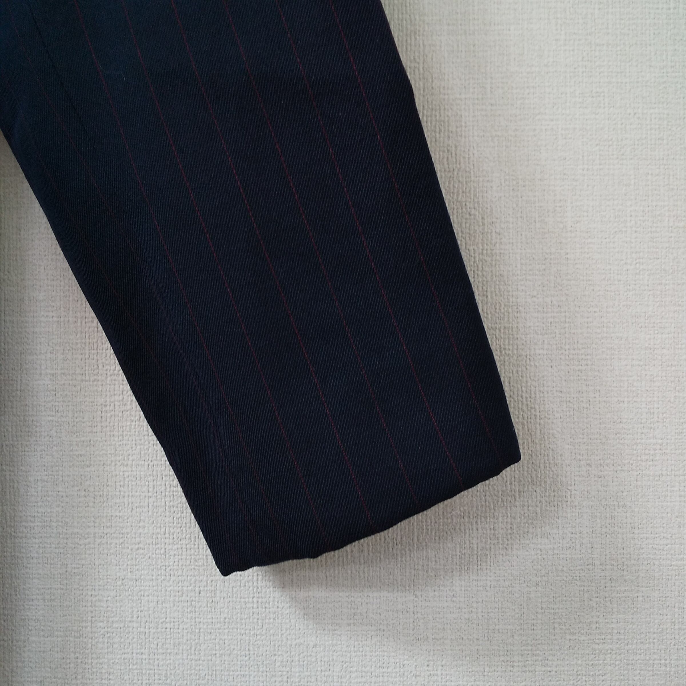 ネイビー(紺)にエンジ色の立て線入りピンストライプ柄