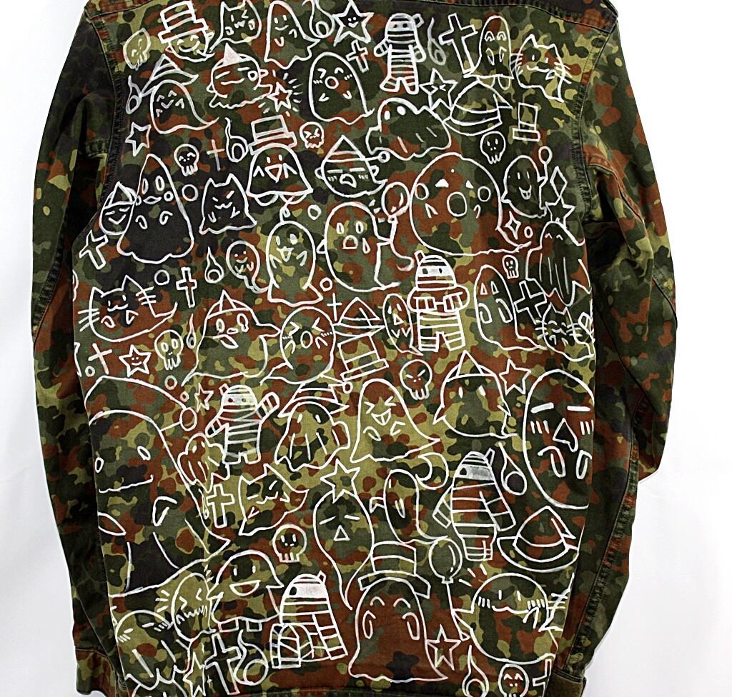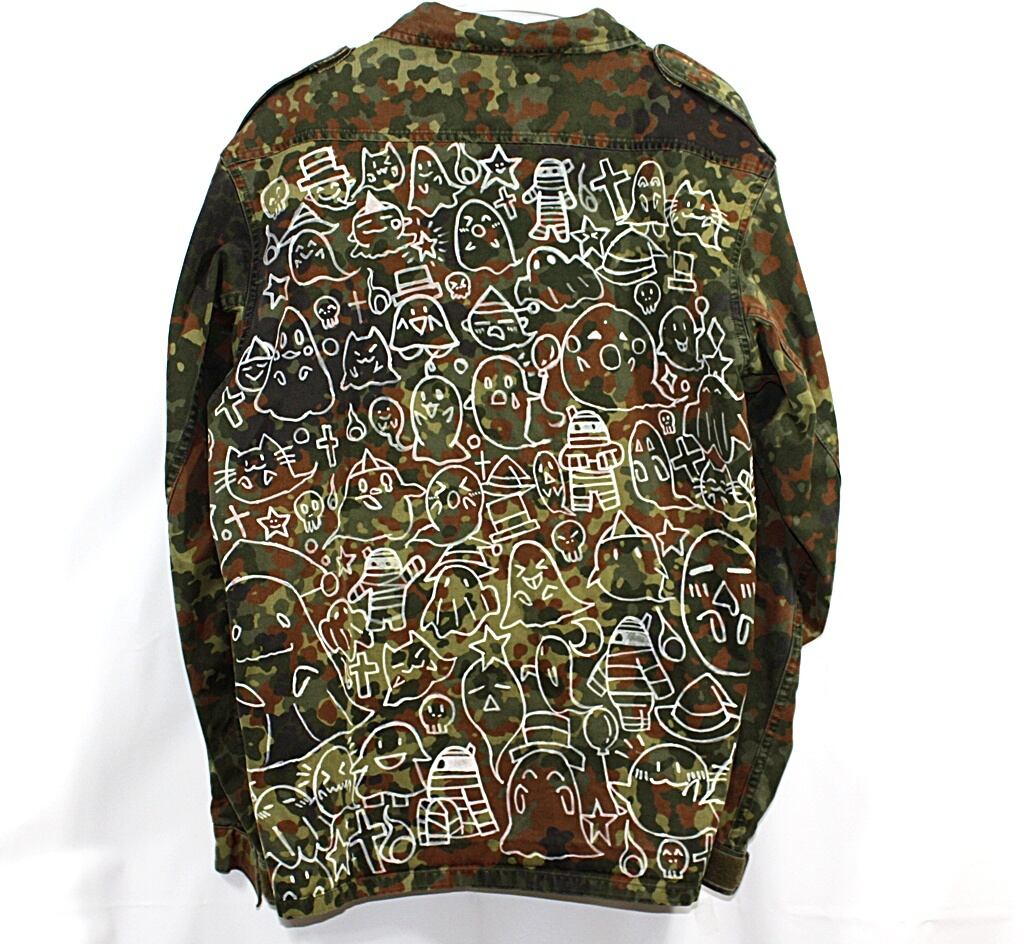 古着リメイク ドイツ軍迷彩ジャケット 手描きアート 一点物