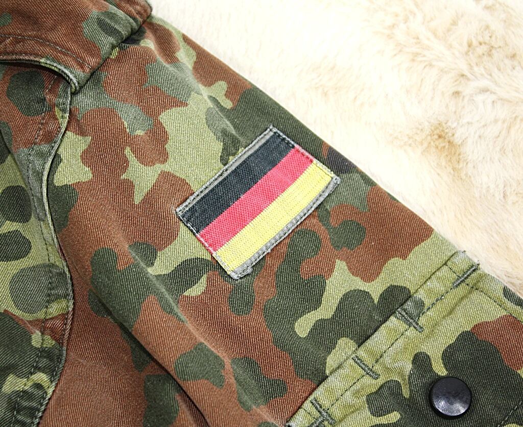 こちらは ドイツ軍フレックターン迷彩ジャケット をベースに、背面へ手描きイラストを加えた リメイク一点物アウター です。