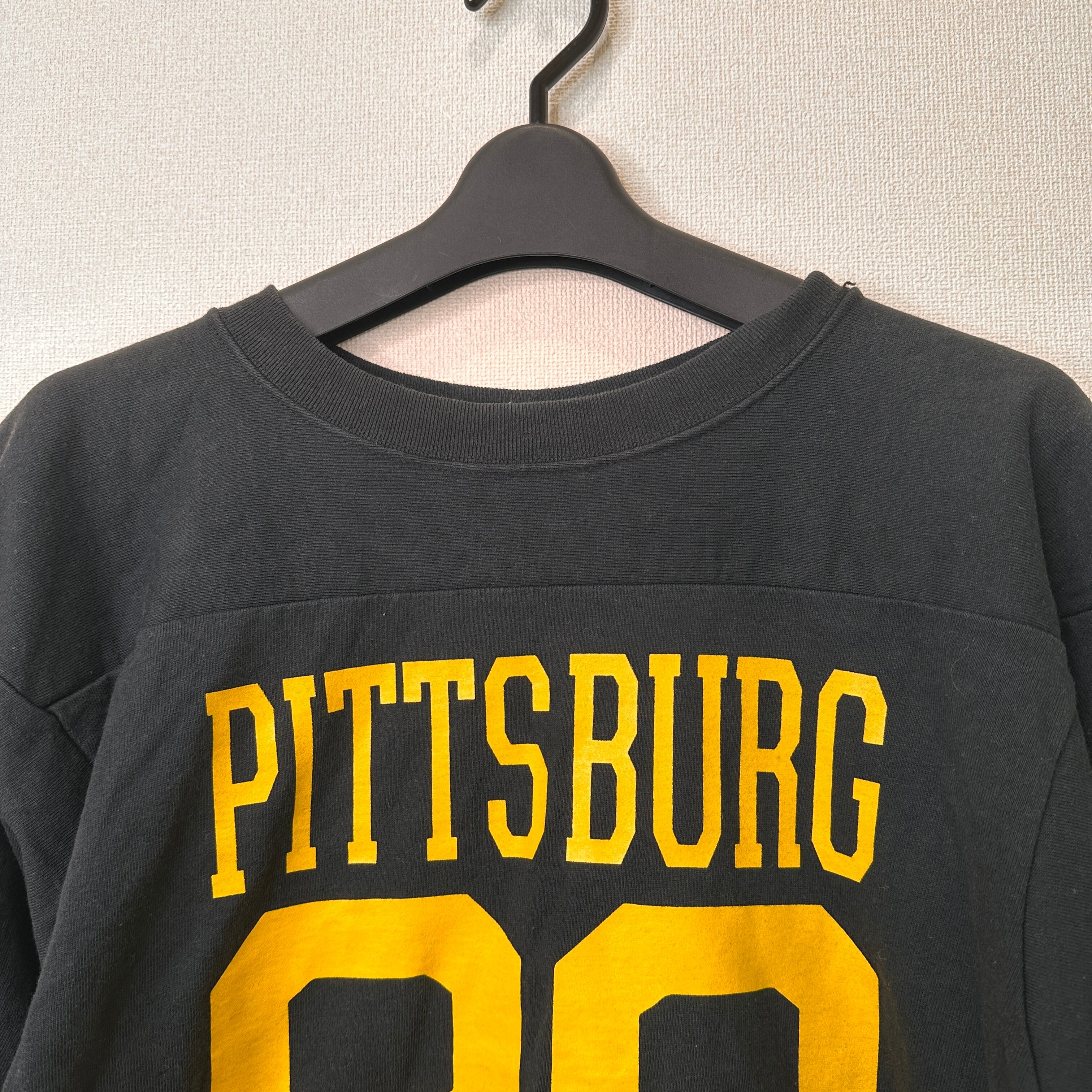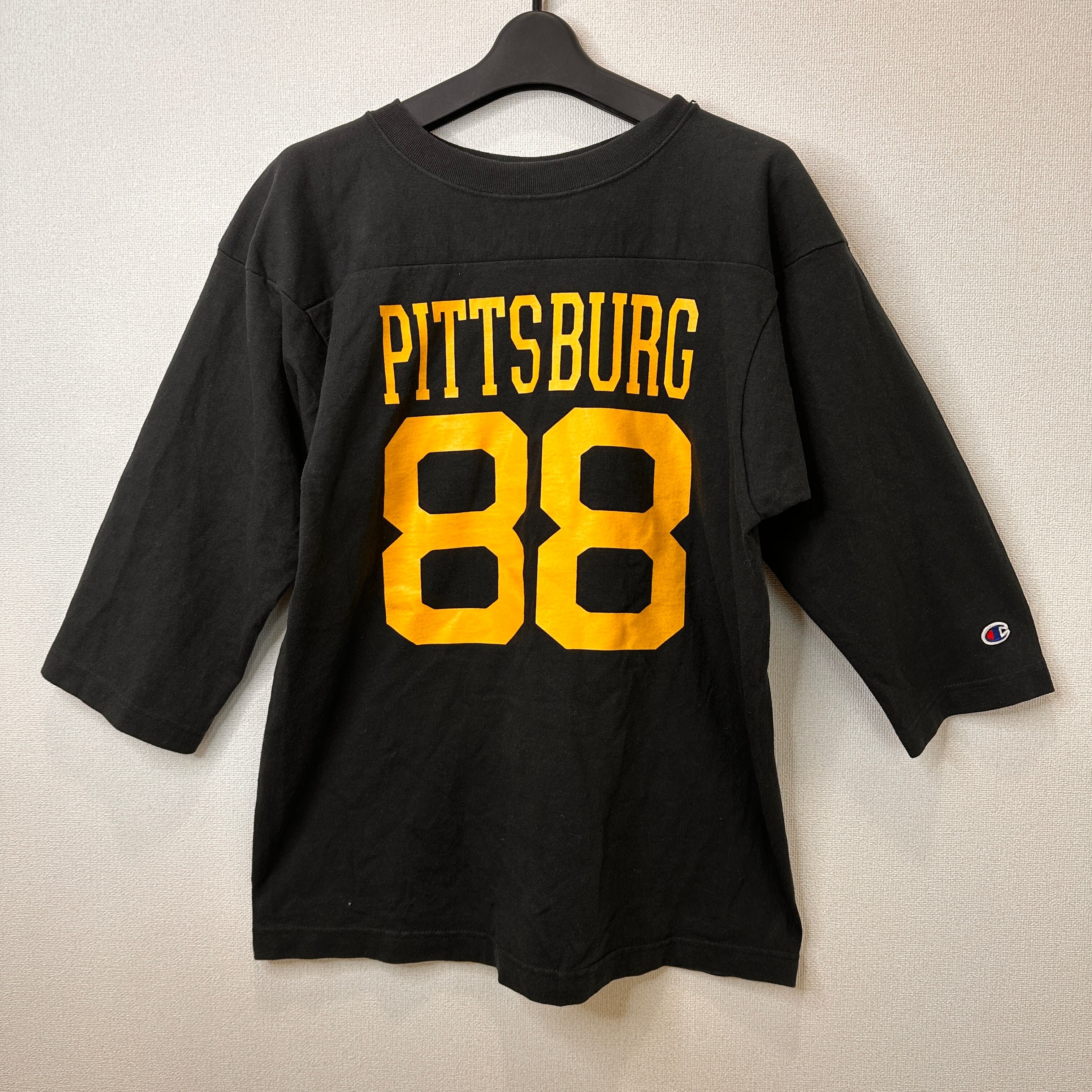 Champion(チャンピオン)T1011 USA製 7分袖 フットボールTシャツ ブラック PITTSBURG 88