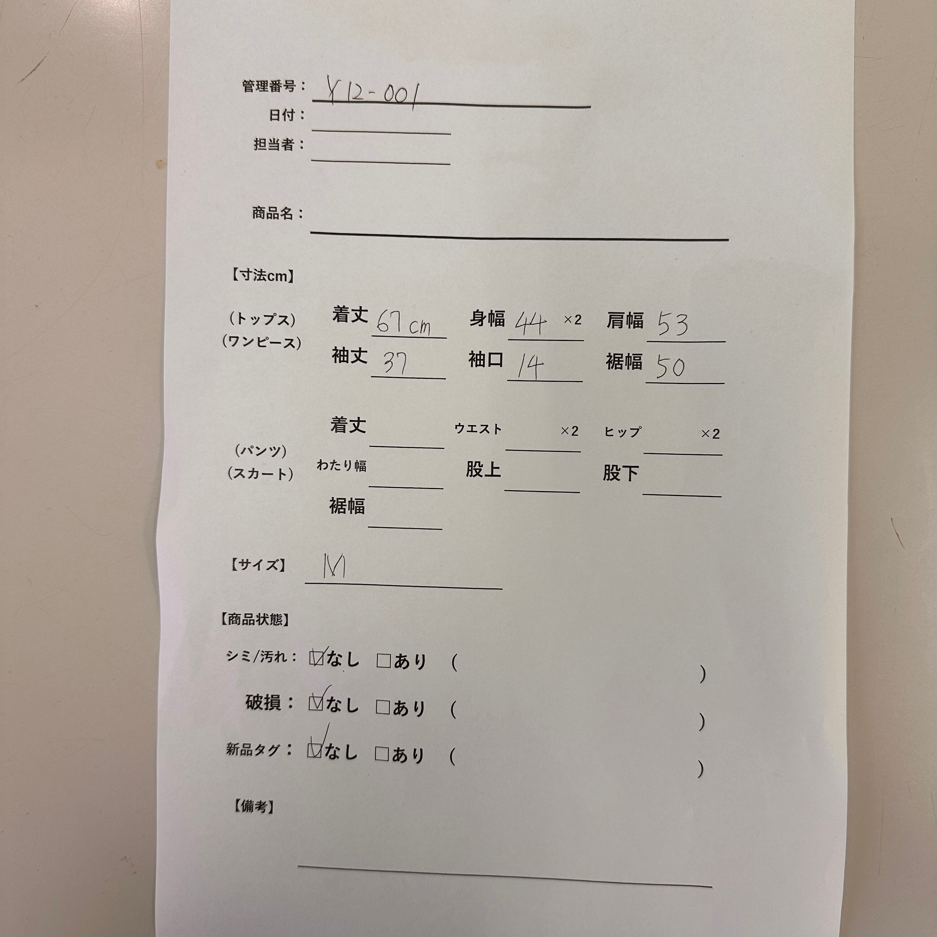 管理番号:Y12-001