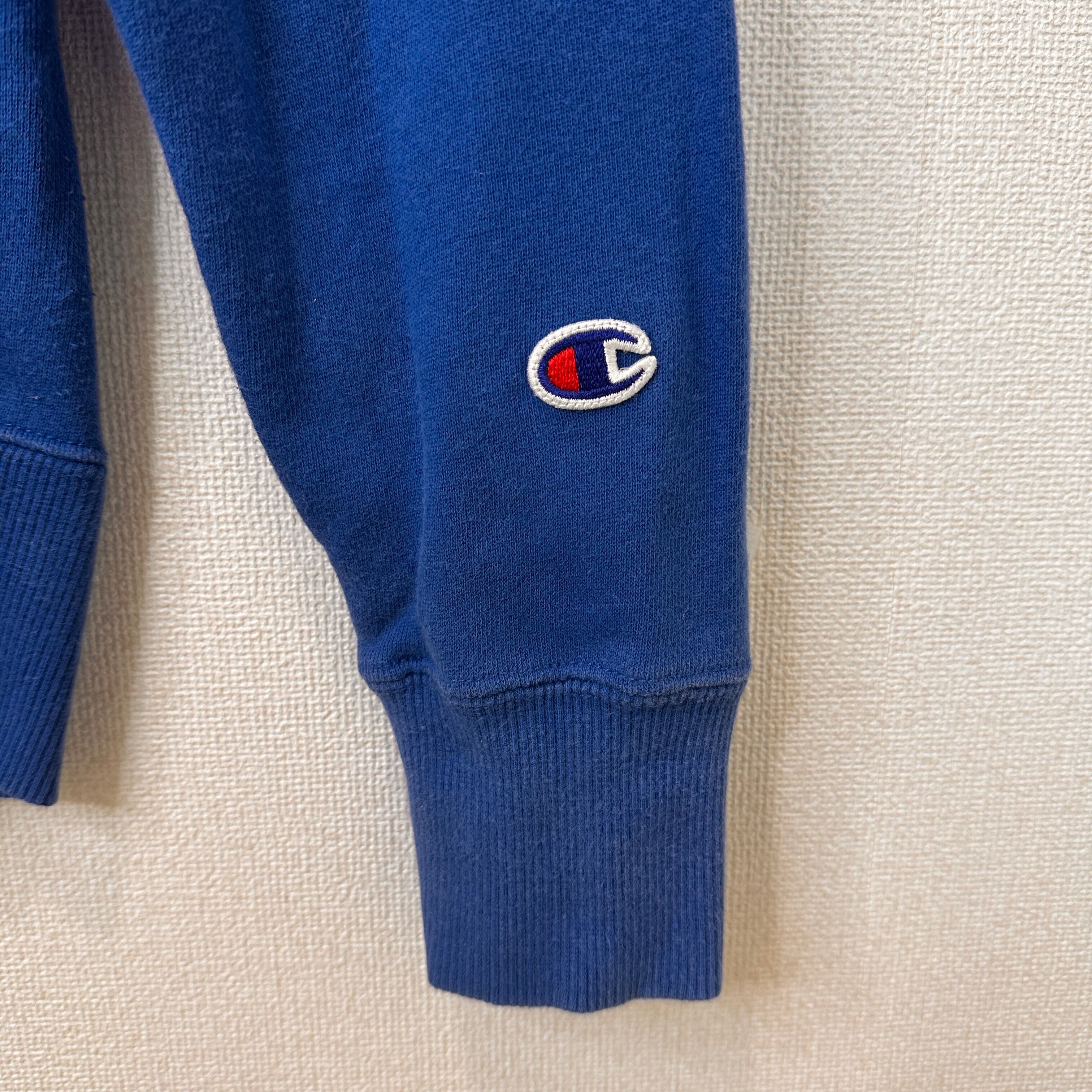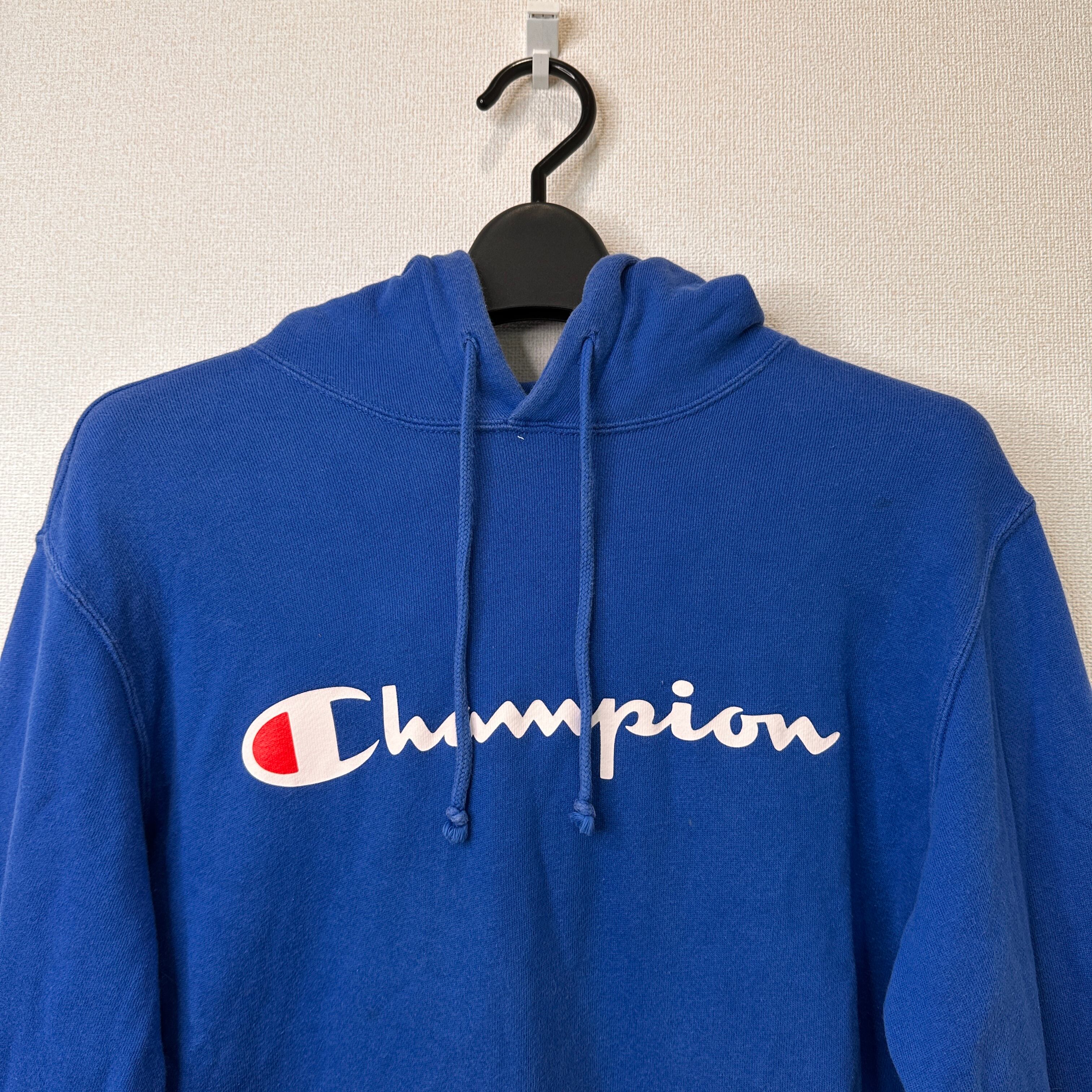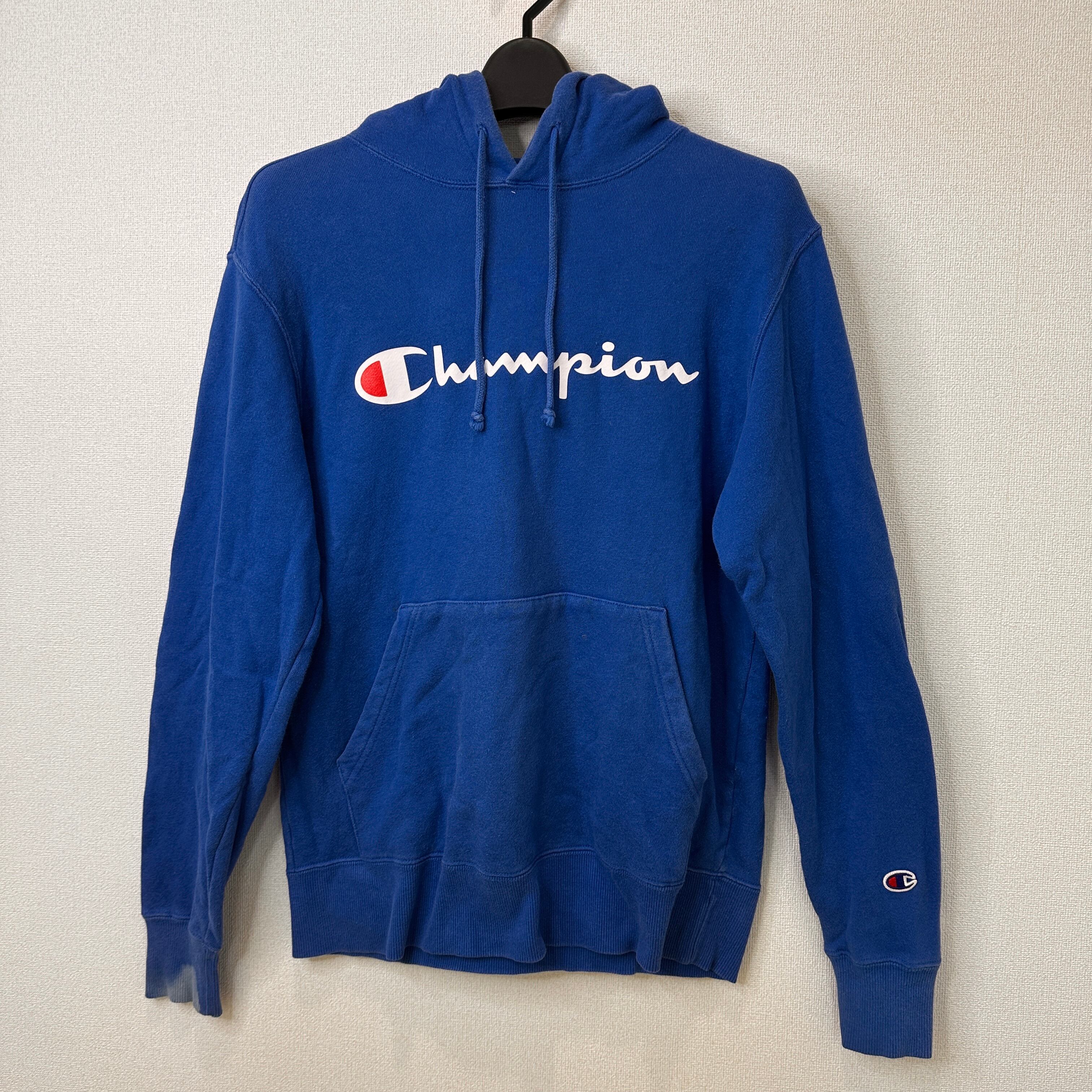 Champion チャンピオン パーカー フード ロゴ プリント 青 M 刺繍 C3-J117 プルオーバー 古着