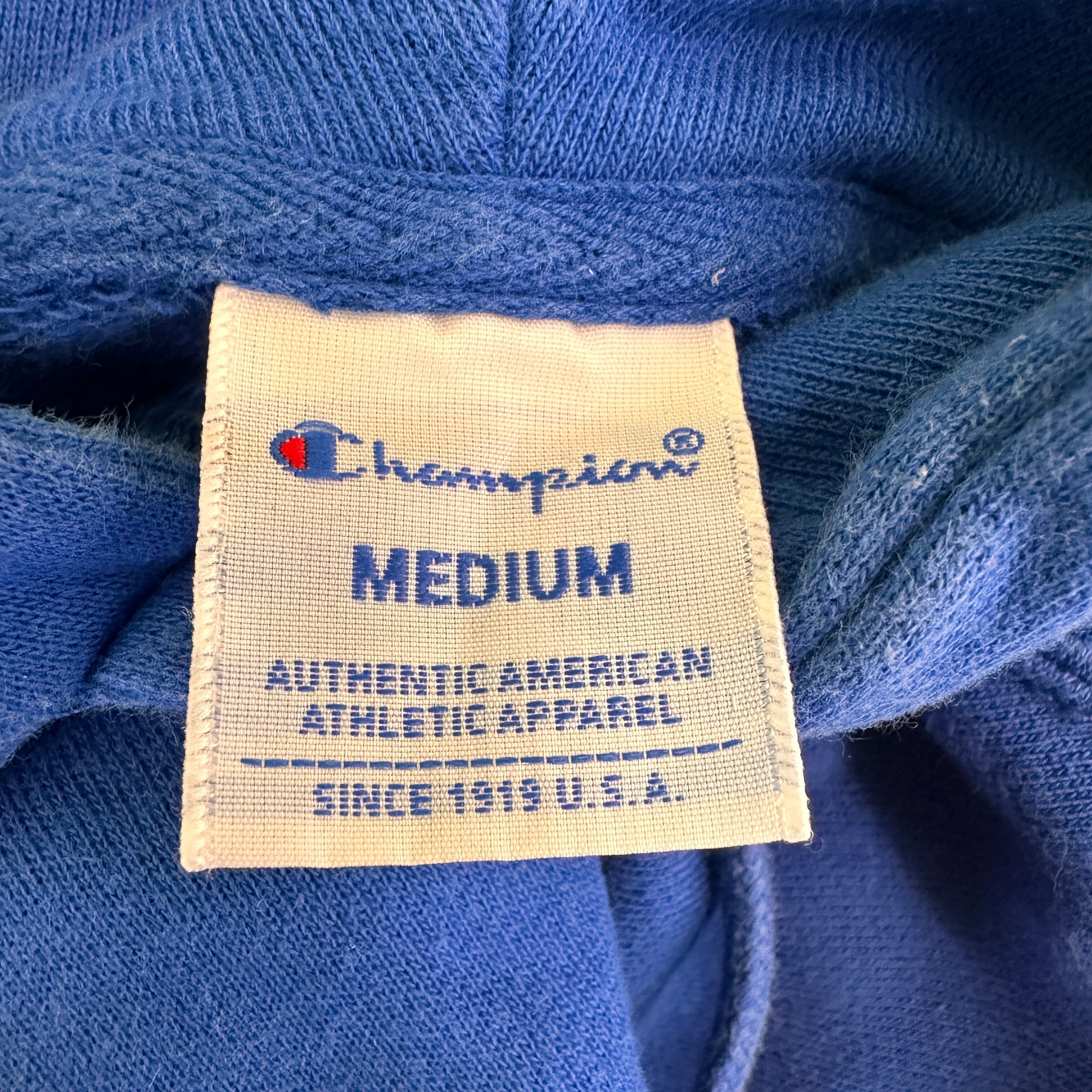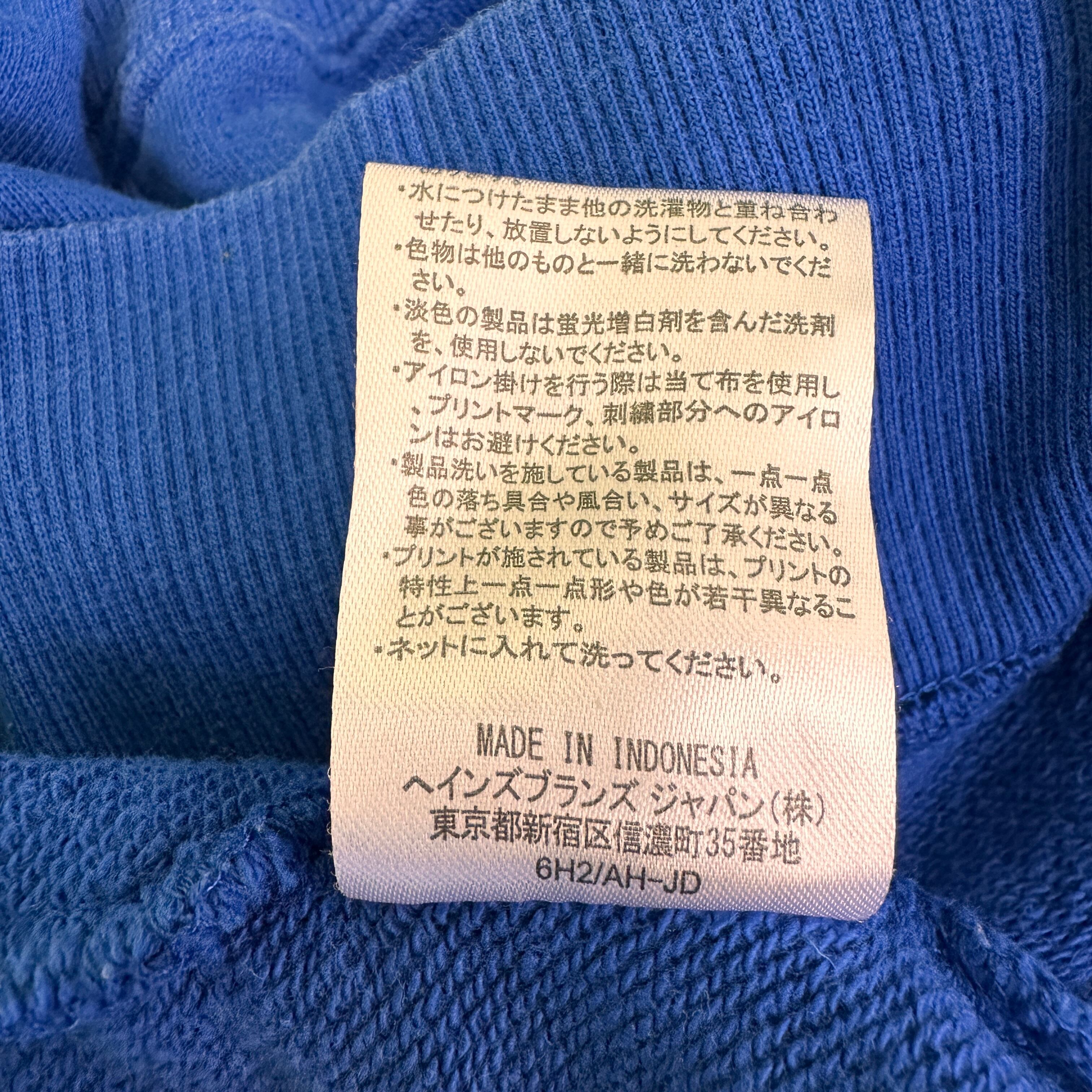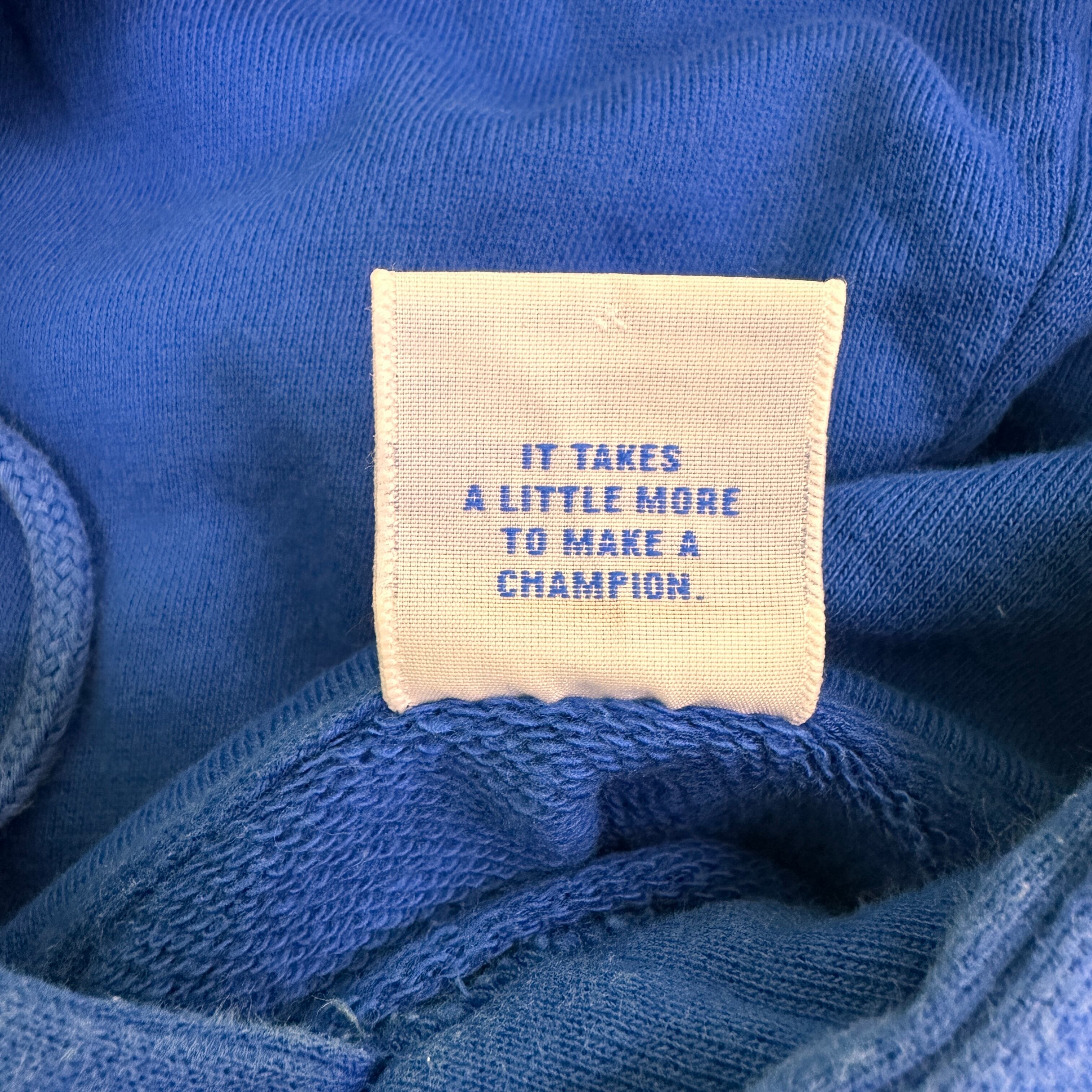 鮮やかなブルーのボディに大きなホワイトのChampionロゴがプリントされた、人気定番デザイン。