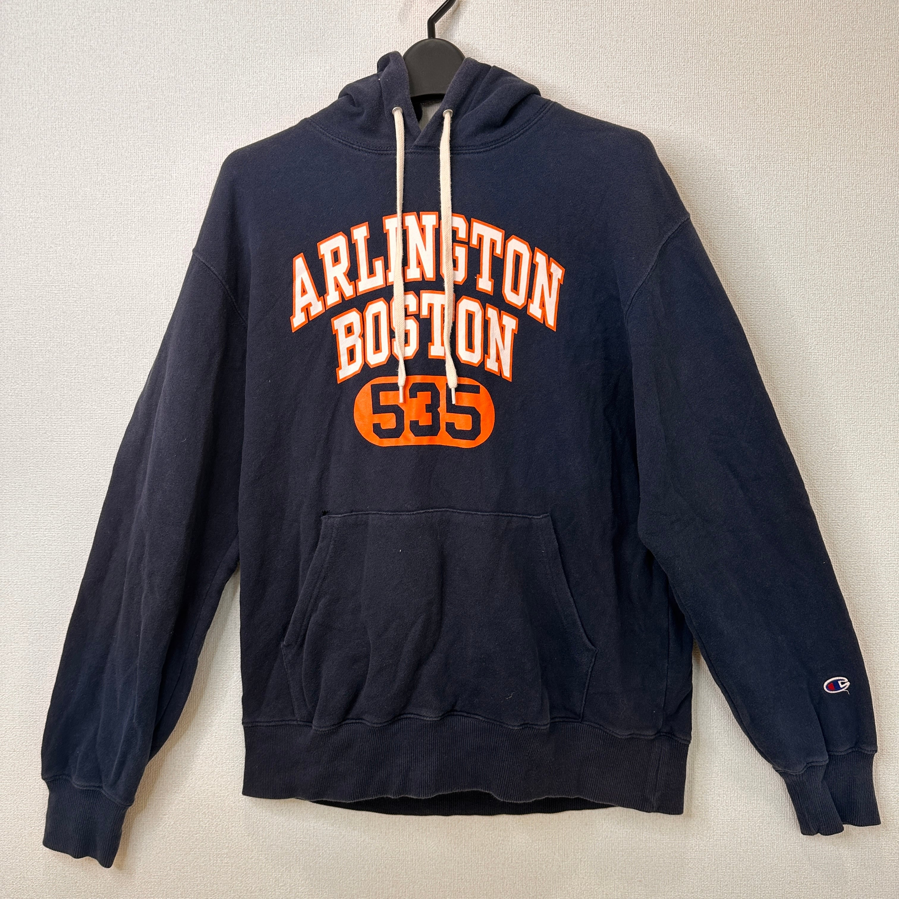 Champion チャンピオン パーカー カレッジロゴ ネイビー L ARLINGTON BOSTON 535 刺繍ロゴ 古着