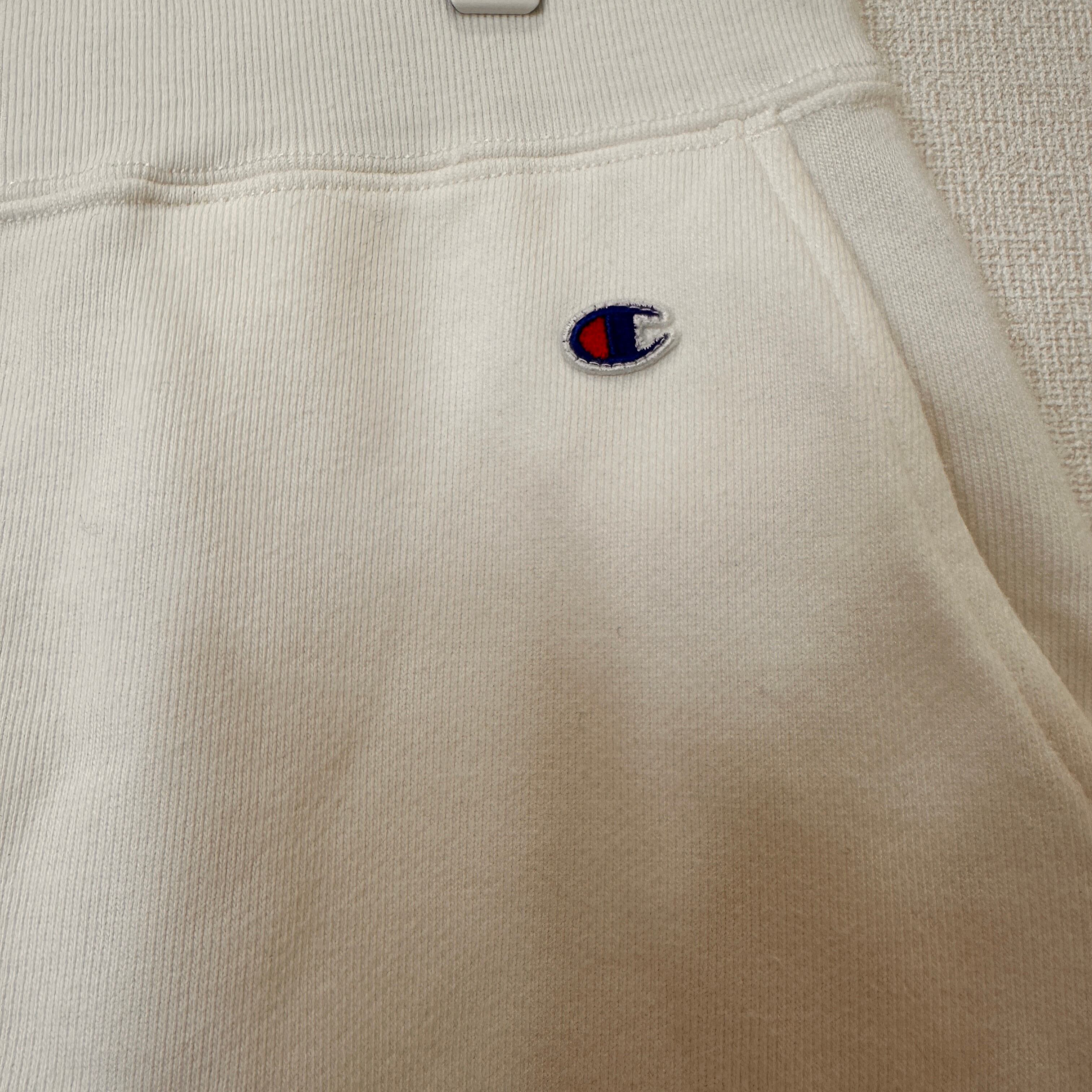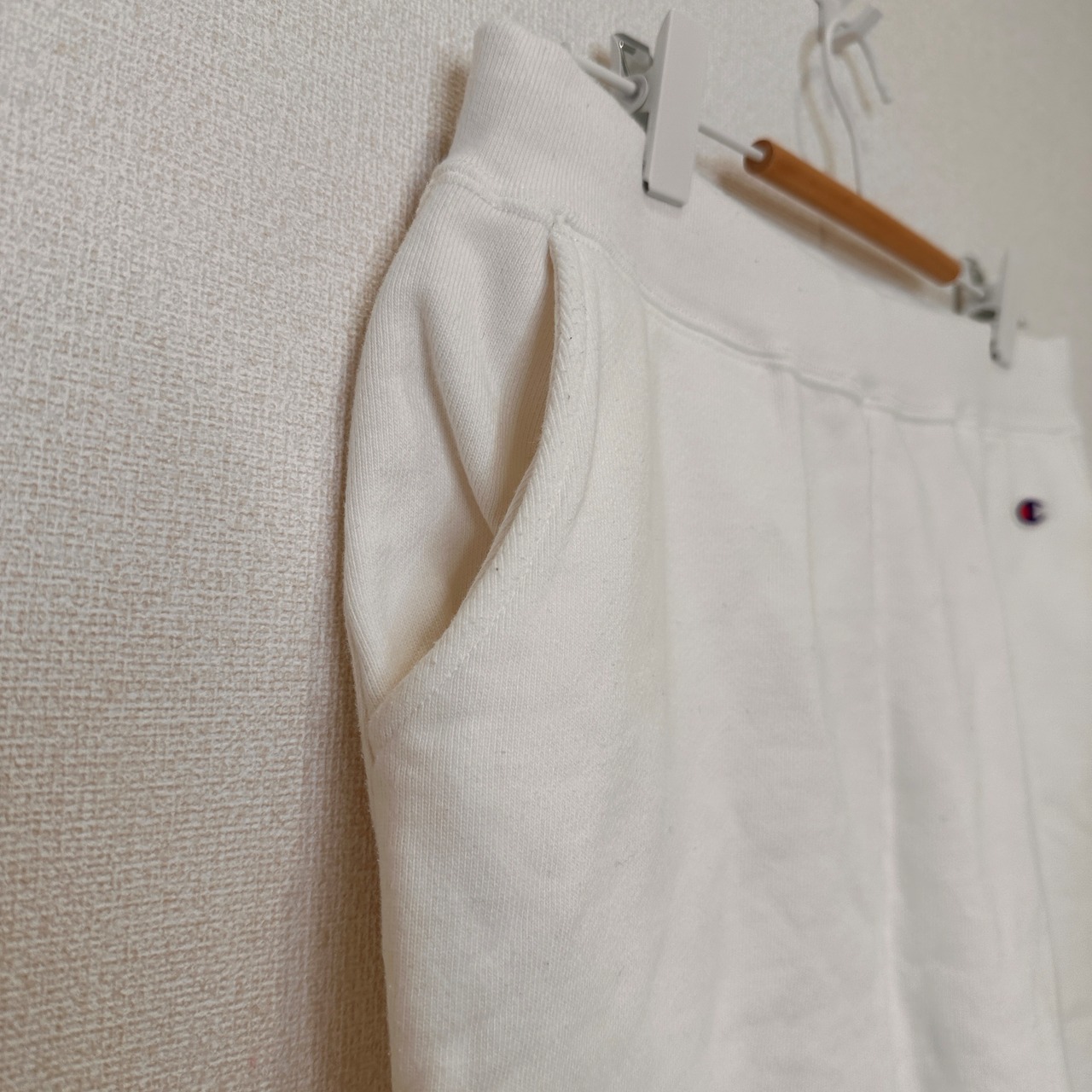 チャンピオンのロゴワッペンがついた、シンプルなホワイトのスウェットタイトスカートです。